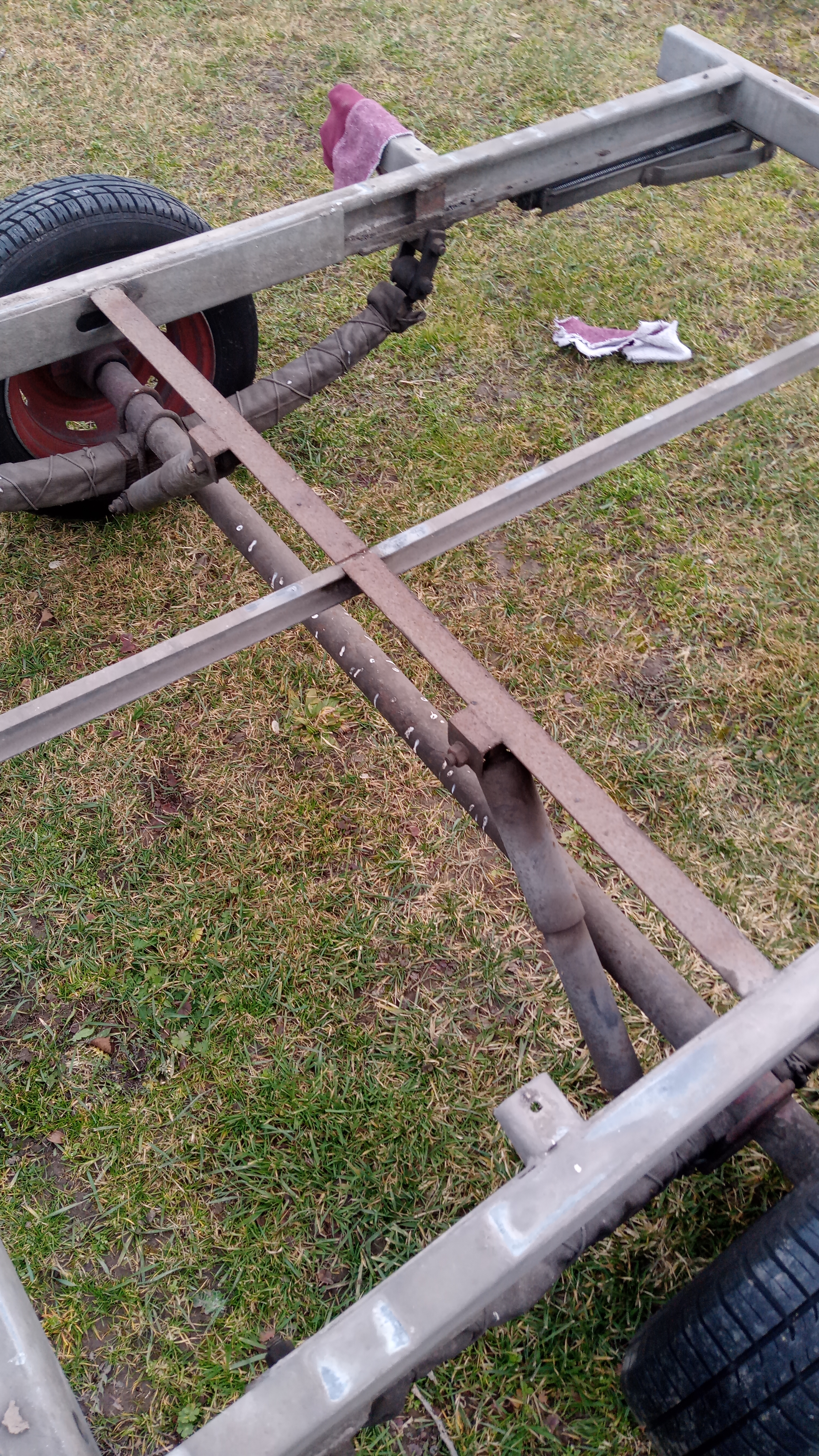 Dawno nic nie było, studia nie pozwalały na robotę :( Dół połatany włóknem i żywicą poliestrową (poszło ponad 5l żywicy), a następnie machnięty chlorokauczuk. Rama to co podrdzewiało obczyszczone i pomalowane minią, a rama pryśnięta gavalem do ocynku. Widzę, że trochę rdzy przy resorze mi wyszło (od...