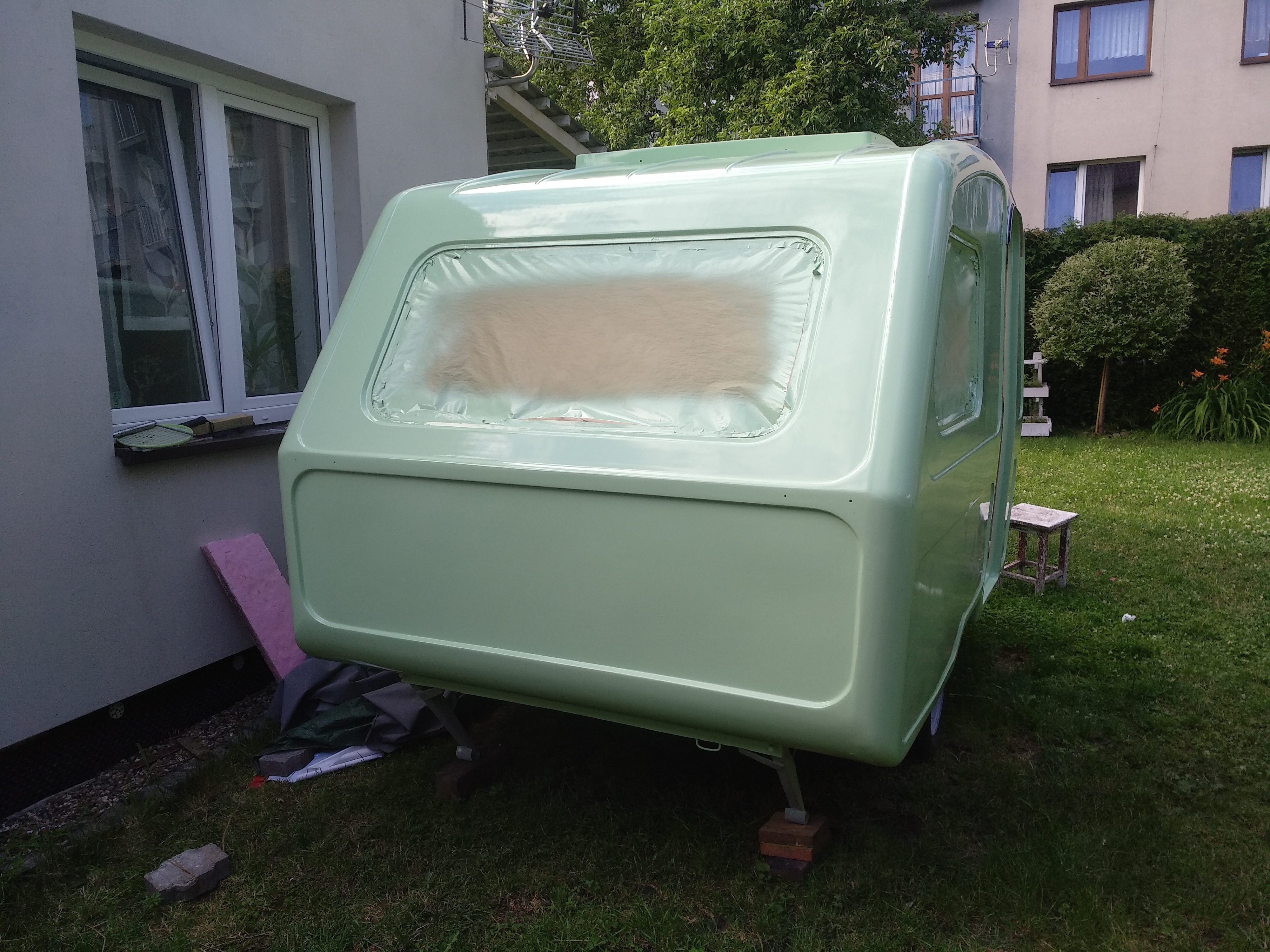 Pogoda płatała figle ale udało się pomalować. Farba to Sigma Sigmadur550 RAL6019. Teraz można się brać za środek