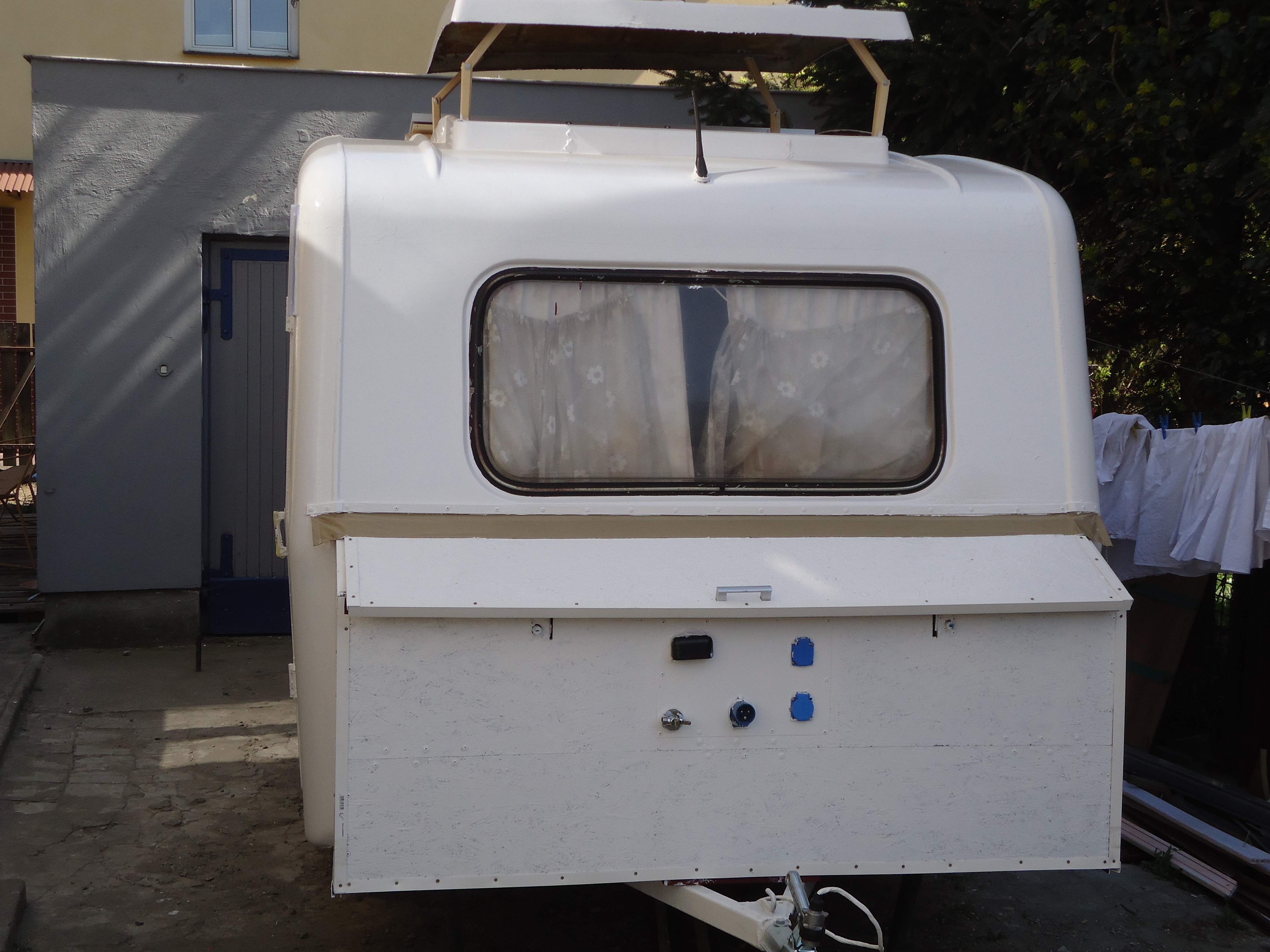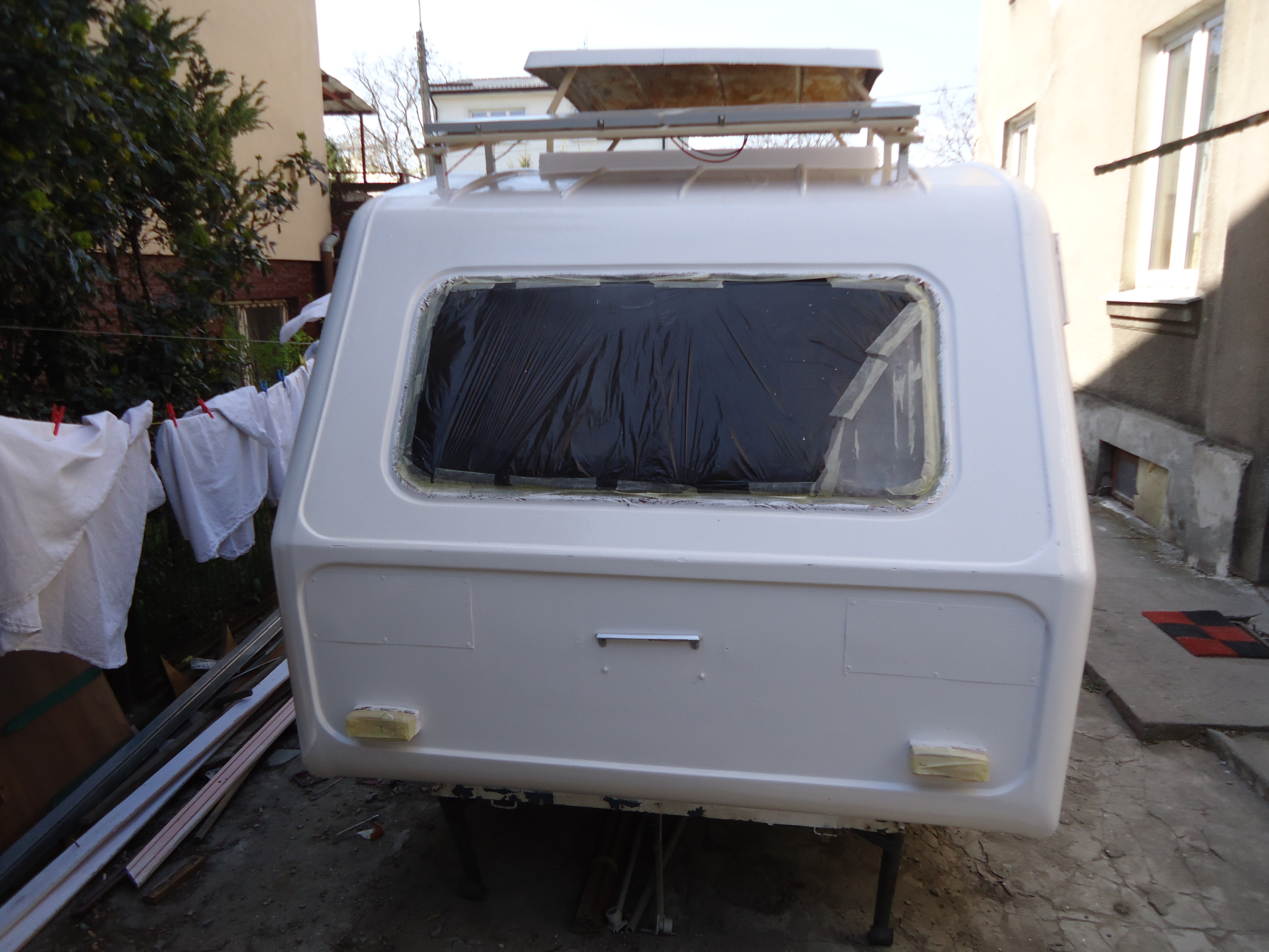 Aby na dachu w tylnej części zmieściły się panele, to podnoszenie klapy zrobiłem po swojemu do góry tak, że stoje w środku wyprostowany, a mam 194cm wzrostu.