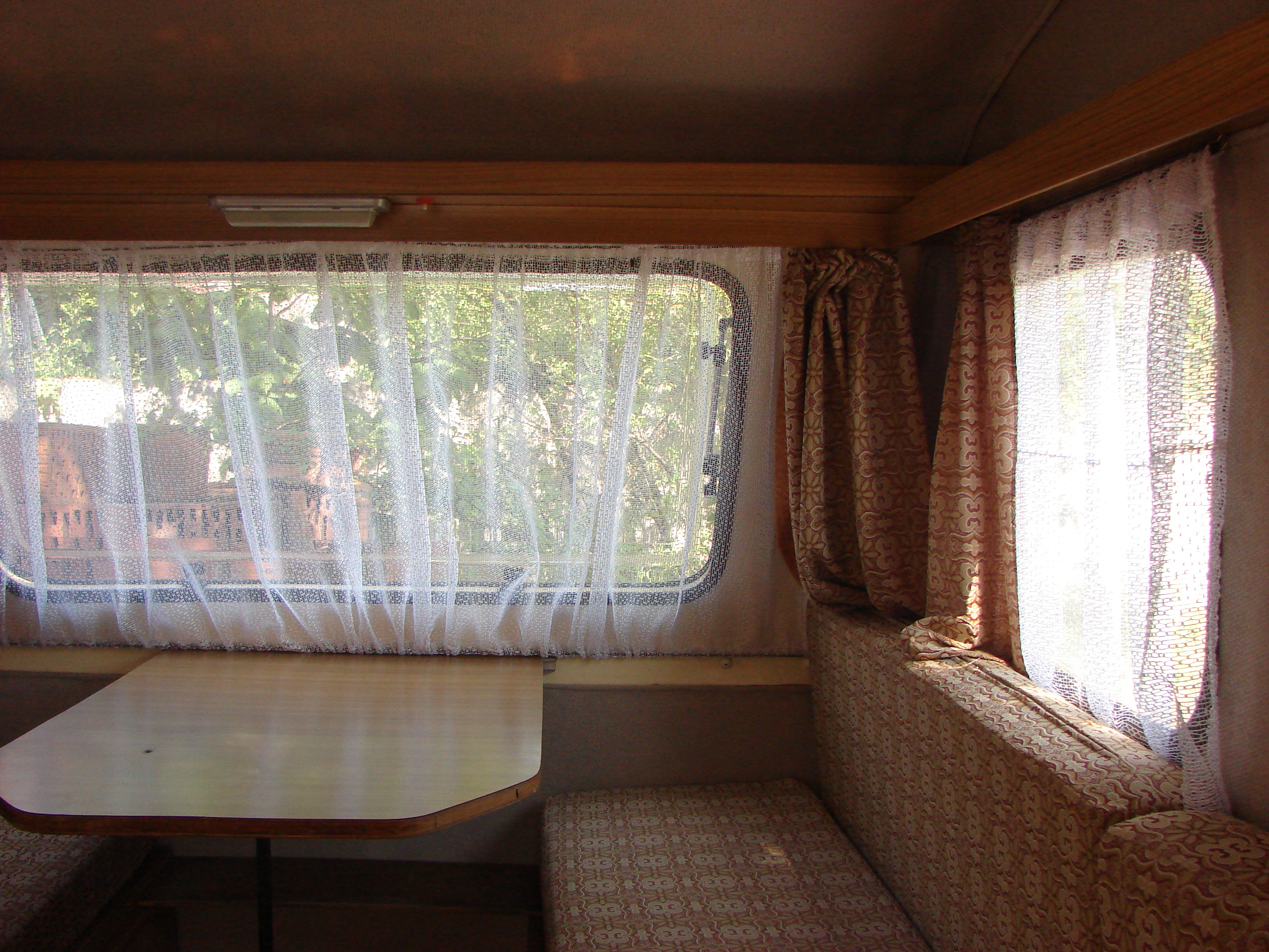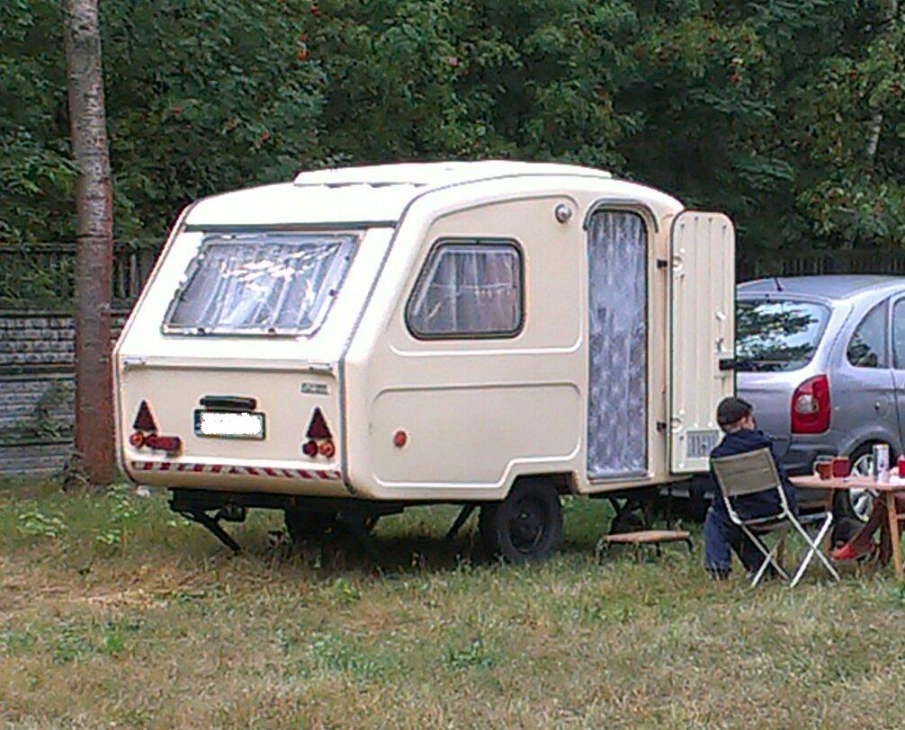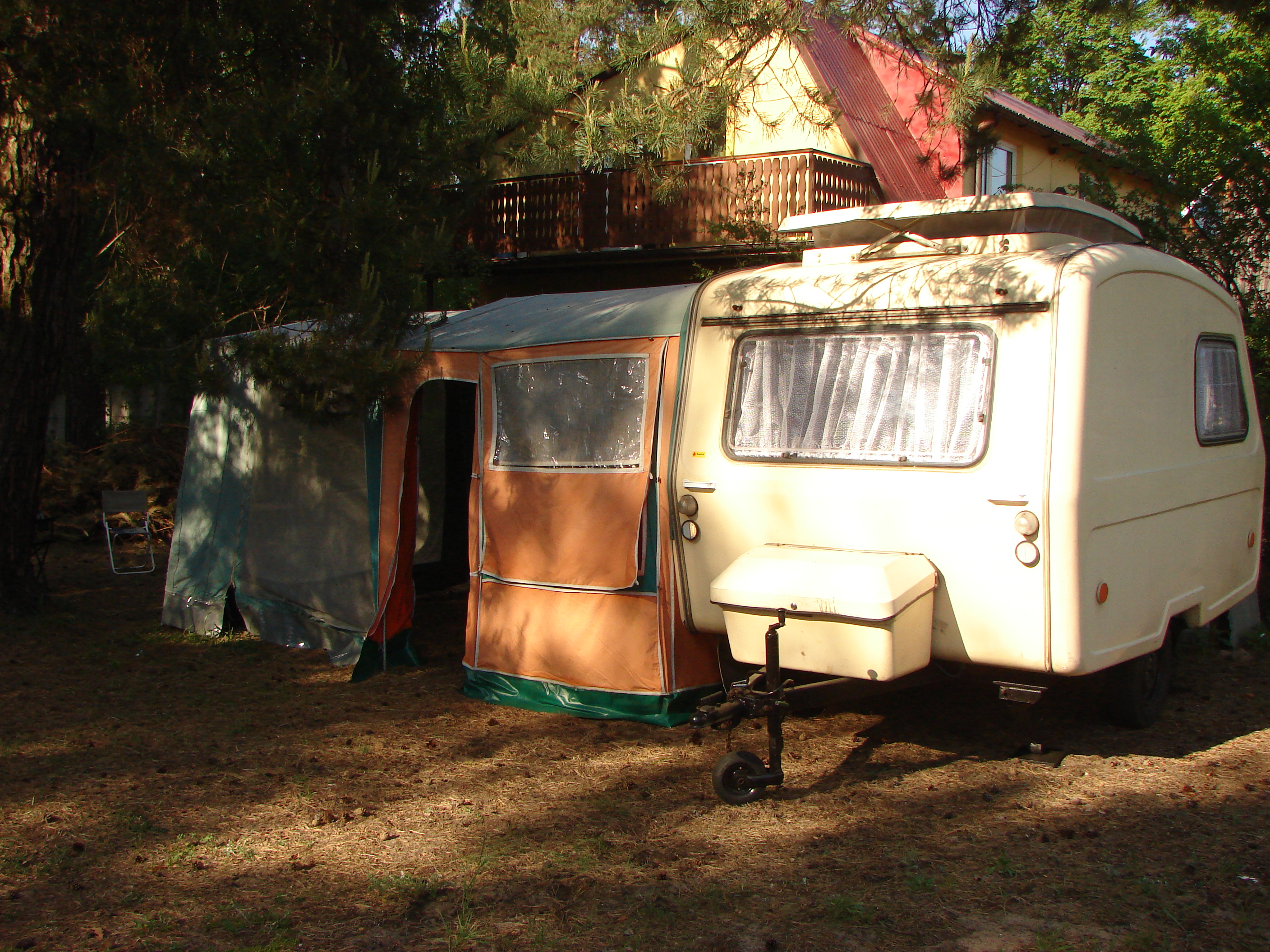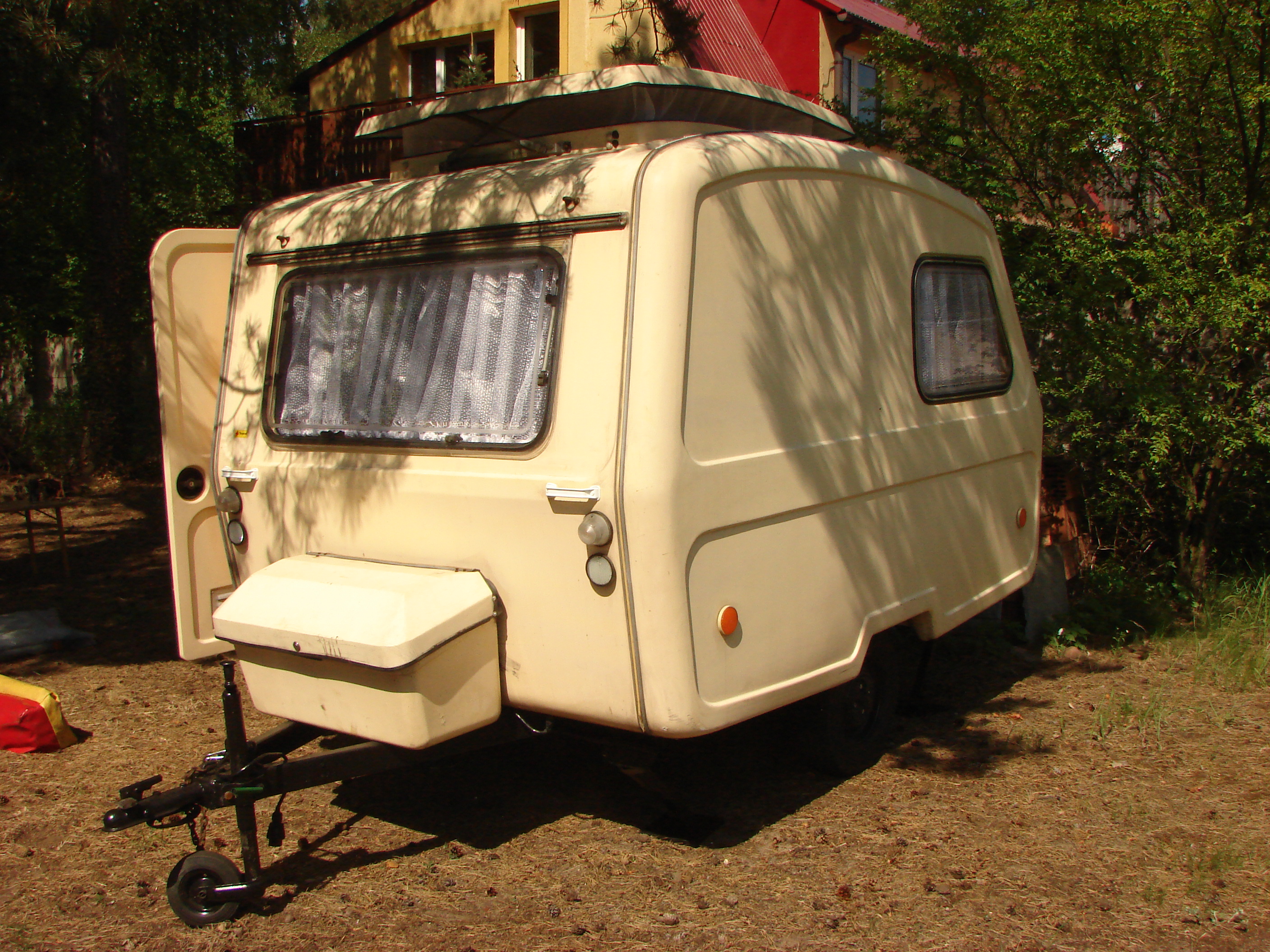 Szukałem jej około trzech miesięcy i znalazłem w Katowicach.Stan był nawet w miarę, meble całe, rama zdrowa,nie przeciekała, tylko materiał wisiał wszędzie, są dwa przedsionki, jeden oryginał, a drugi trochę przerabiany  z możliwością dołączenia do oryginalnego. Kupiłem ją od pana Wojciecha, którego serdecznie pozdrawiam. Po tygodniu zacząłem remont, wymontowałem wszystko, zerwałem stary materiał i wykleiłem ją na nowo, zrobiłem cały przegląd instalacji 12 V i 220V jak i rame, układ jezdny i skorupkę. Remont zajął mi około miesiąca ( było by szybciej gdyby nie złamany nadgarstek). Co mnie kosztowało: materiał na skorupkę 360 zł. 3 kg. kleju to tyle, resztę drobnych rzeczy miałem w domu i garażu. Na początku ciągłem ją fiatem uno 0,9, jechać jechałem, ale było ciężko, obecnie mam cytrynkę picasso 1.8 116km i jest lalunia