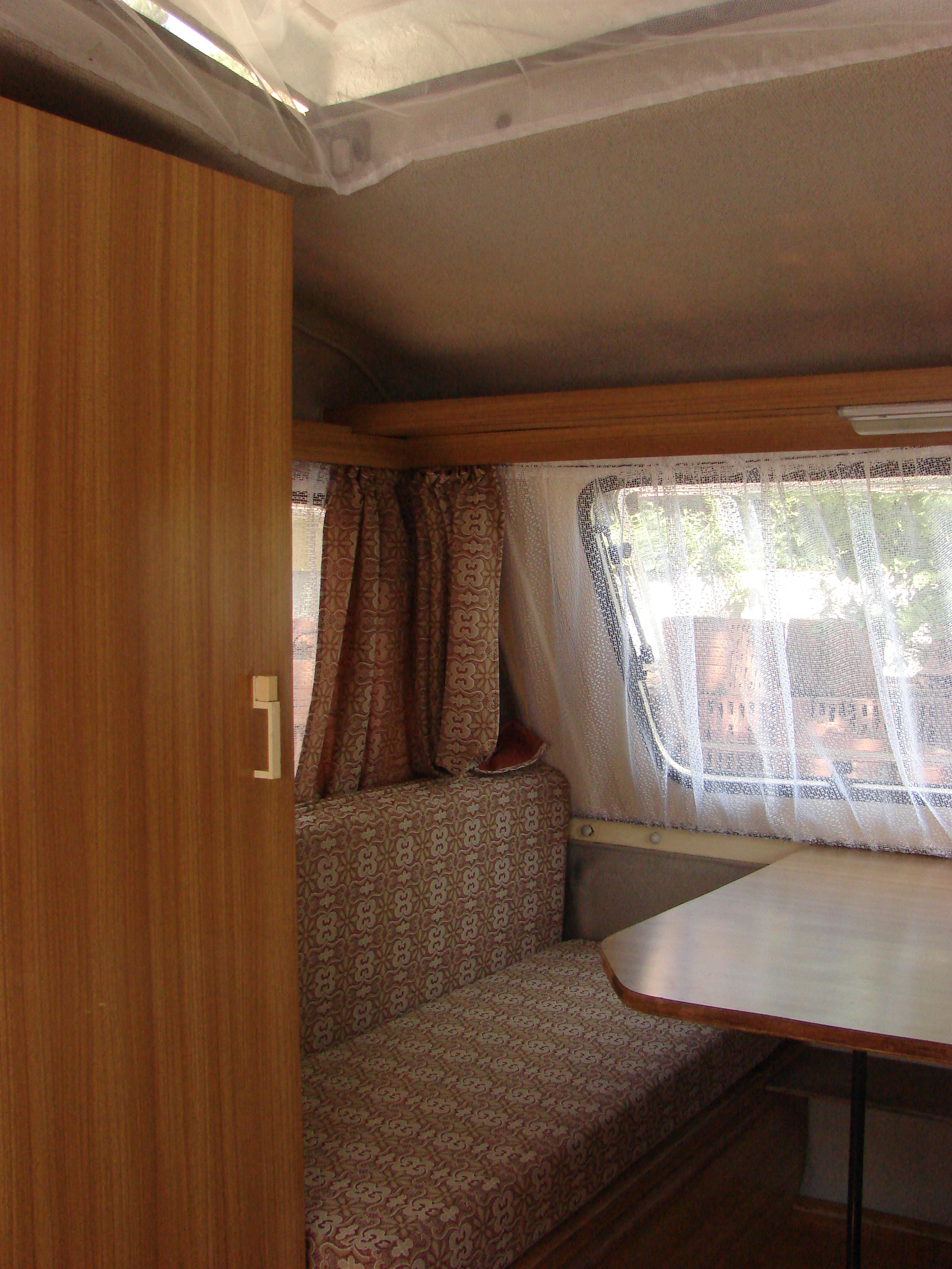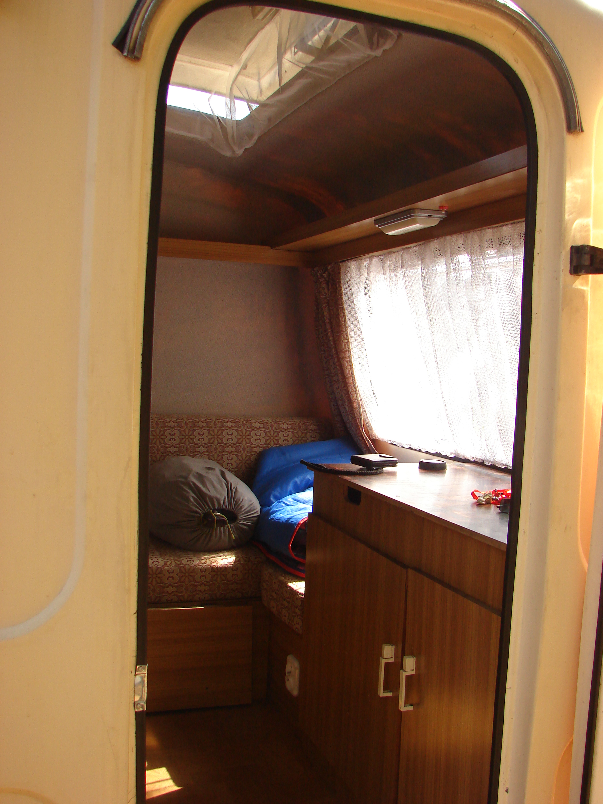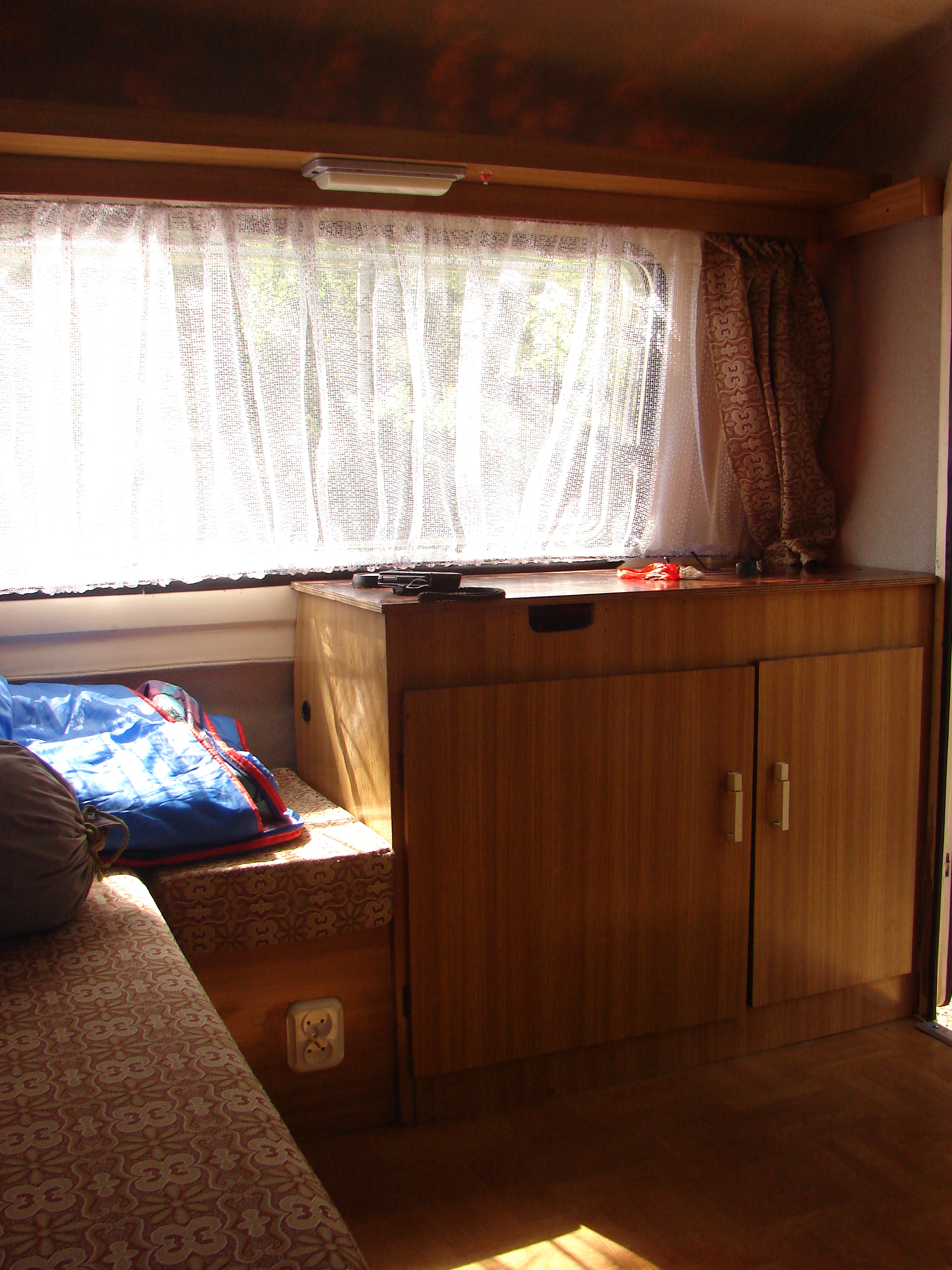 Szukałem jej około trzech miesięcy i znalazłem w Katowicach.Stan był nawet w miarę, meble całe, rama zdrowa,nie przeciekała, tylko materiał wisiał wszędzie, są dwa przedsionki, jeden oryginał, a drugi trochę przerabiany  z możliwością dołączenia do oryginalnego. Kupiłem ją od pana Wojciecha, którego serdecznie pozdrawiam. Po tygodniu zacząłem remont, wymontowałem wszystko, zerwałem stary materiał i wykleiłem ją na nowo, zrobiłem cały przegląd instalacji 12 V i 220V jak i rame, układ jezdny i skorupkę. Remont zajął mi około miesiąca ( było by szybciej gdyby nie złamany nadgarstek). Co mnie kosztowało: materiał na skorupkę 360 zł. 3 kg. kleju to tyle, resztę drobnych rzeczy miałem w domu i garażu. Na początku ciągłem ją fiatem uno 0,9, jechać jechałem, ale było ciężko, obecnie mam cytrynkę picasso 1.8 116km i jest lalunia