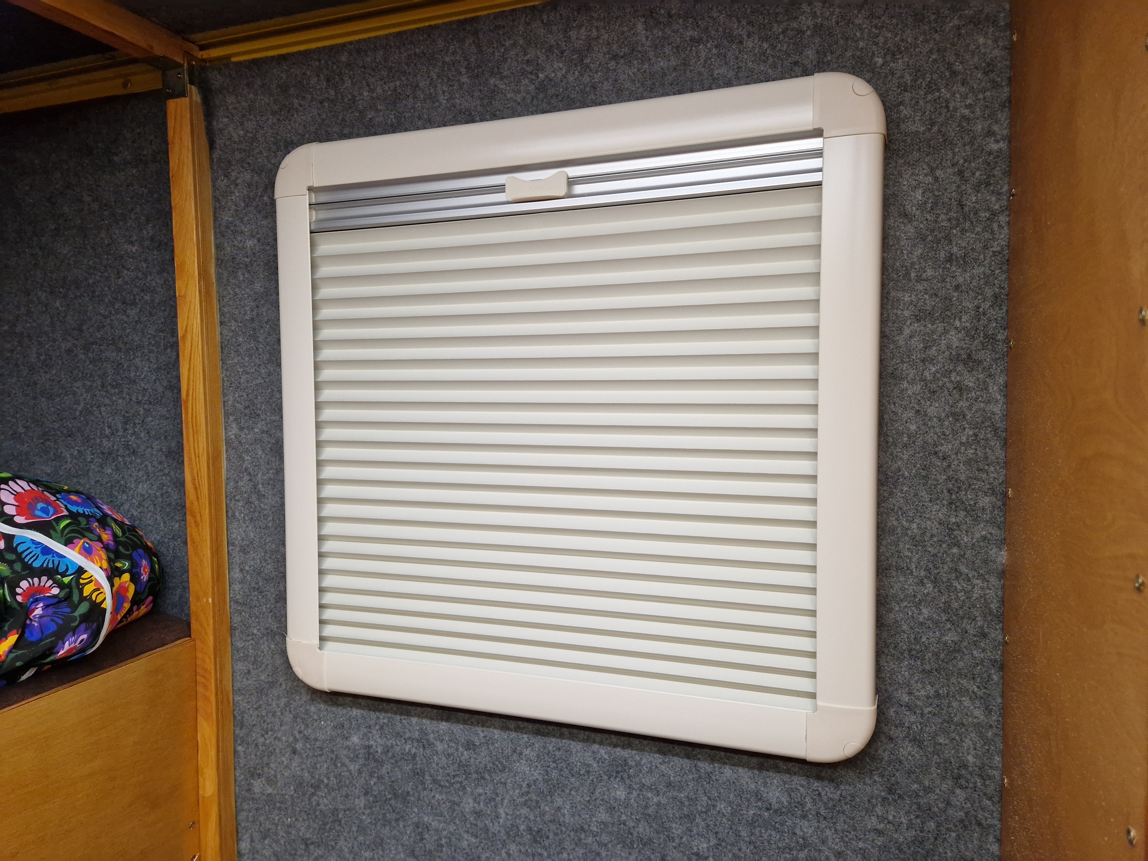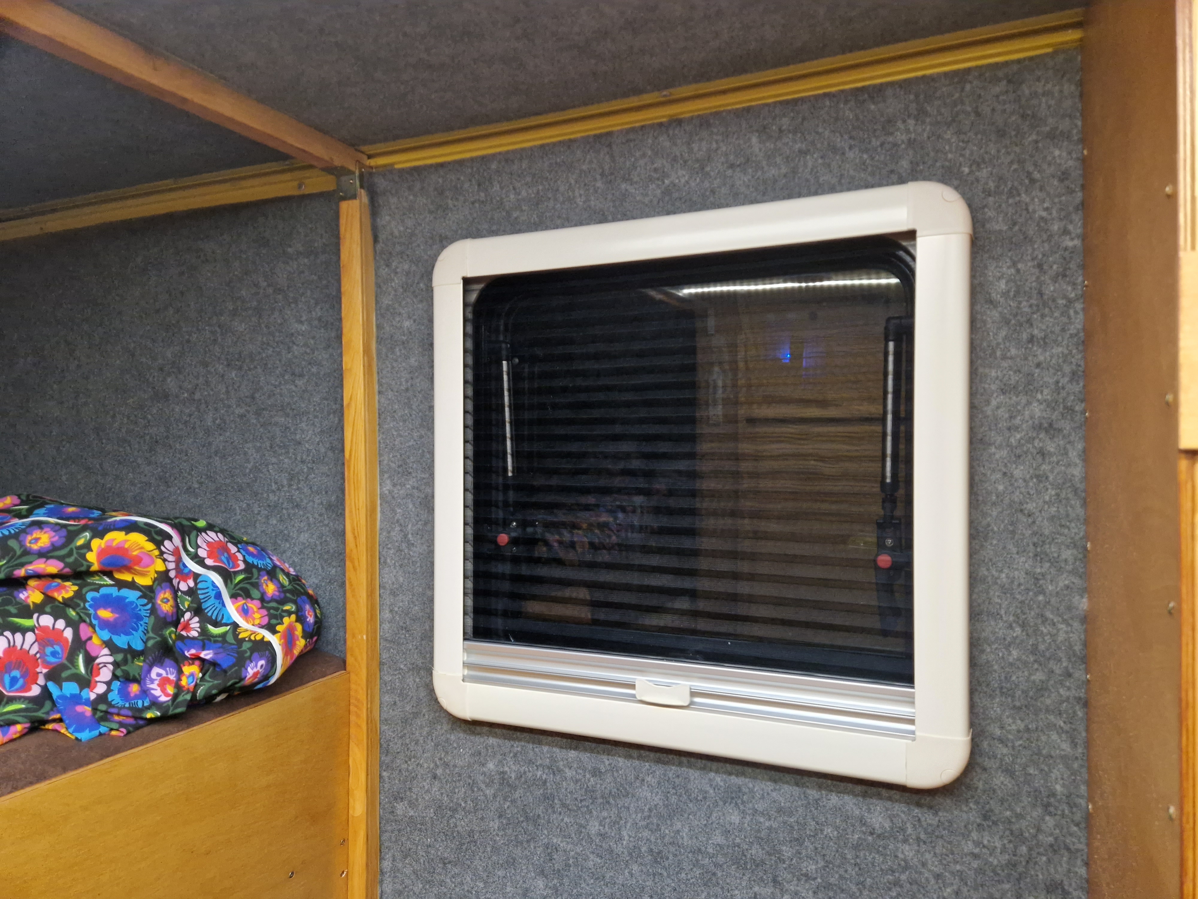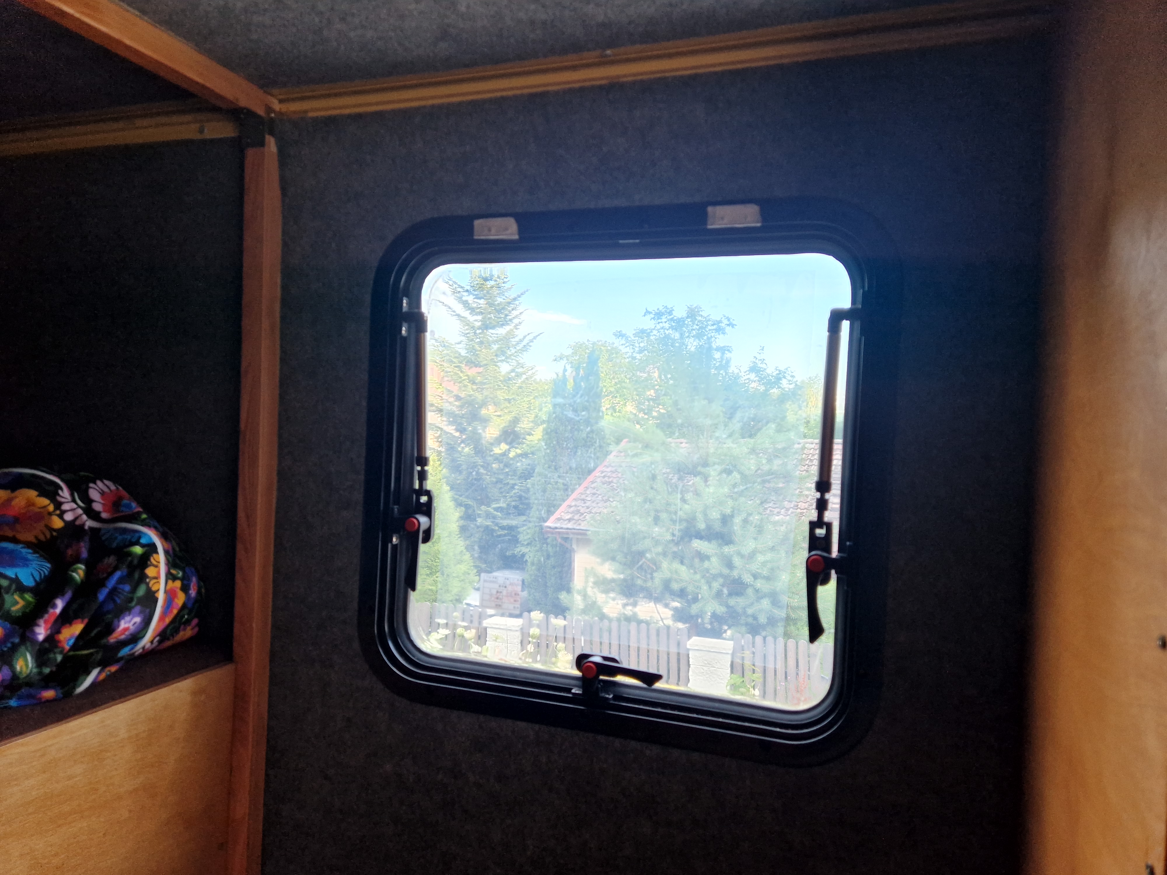 I tyle, okno zostało zamontowane, i już jest dużo przyjemniej w aucie Pozostał nam montaż rolety i moskitiery, tu jest niestety taki patent, że białej ramki z mechanizmem rolety nie montuje się do ramy okiennej, a na 4 śruby/wkręty do ściany (w blaszaku nie byłoby problemu, bo i tak się robi ramkę z drewna). Jako że u nas ścianą jest sandwich laminat-pianka-laminat, dołączone wkręty nijak się do tego nie nadają. Aby przykręcić w czterech rogach ramkę rolety, zamierzam użyć metalowych kołków typu Molly, używanych na przykład w przypadku płyt GK. Sprawdziłem, że takie kołki idealnie trzymają się w płycie sandwich, o ile ich część nie podlegająca zginaniu się przy montażu jest jak najkrótsza (nie wiem jak to opisać, ale jak ktoś widział taki kołek to wie o co chodzi). Także jak wszystko pójdzie dobrze, jutro w aucie wyląduje roleta na oknie, i temat pierwszego okna zamknięty.  Ogólnie jakby ktoś potrzebował w sandwichu coś mocować do ściany to kołki Molly polecam.