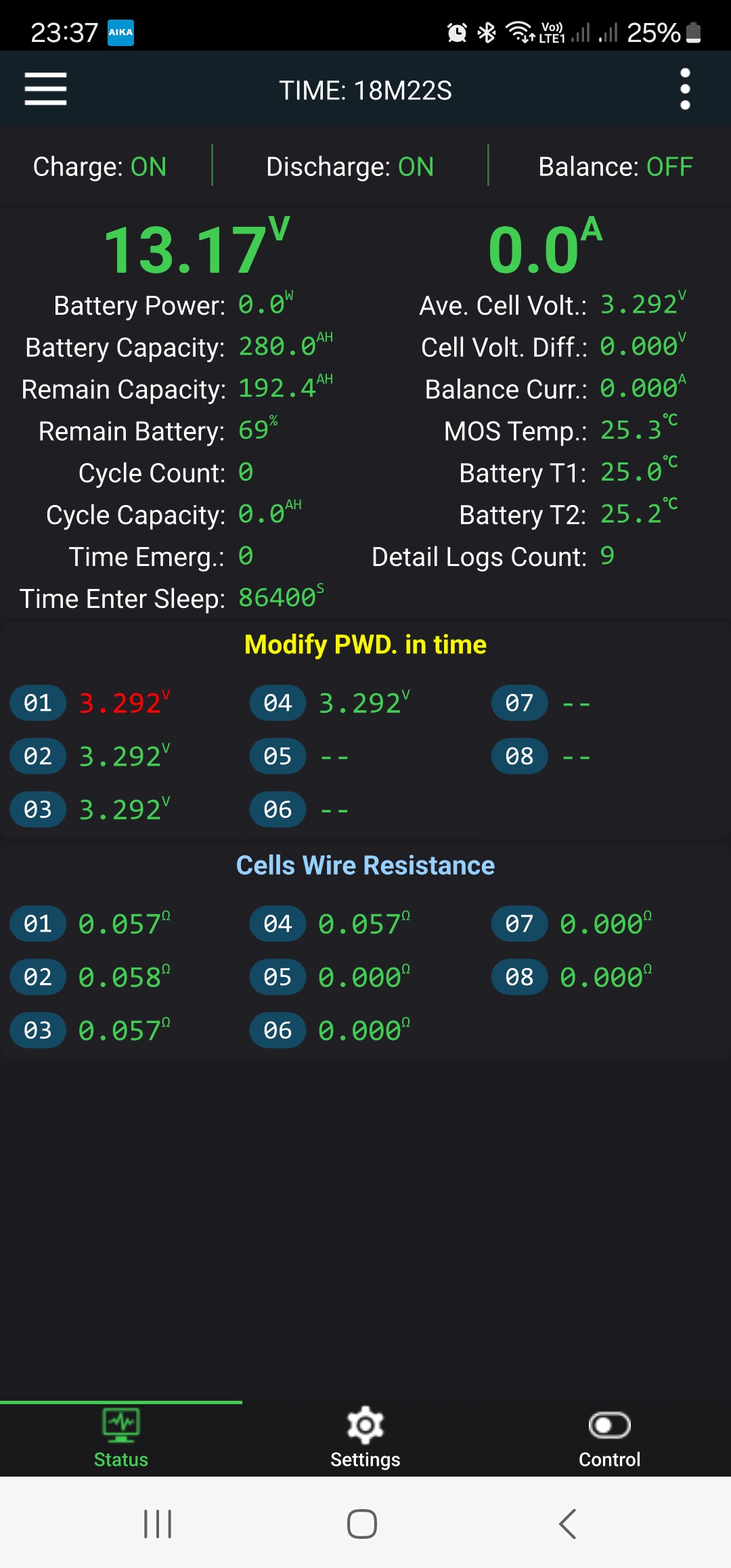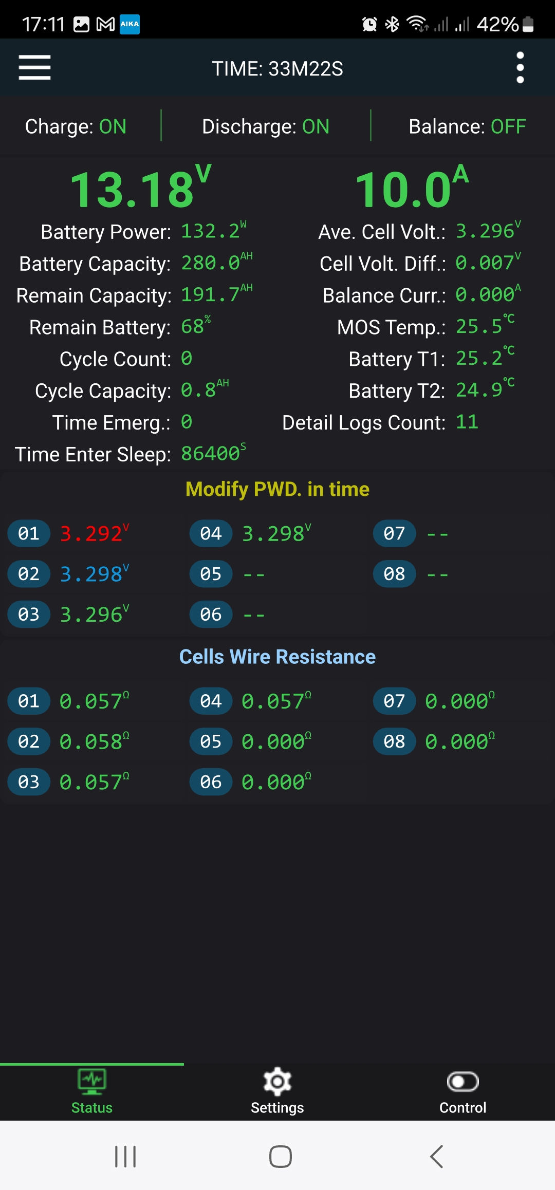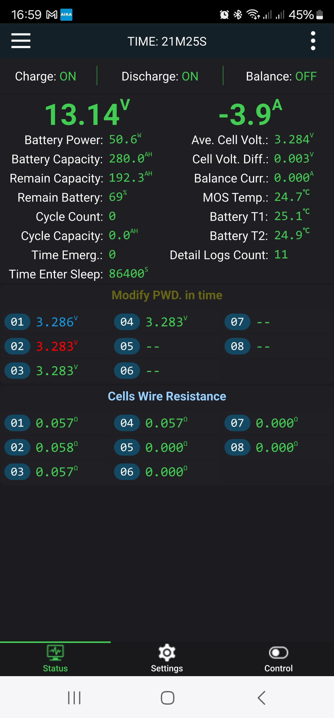 Na razie wygląda, że działa i mogę sobie w aplikacji do BMS poobserwować jak to się będzie zachowywało.