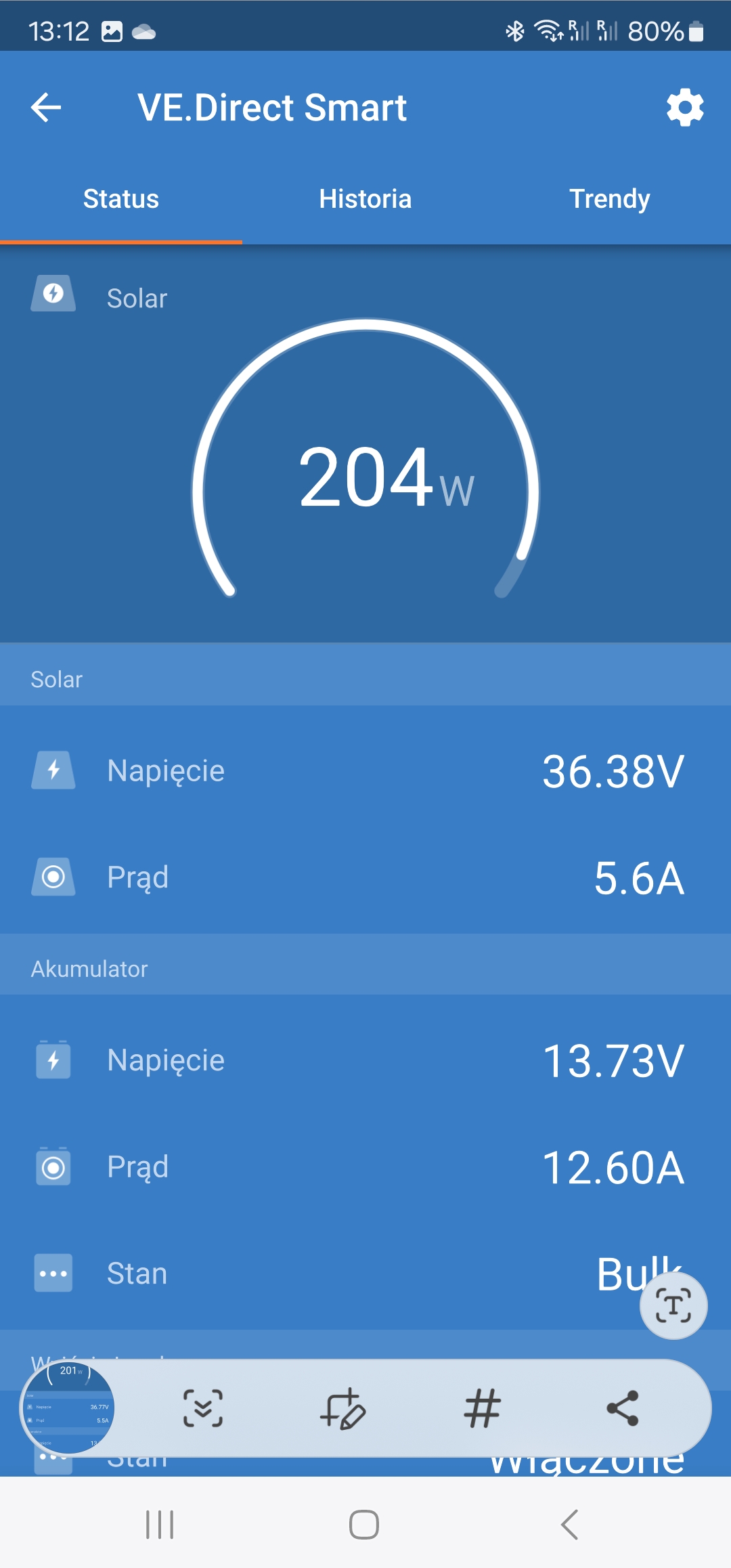 No i muszę zaznaczyć że u mnie niby tylko Aku 105ah gelowy 7 letni i panel 6 letni elastyczny 50W.