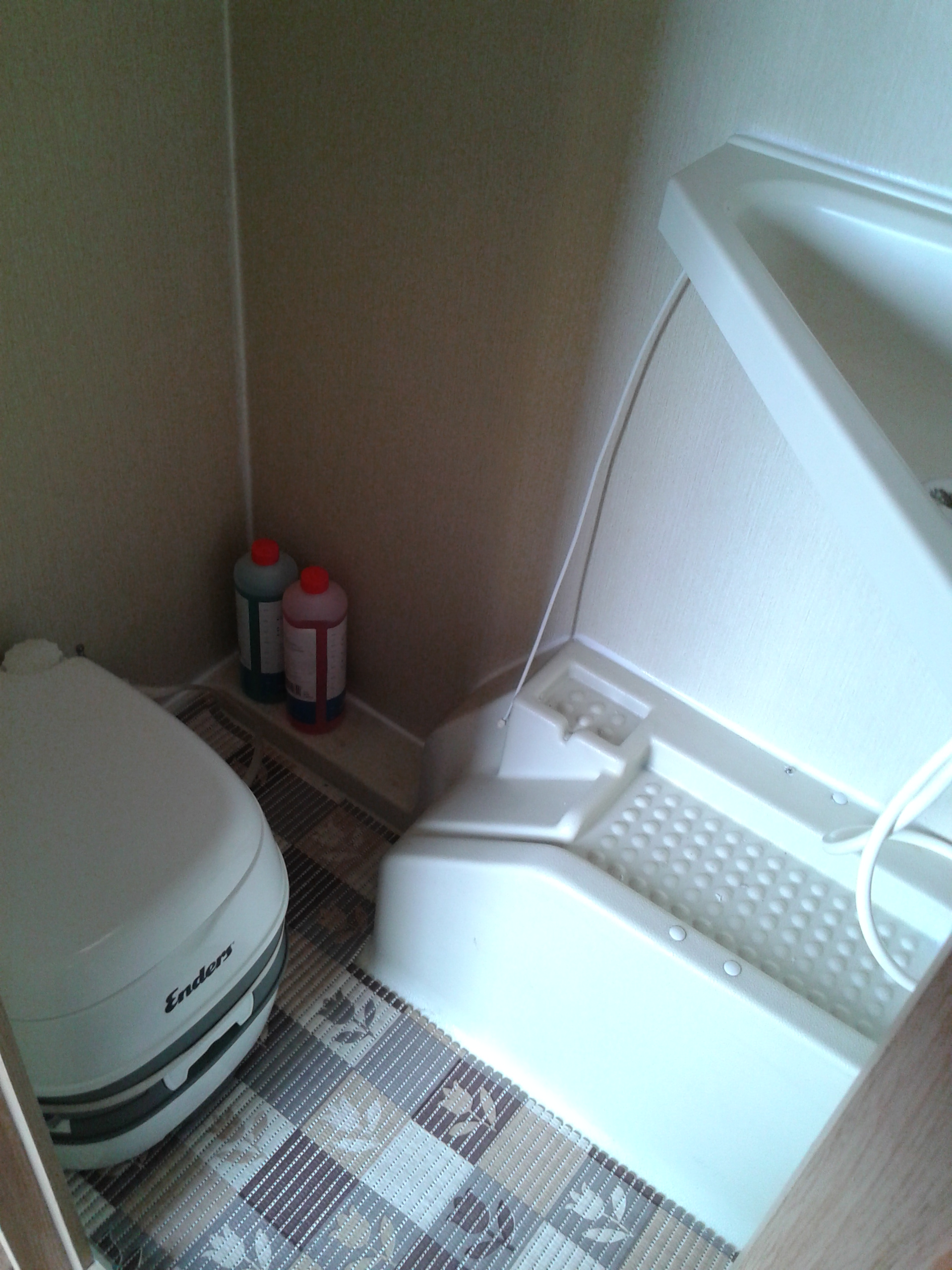 Do tej chwili poza sprzątaniem odświeżyłem troszkę łazienkę, tzn. wymieniłem sylikony, wrzuciłem dywanik na podłogę i kibelek. Kibelek kupiłem inny niż wszyscy, bo firmy Enderson o pojemności 16l góra, 19l dół. Firma mało znana (chyba) ale też polecany na innych forach, a ciut tańszy niż Thetforda i w wersji podstawowej ze wskaźnikiem i odpowietrzeniem.