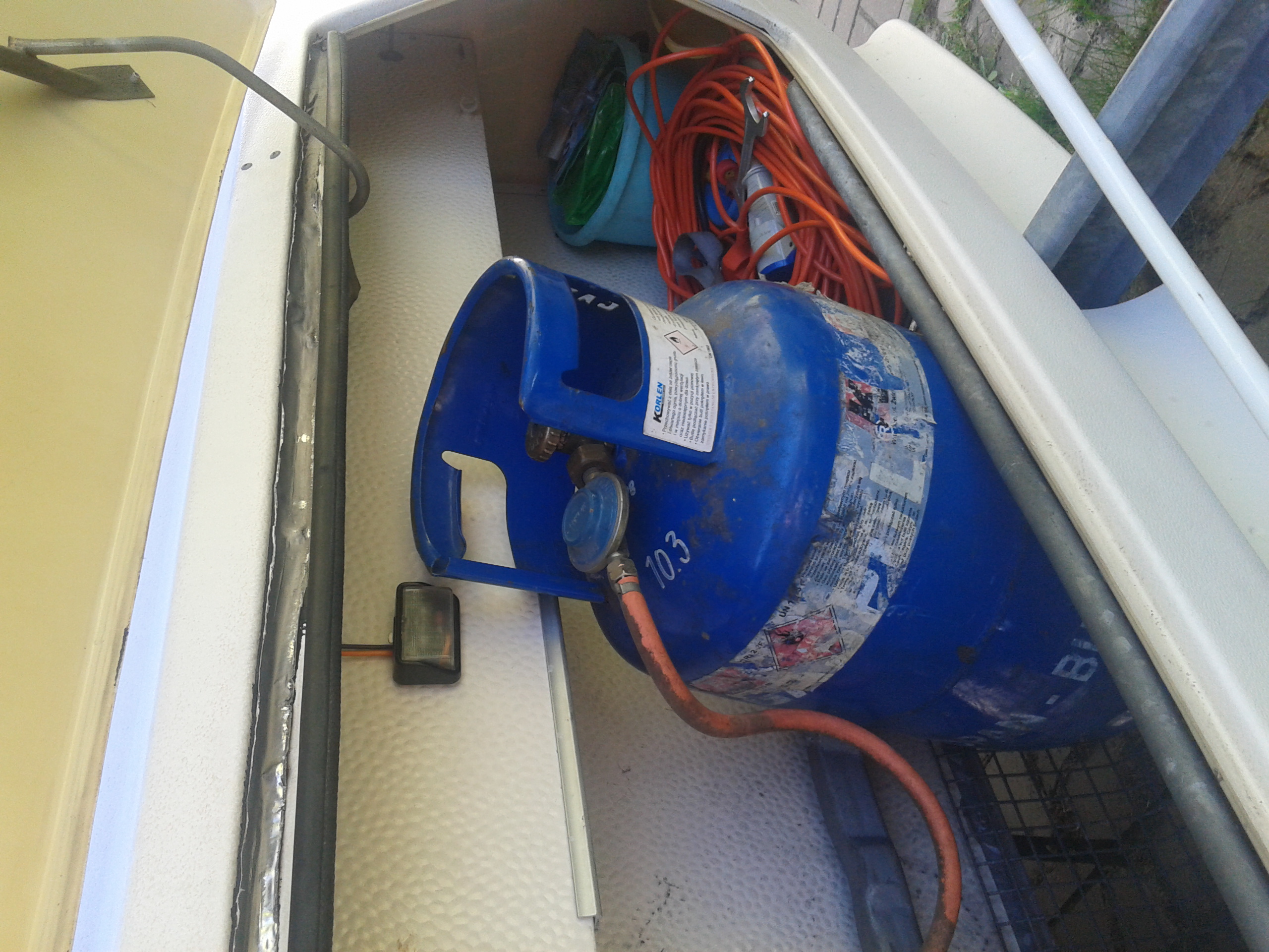 - wymiana oryginalnej butli na 11kg. Ponieważ u mnie legalnie się tego wymienić ani napełnić nie da, poza tym na wakacjach też może być kłopot postanowiłem wymienić na standardową, którą wymienię wszędzie. Niestety 11kg mi raczej nie wejdzie więc trzeba będzie wozić na leżąco, a na postoju stawiać butlę i albo wymienić wąż na dłuższy żeby butlę wystawiać na zewnątrz albo przerobić kosz żeby butla weszła głębiej. W niedzielę będę miał butlę, to przymierzę i popatrzę.