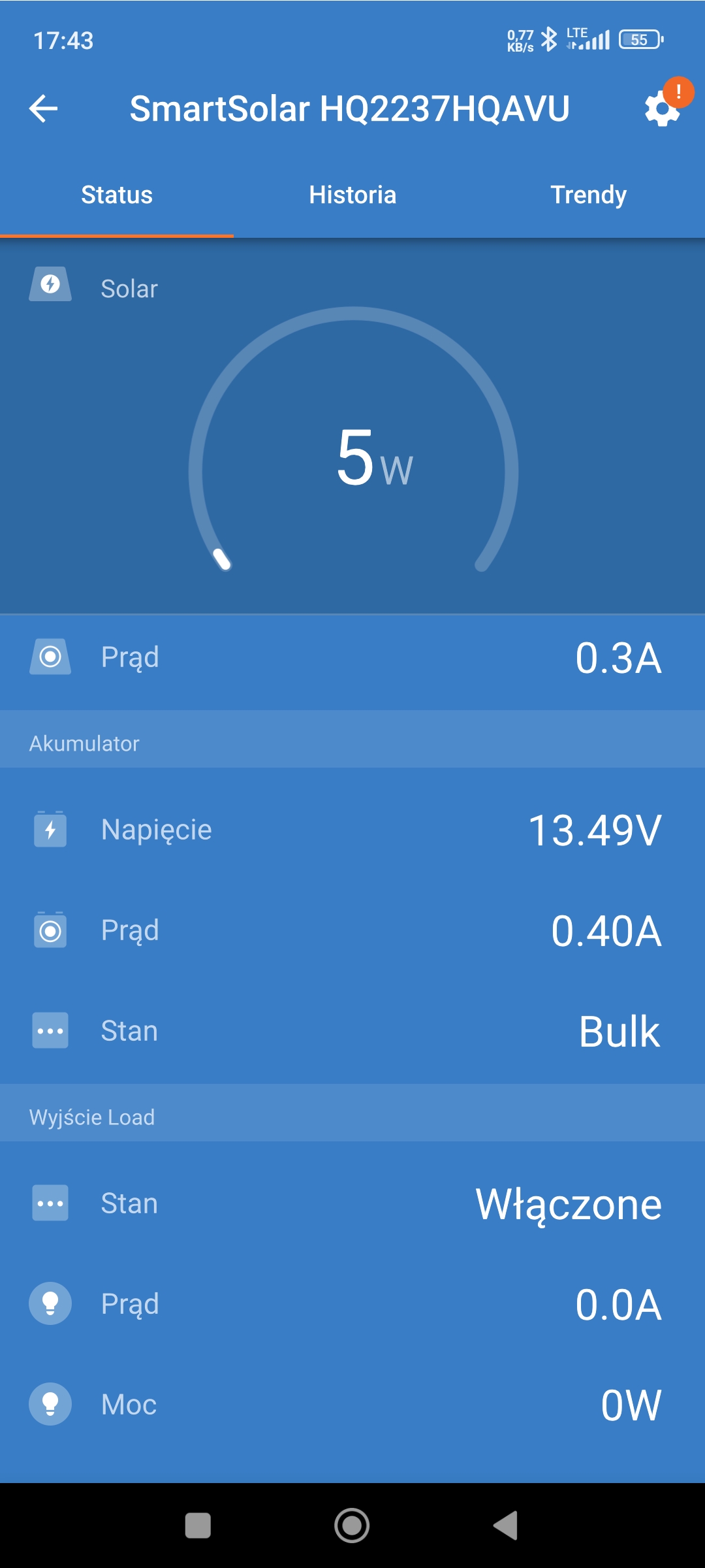 Tak jak wspomniałem poproszę panów w SMR żeby mi go sprawdzili. Victron zamówiony, bo i tak chciałam kupić tylko po urlopie, ale miałem plan rozbudować instalację też o LiFoPo4. Dzisiaj na już nigdzie nie kupię u siebie więc będzie kwasiak. Sterownik zamontuję w niedzielę, jak żona będzie pakować małolaty na drugi etap urlopu. Będzie wtedy też podgląd jaka jest produkcja i jakie zużycie więc łatwiej będzie diagnozować problem jakby się utrzymywał.