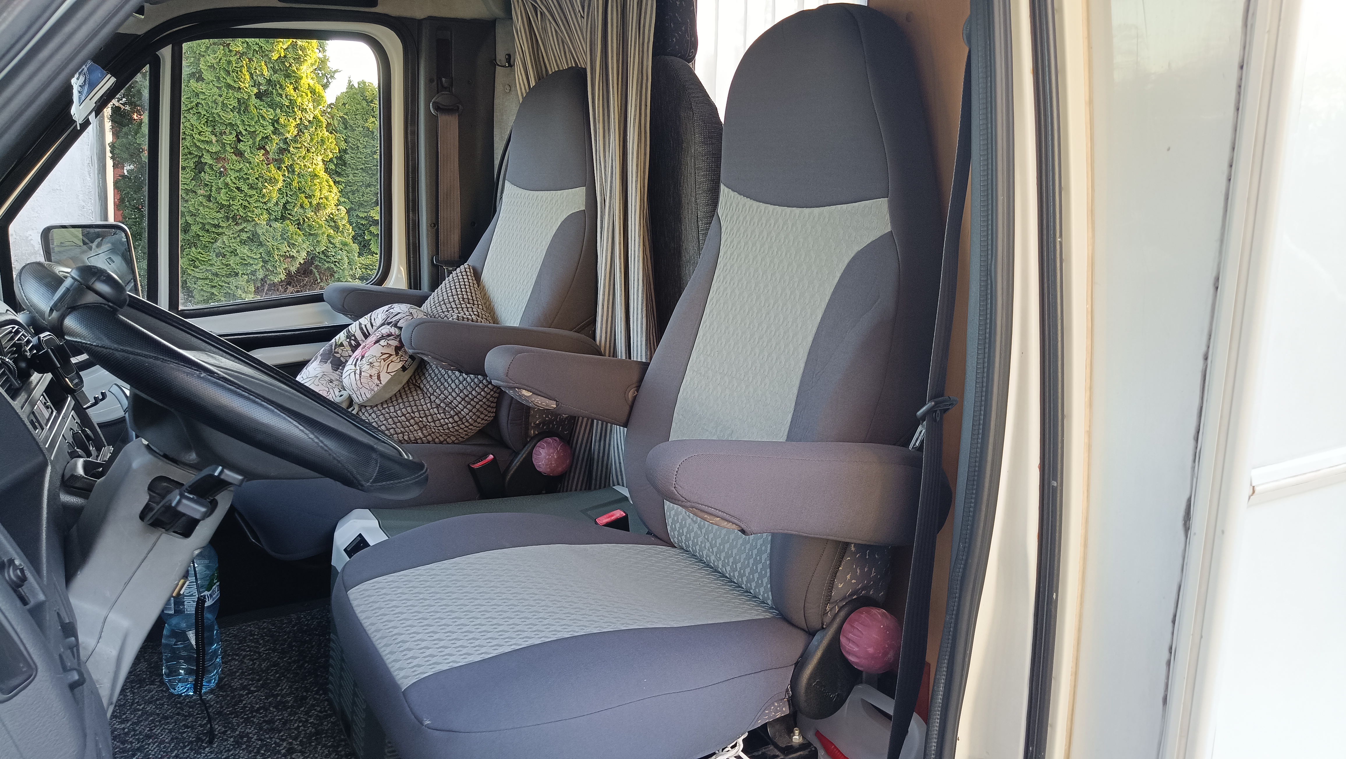 To oczywiście tylko pokrowce, bo obszycie foteli samochodowych kosztuje majątek, a te nawet nie są do tego modelu tylko do nowszego Fiata (regulacja podłokietników w innym miejscu) ale wygląda zdecydowanie lepiej niż stare i wypierdziane już orginalne pokrowce.