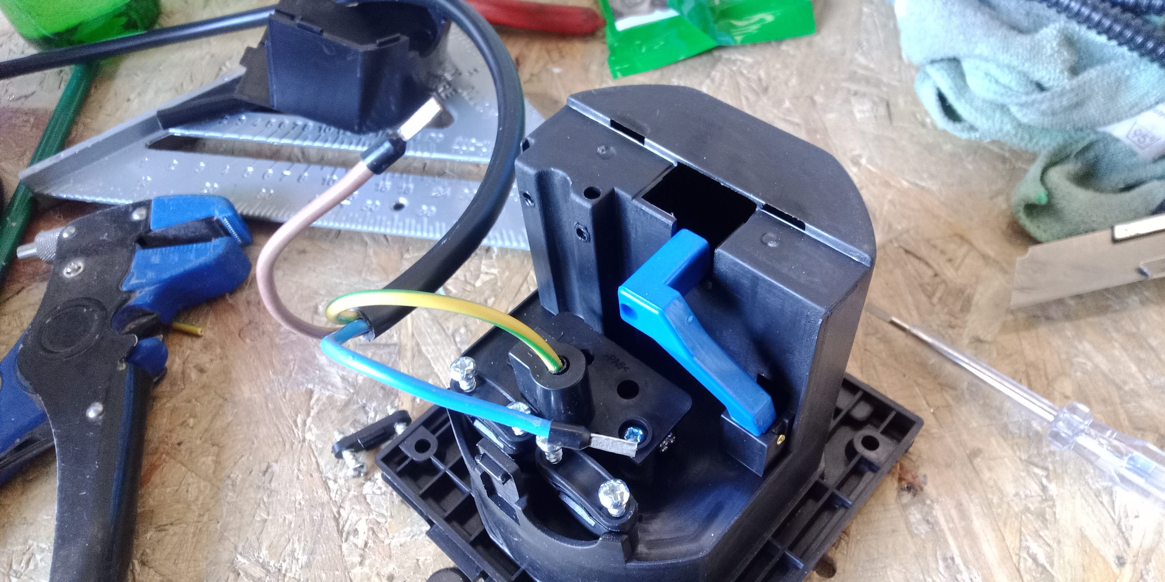 Potem montaż gniazda zewnętrznego. Wszystkie końcówki przewodów, również te 12V mają zaciśnięte końcówki