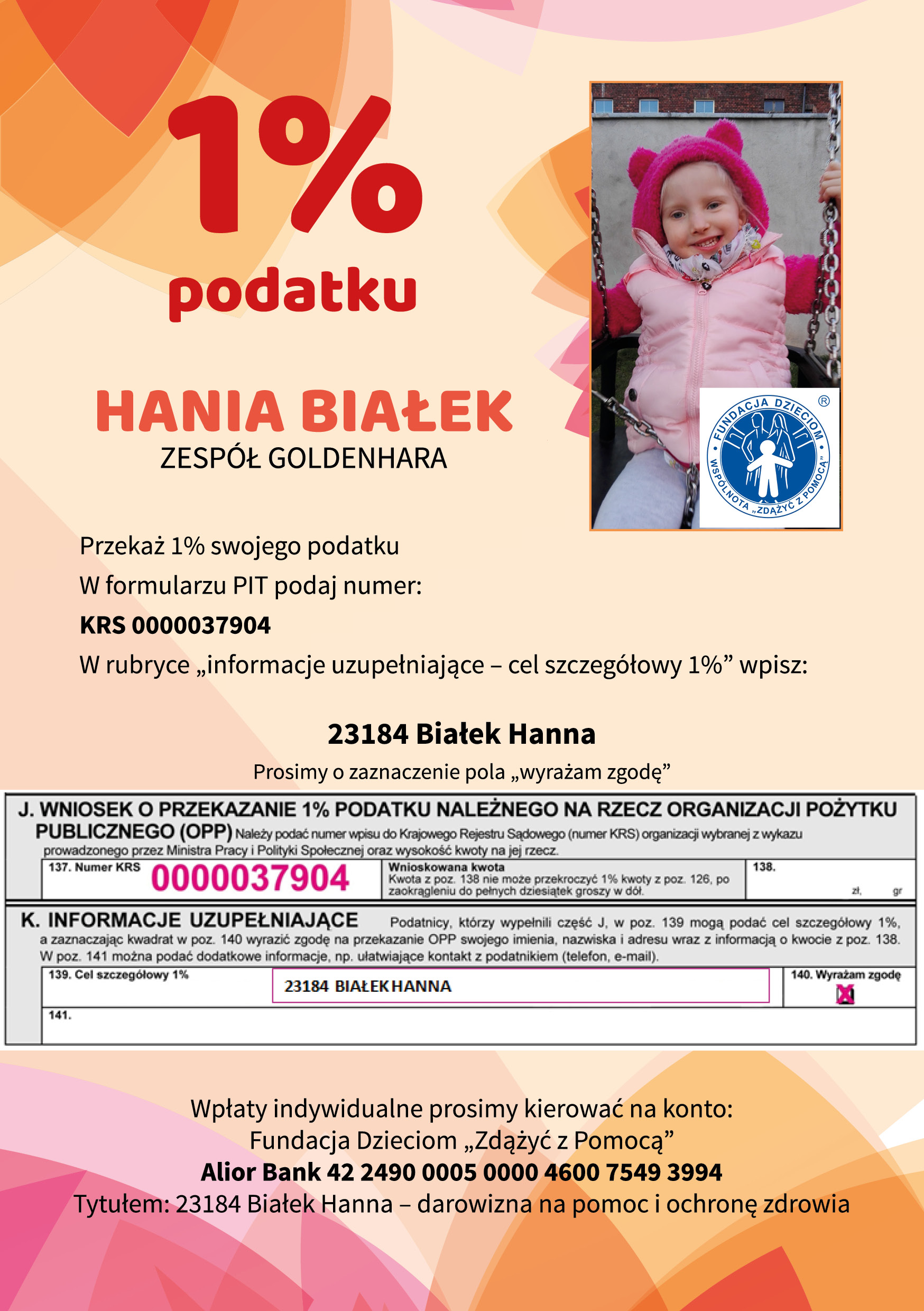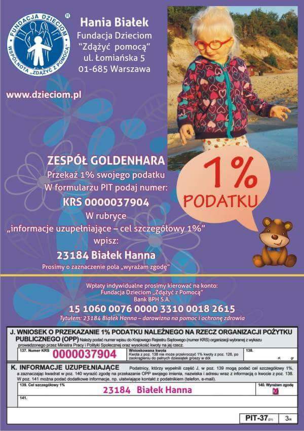 Jak co roku prosimy o 1% podatku dla naszej Hanuśki.