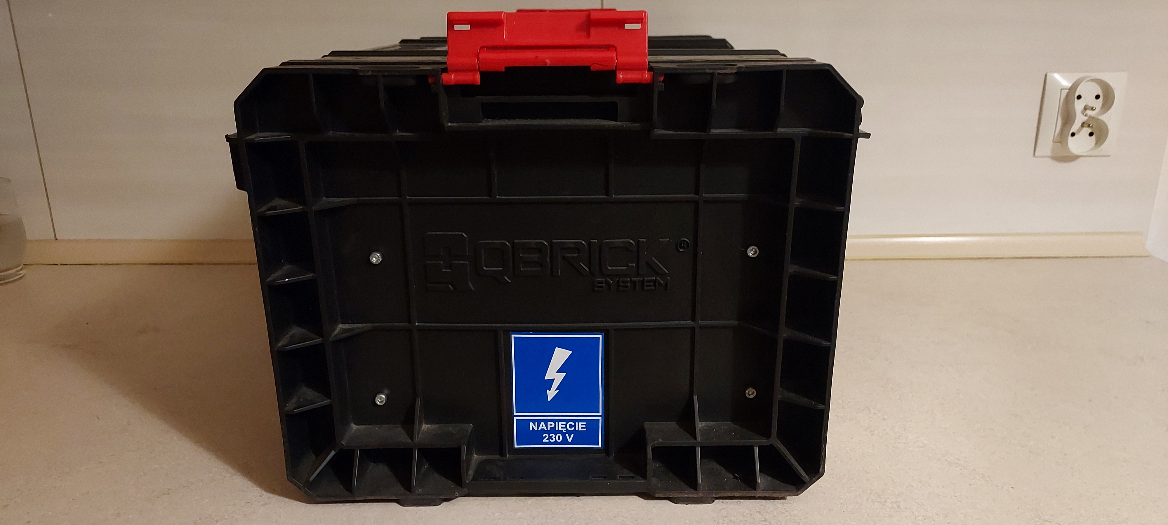Niestety nie są to tanie rzeczy, ceny zaczynają się od kilku tysięcy w górę. Dlatego dokonałem przeglądu przydasiów, które gdzieś tam zalegały w ciemnych, głębokich czeluściach garażu i znalazłem: skrzynkę narzędziową, akumulator 33Ah, zasilacz awaryjny UPS z padniętym akumulatorem 7Ah, garść wyłączników, diody świecące LED, kilka gniazd 230 Volt z klapką i bez klapki, regulator solarny PWM, wiązkę przewodów z odzysku i skonstruowałem coś takiego:
