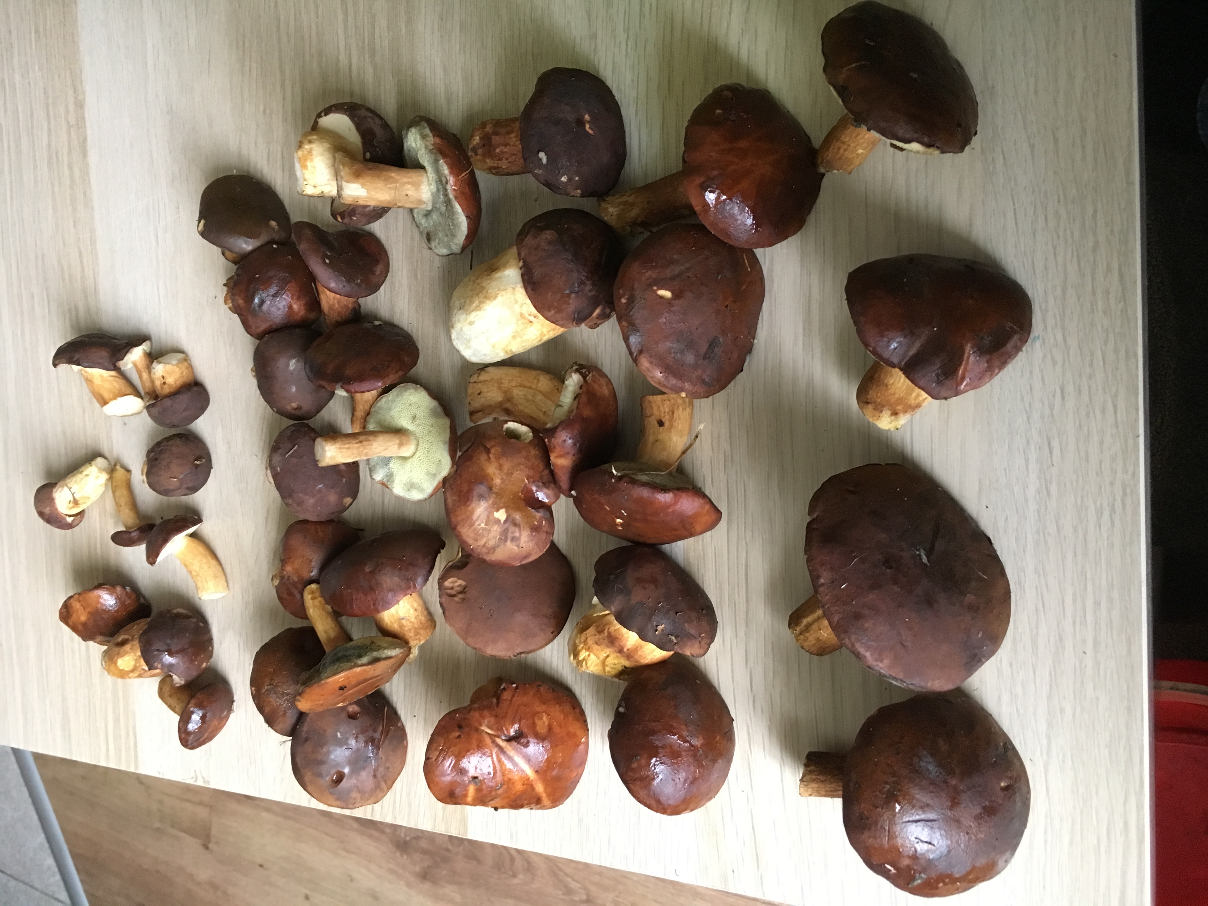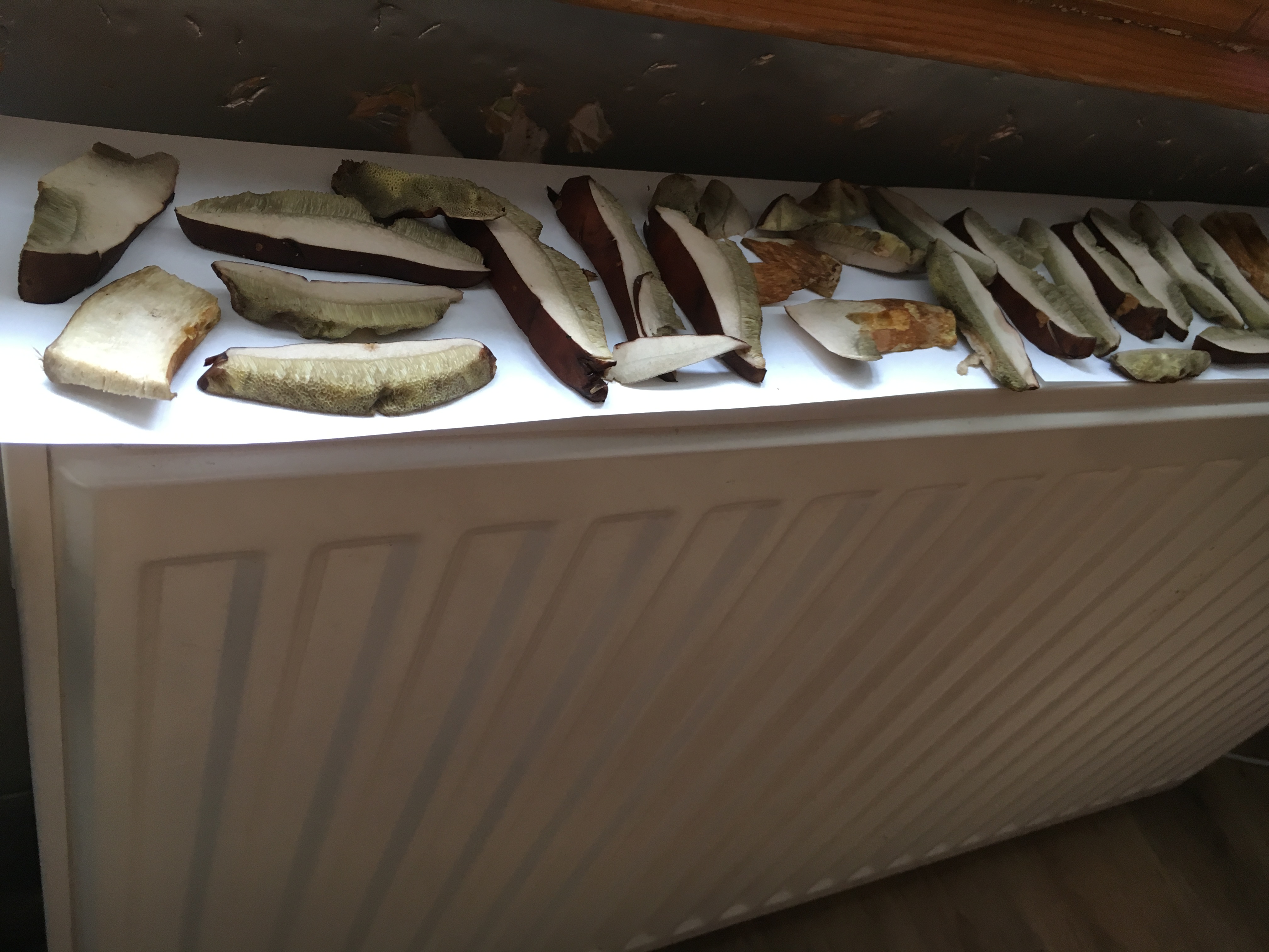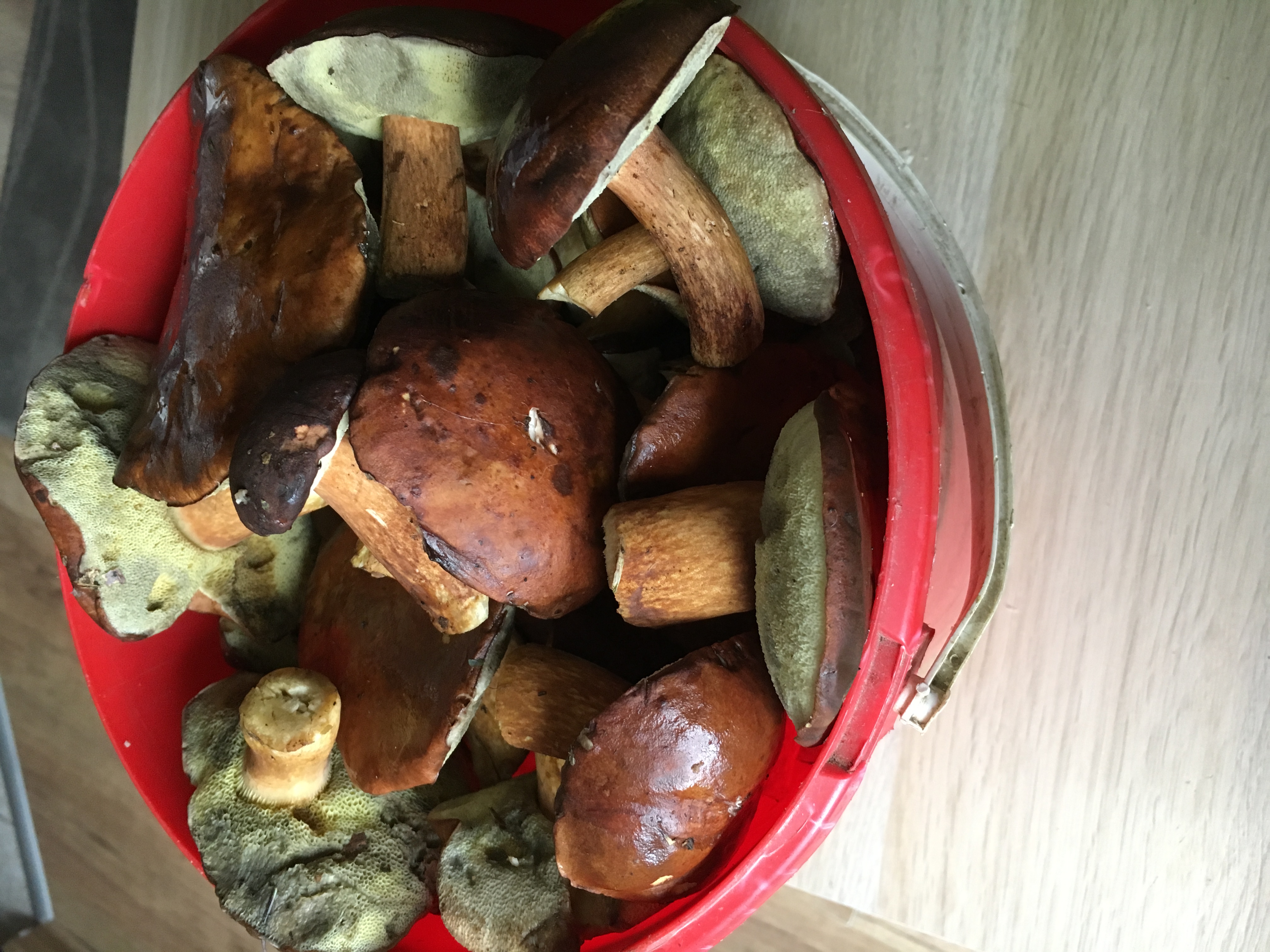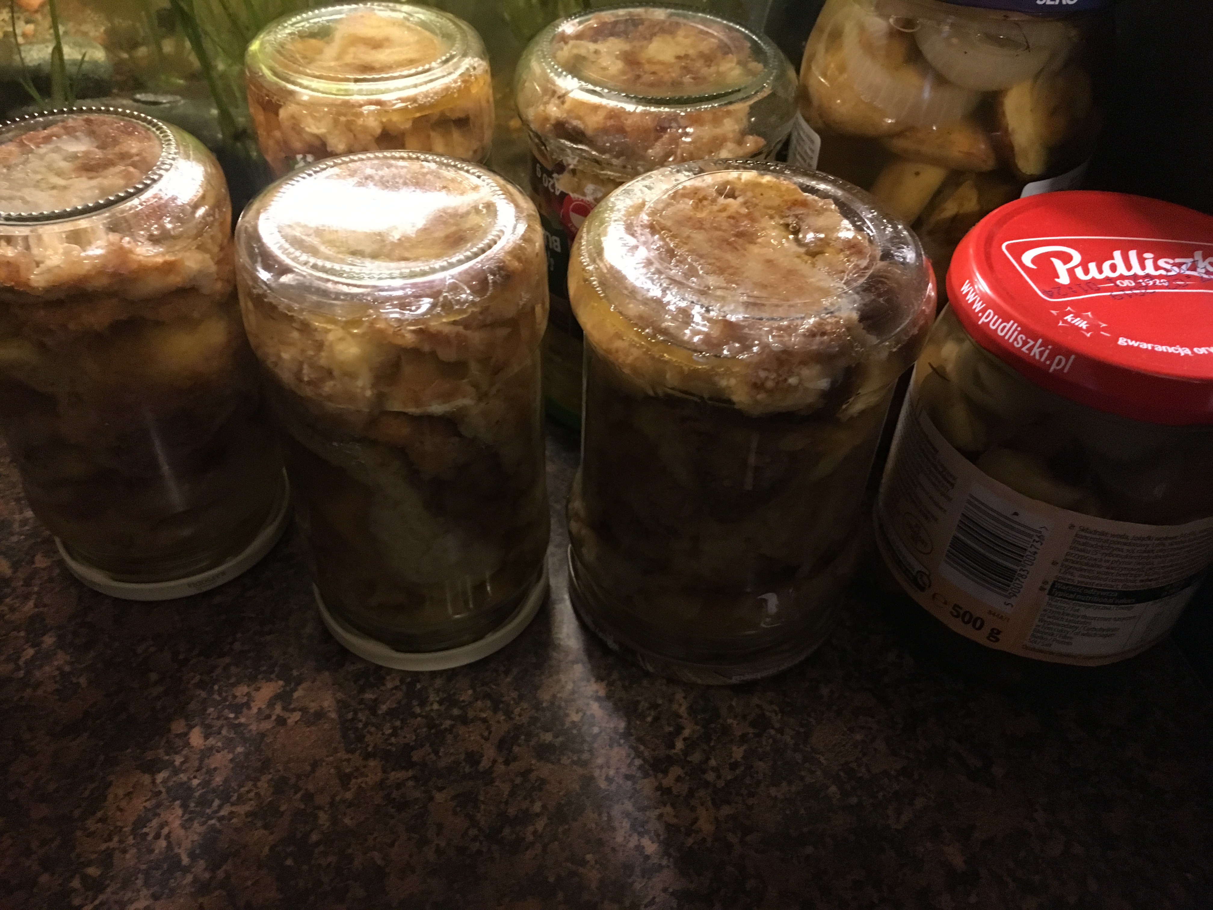U nas dzisiaj małe plony grzybowe. Podgrzybki od sąsiadki za pomoc, a sowy/kanie nazbierane samodzielnie. Podgrzybki trochę w sloikach, a trochę na kaloryferze. Sowy posmażone i.. zjedzone, ale tez dzięki uprzejmości małżonki, cześć z nich zagościła w zalewie octowej.