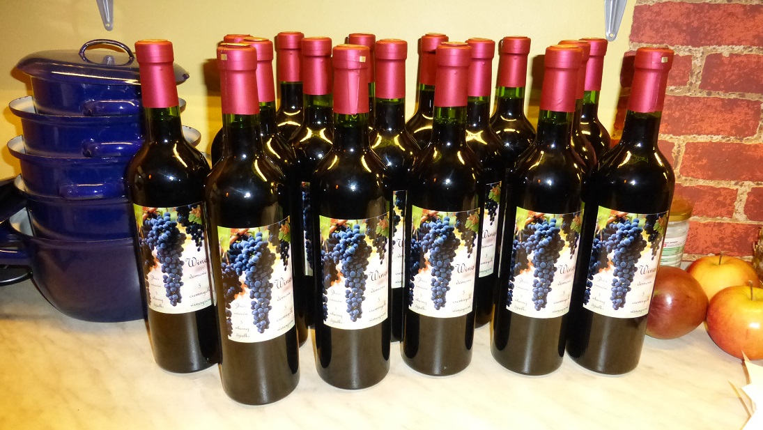 Wino z winogron poszło do butli po roku od nastawienia. Na mój smak mogło wyjść trochę bardziej wytrawne ale nie ma lipy.