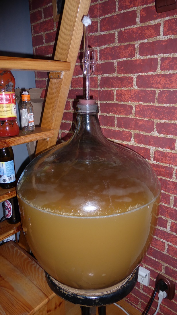 Nastawiłem też wino z jabłek a właściwie z soku jabłkowego. Dałem taki naturalny, mętny sok co to go sprzedają w kartonach z kranikiem.