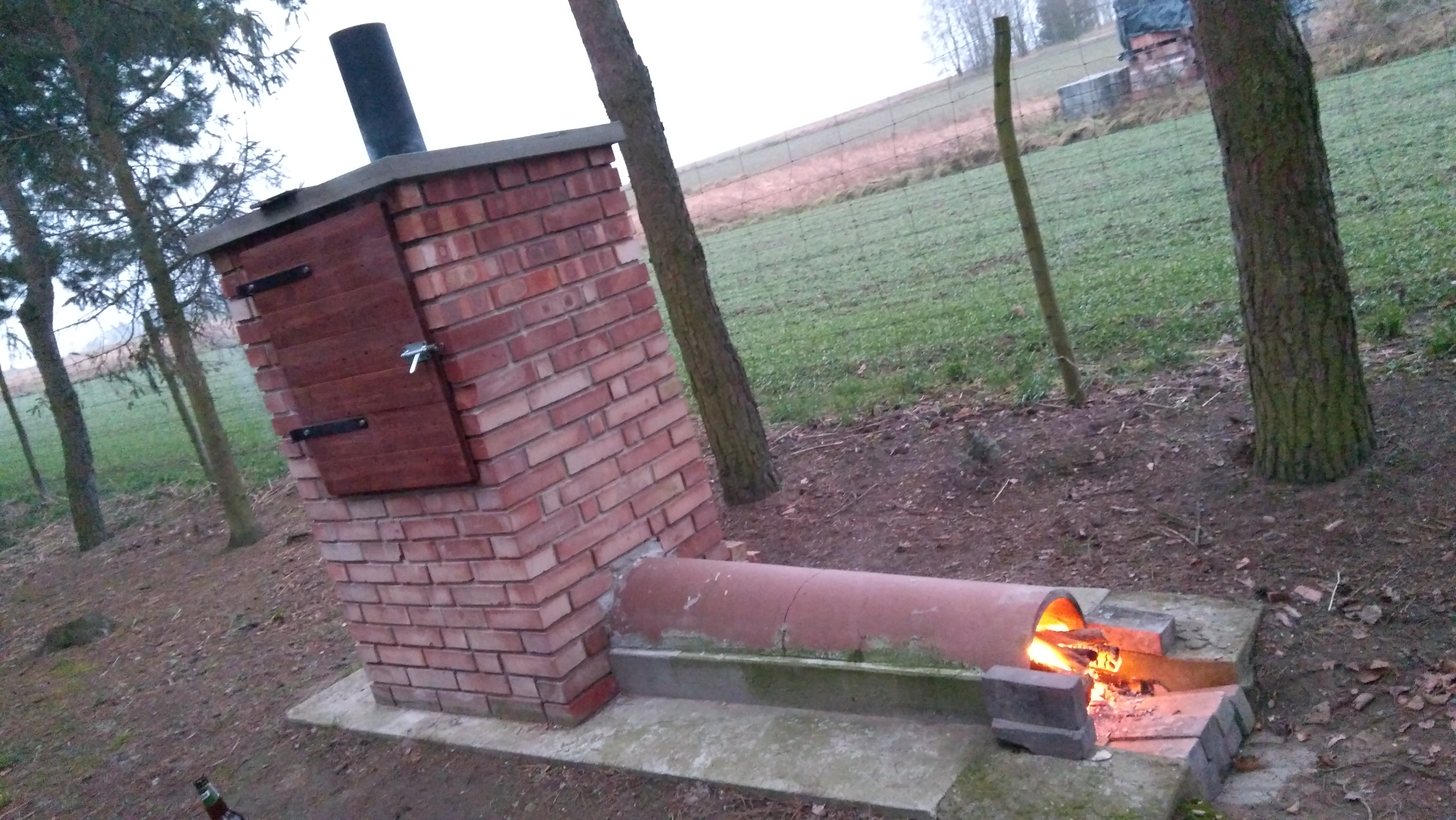 A wędzarnia no to cóż, prosta konstrukcja. Bez murowania i postawiona na szybko. Lubię paleniska bardziej bezpośrednie, bez kanału dymnego więc takie powstało.