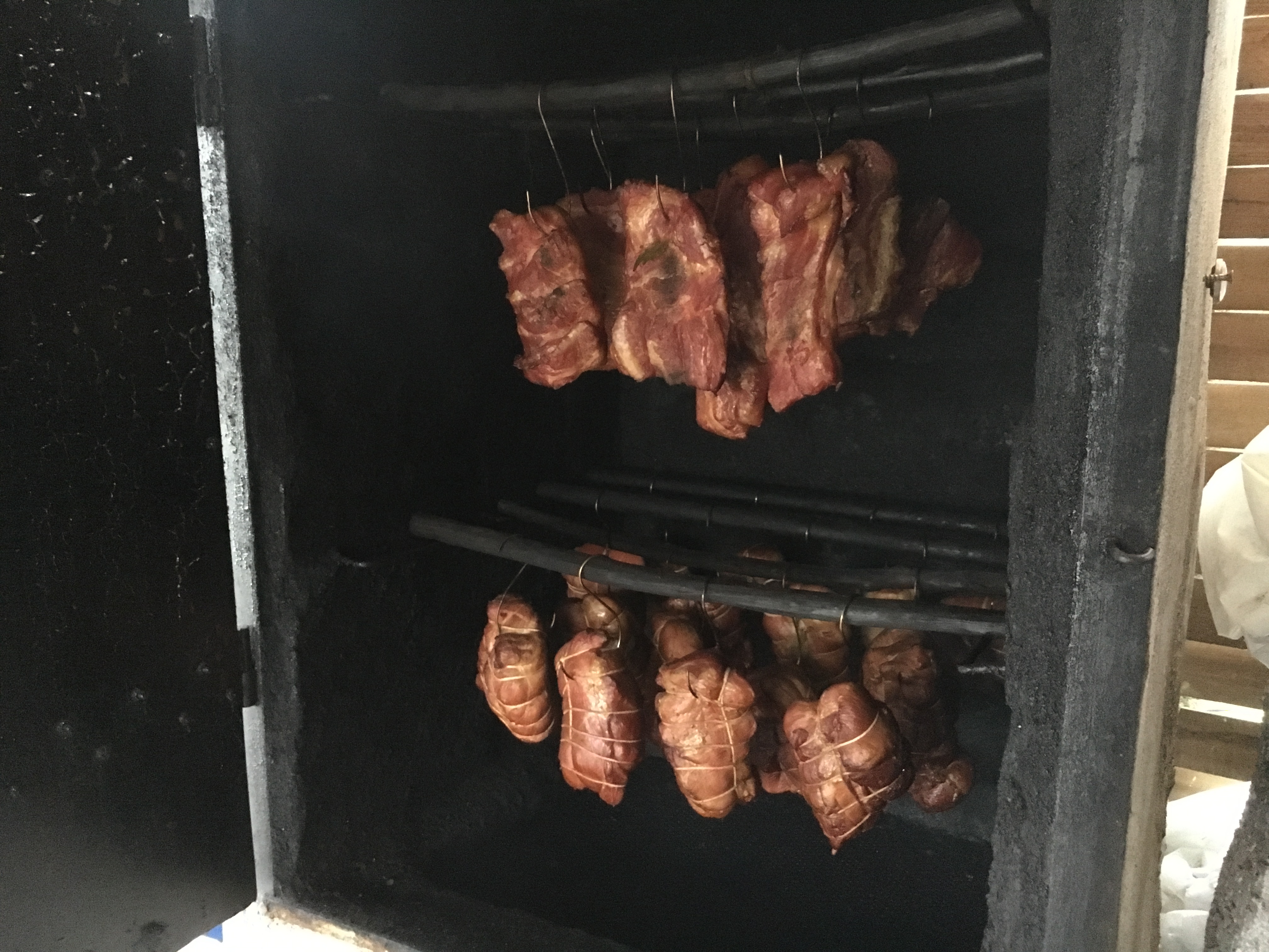 Leci ósma godzina wędzenia, robi się ciemnawo, ale kolorek już jest. Jeszcze chwilę i będzie. Trochę się boję, czy wyjdzie, bo z racji Wielkiego Piątku nie było „podlane”