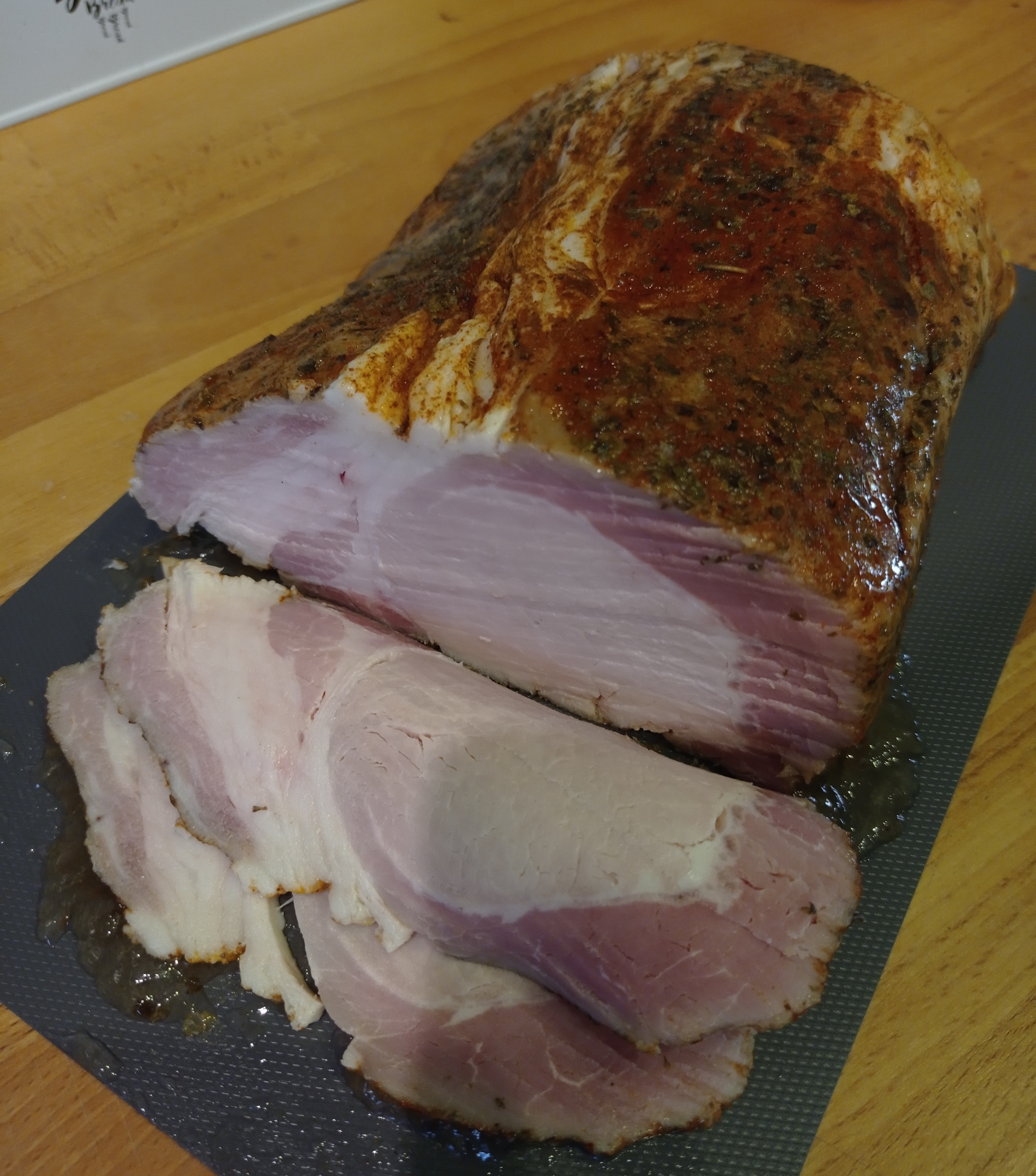 Schab celowo wziąłem taki oszukany żeby nie było zbyt suche. Nieskromnie powiem, że jest super.