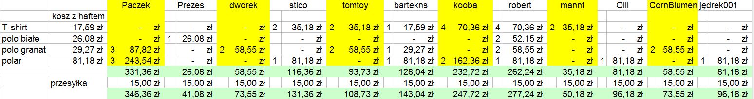 Poniżej pełna specyfikacja co, kto zamawiał i ile ma do zapłaty.