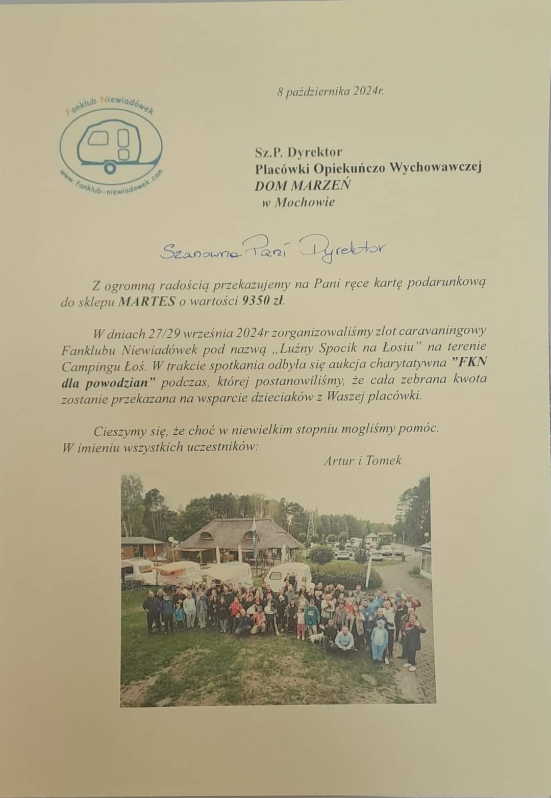 W porozumieniu z Panią Dyrektor Placówki Opiekuńczo-Wychowawczej w Mochowie, za calą zebraną kwotę, zakupiliśmy kartę podarunkową do wykorzystania w sklepie Martes.