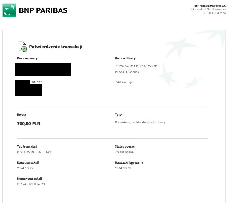 Tradycyjnie jak co roku zbierałem "co łaska" żeby przekazać jakąś małą darowiznę na rzecz naszego hufca, który udostępnia nam teren na Dziady. W tym roku uzbierało się okrągłe 700 zł i tyle też dzisiaj przekazałem na konto. Dzięki.
