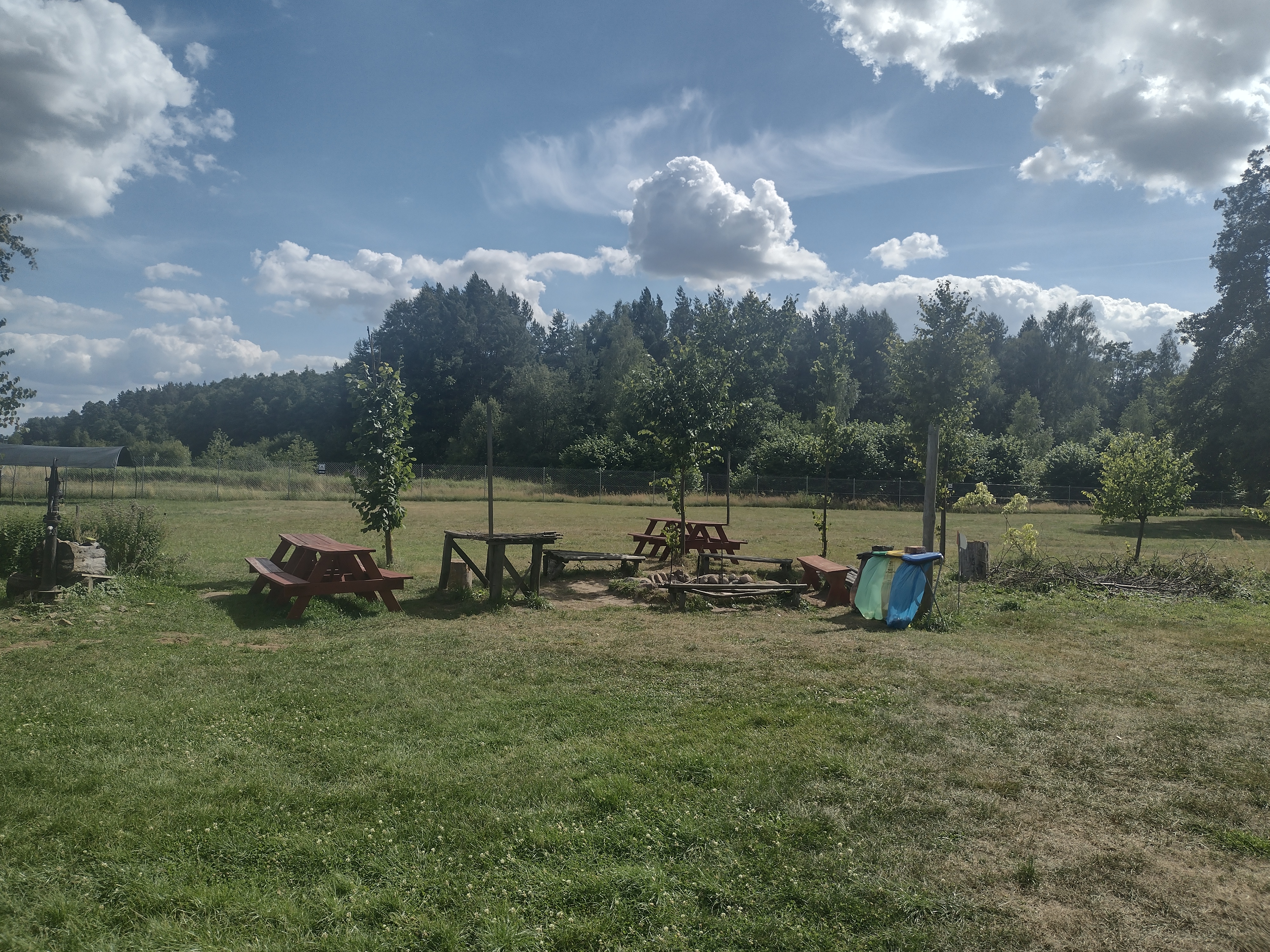 - 4 kręgi ogniskowe z ławeczkami i stołami