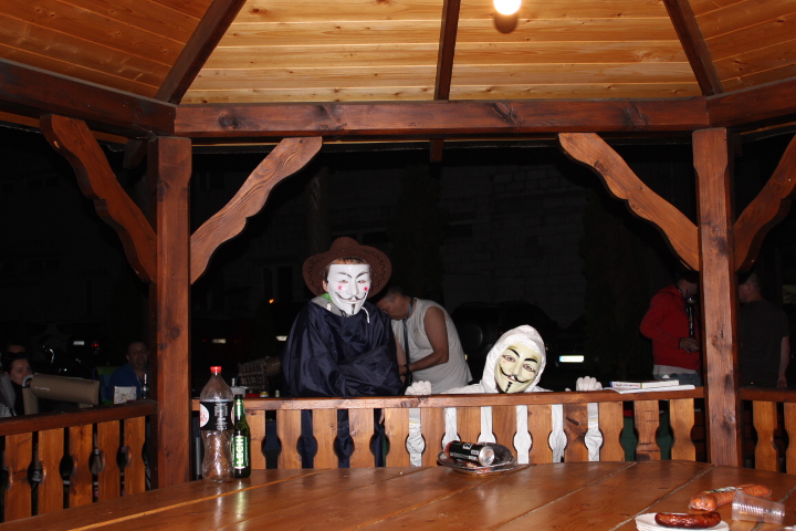 Wyobrażacie sobie zdziwionych gapiów jak szliśmy deptakiem na disco. Najpierw szła para ze świecącymi kapeluszami, za nimi Batman, człowiek z maską z horroru, siostra zakonna z pastorem, facet z fajką wodną w kapeluszu i w piżamie, a na koniec kiedy przeciętnego gapia już nic nie było w stanie zdziwić wyłaniała się regularna para mloda w białej sukni z welonem i fraku a'la Michał Szpaku.