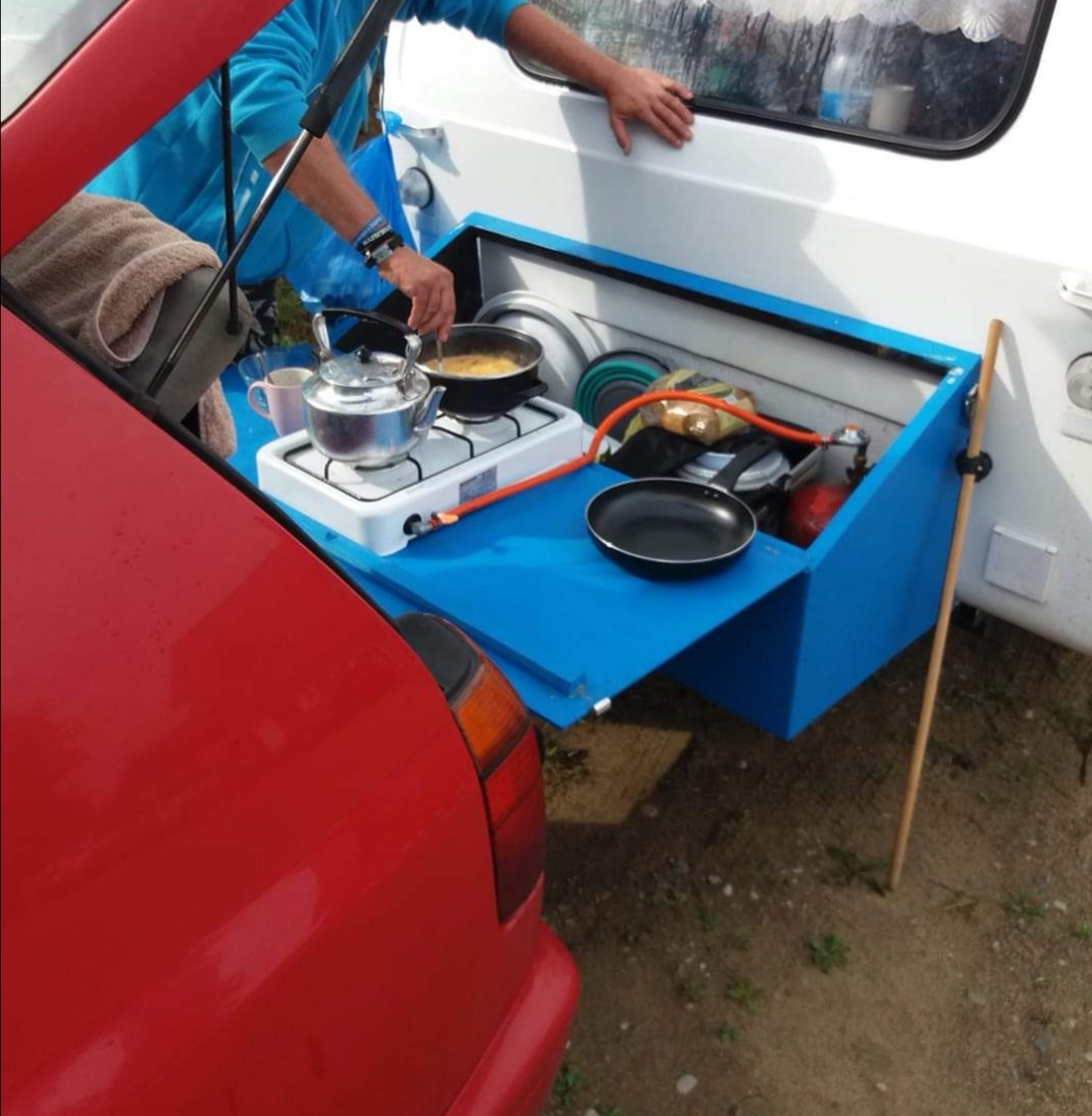 Mało miejsca między przyczepą i autem, brak kufra na potrzebne rzeczy, przewody, butlę i inne szpargały. To jest typowy przykład sztuki dla sztuki.