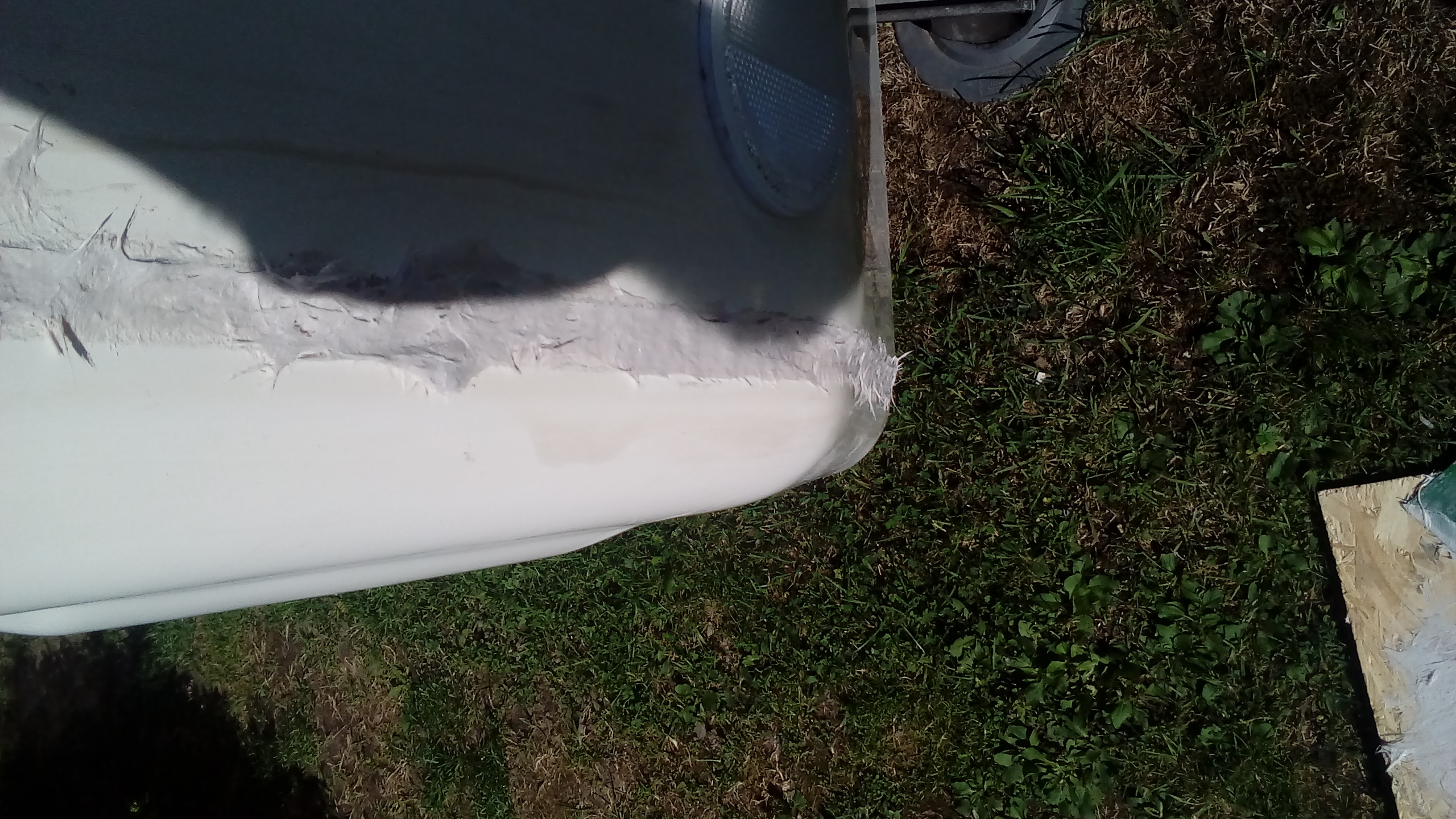 Kilka fotek z dzisiejszych prac. Szpachlowanie, zakleiłem krawędź taśmą, by nie brudzić całej budki. Po szpachlowaniu zaraz taśmę usunąłem, by uniknąć sklejenia jej na krawędzi do budki.