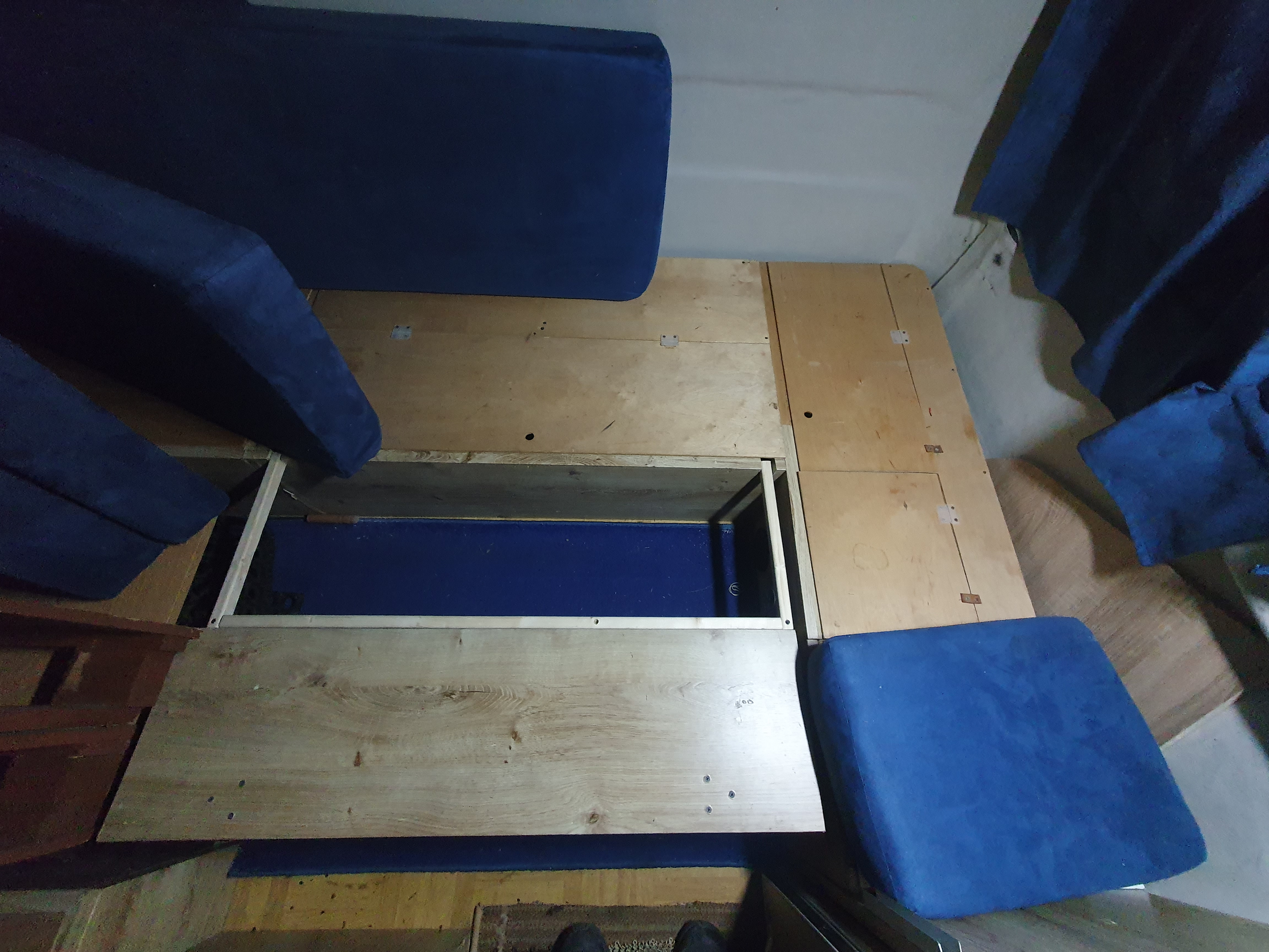 U nas na dużym rozłożonym "łóżku" śpimy z żoną z młodszym dzieckiem , a na blacie dziennym w przedniej części przyczepy rozkładamy dodatkowe materace i starszy syn ma wygodne spanie 185 x 50 cm. Blat jest w formie trapezu żeby swobodnie mieścić się w drzwiach. To jest taka wersja 2+1+1 lub 2+1.