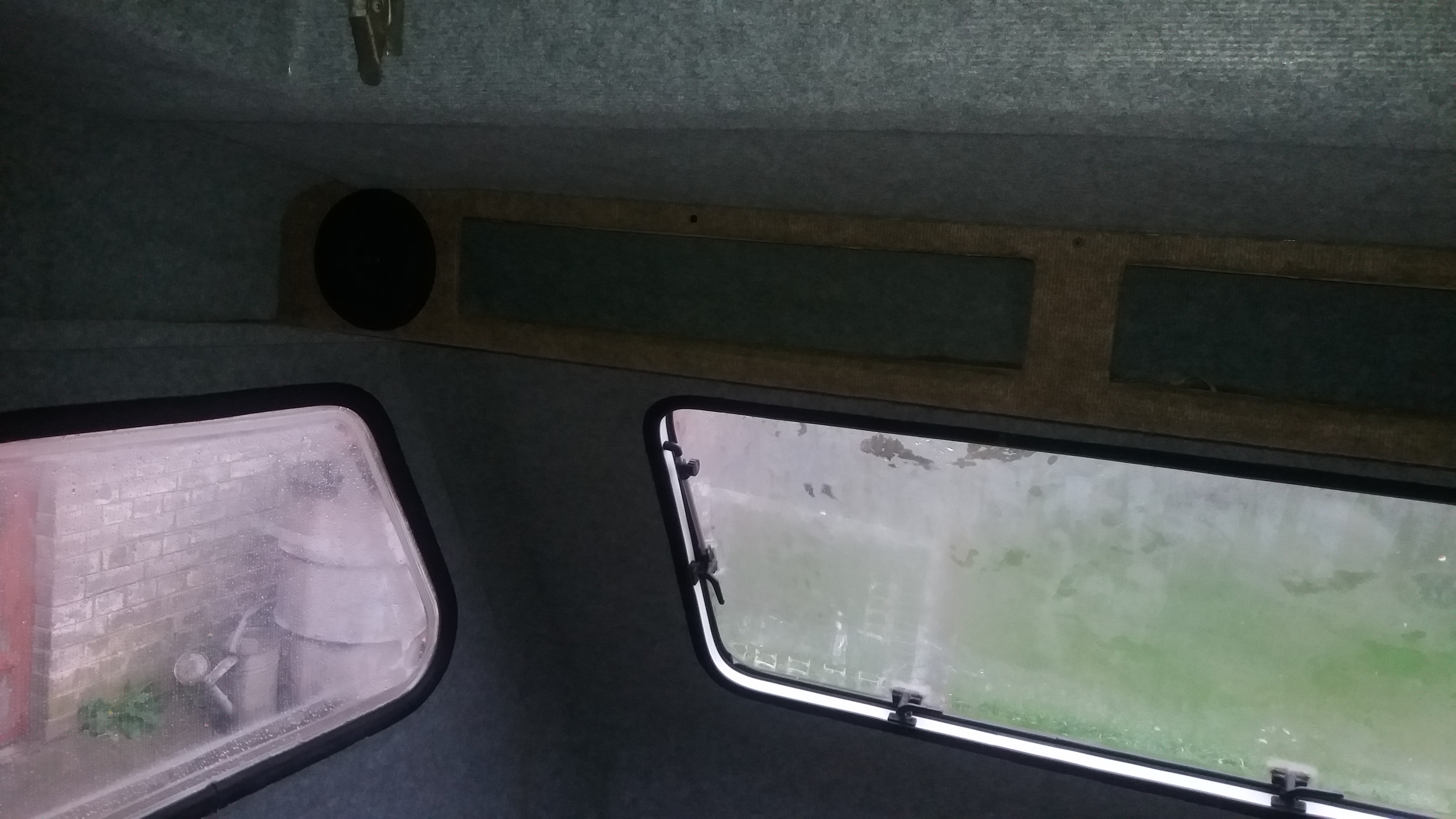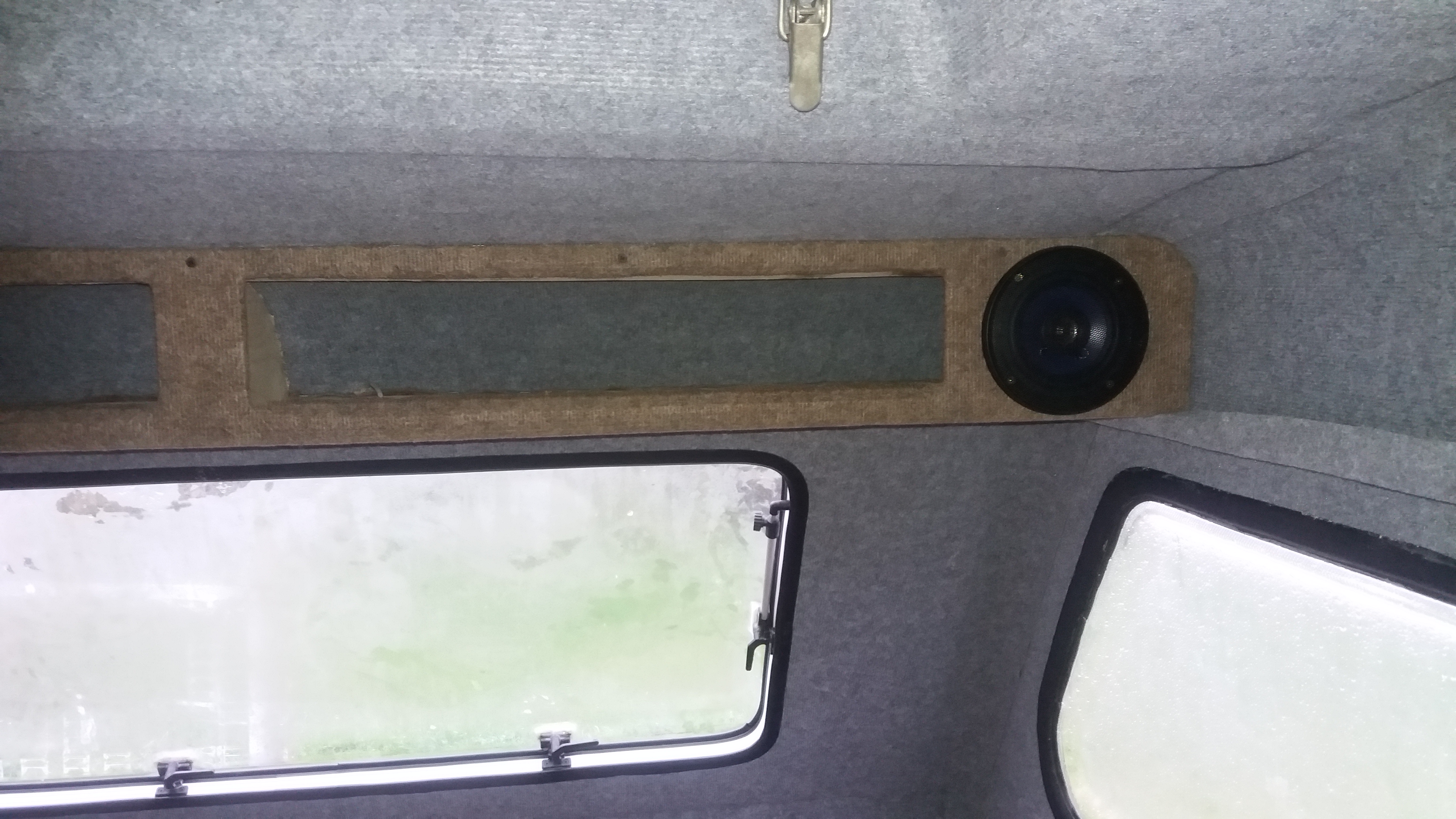 Dziś pogoda dała troszkę dłużej popracować i w przyczepce widać efekty.Wszystkie kliny trafiły na swoje miejsce i udało wykleić tapicerke.Założone dwie półeczki i niestety burza nie pozwoliła drzwiczek zamontować.niezamontowywanie deszczu dzieci się nudzą więc zabrałem się za instalacje głośników i radia, to radio tymczasowe jakieś stare z garażu wyciągnięte,i stwierdzam że cztery głośniki w tak małej budzie to dużo za dużo ale jakość dźwięku naprawdę fajna.