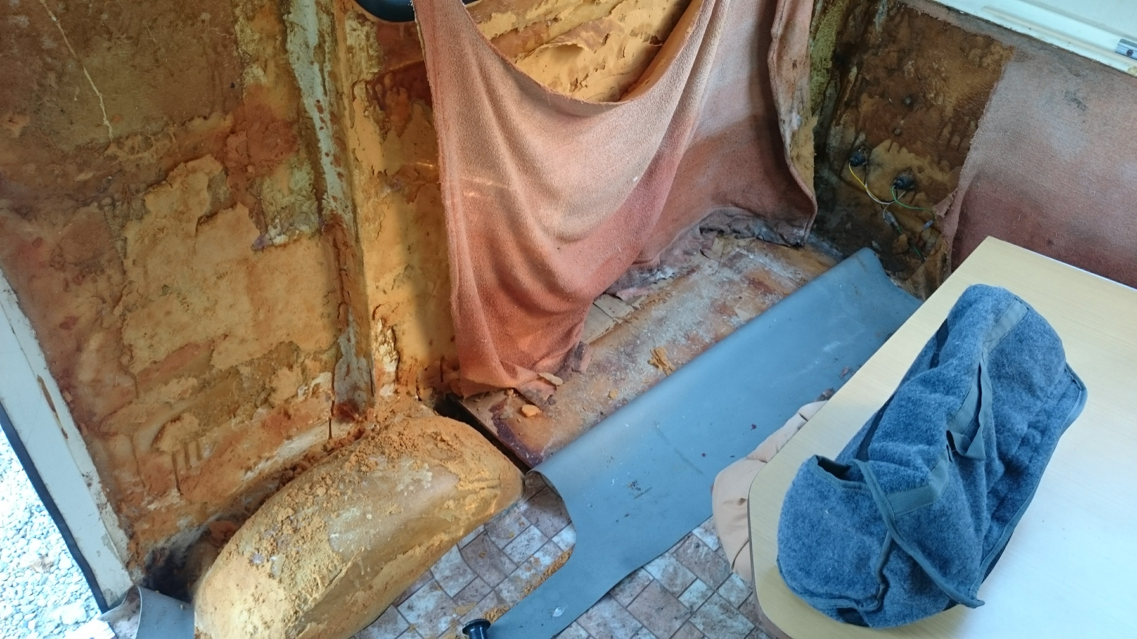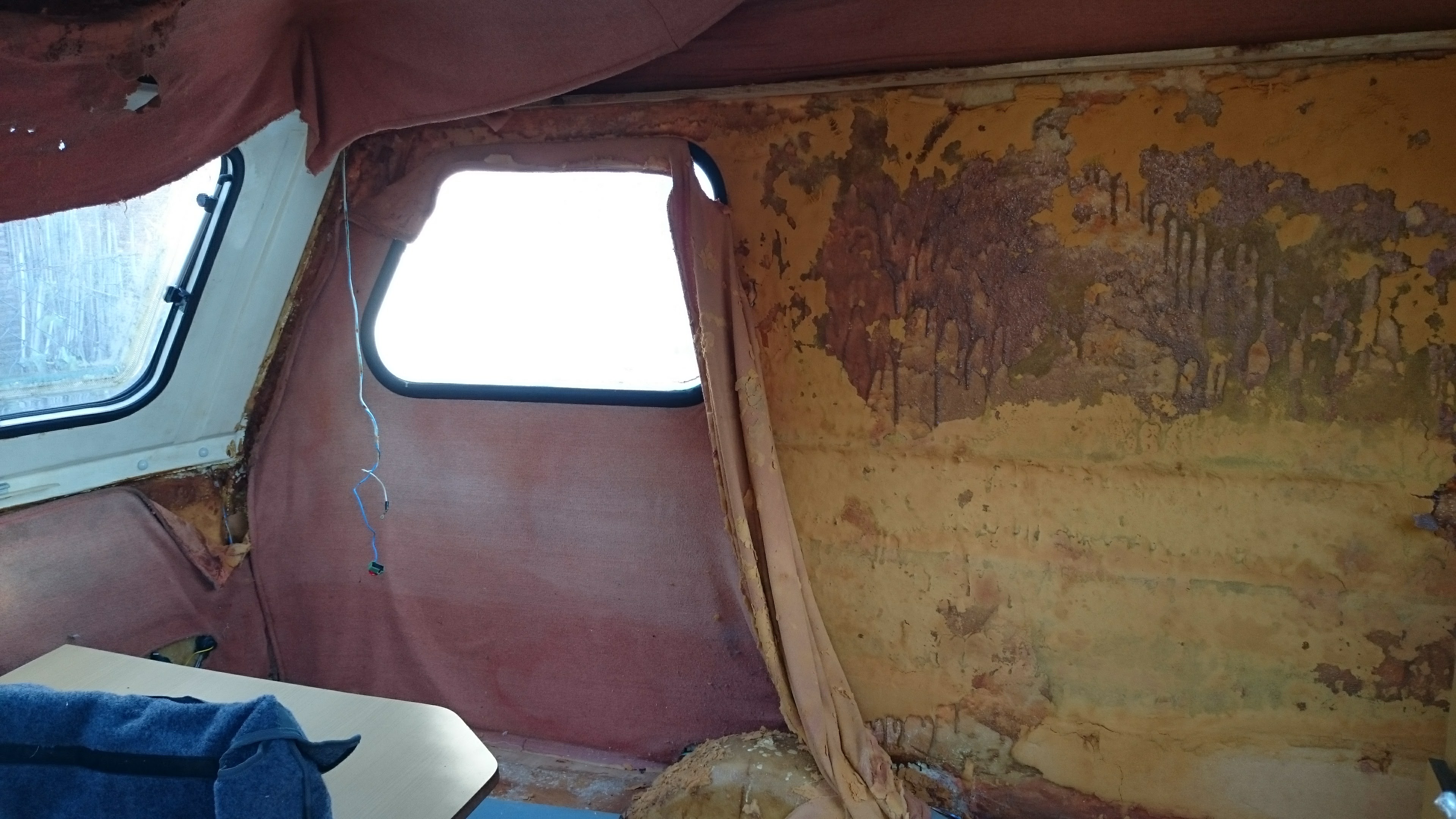 Jak pisałem wcześniej wszystkie meble z przyczepy wyjechały. Pod podłogą było mini akwarium, w przyczepce zapach typowy kiedy jest w niej woda. Poprzedni właściciel uszczelniał przyczepkę sylikonem. Czeka mnie więc standardowe odczepianie listew, montaż na taśmie butylowej za pomocą śrub z nierdzewki. Niestety jedna listwa jest rozcięta, będę musiał pokombinować nad jakimś spojeniem.