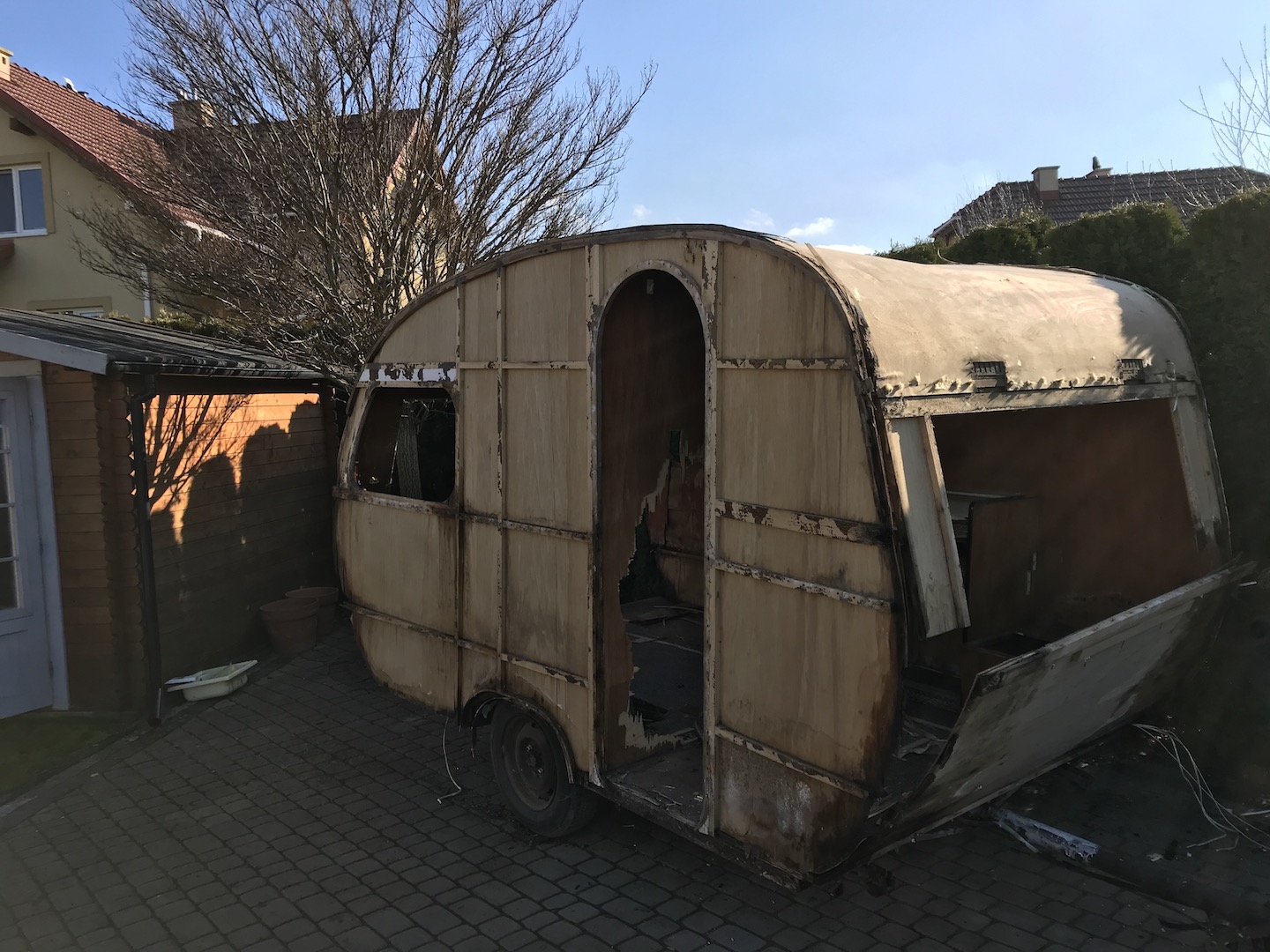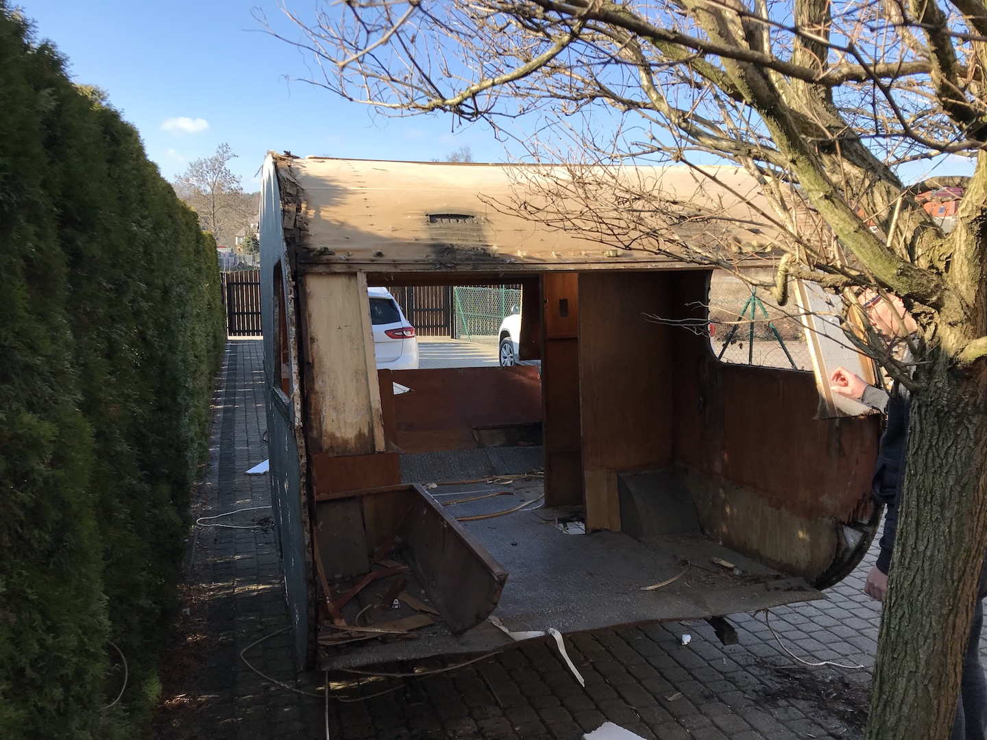 Ściany buduję nowe. Stare to tylko szablon do odrysowania. Z poszycia  zostaje dach, reszta to będzie nowy sandwich z laminatu...