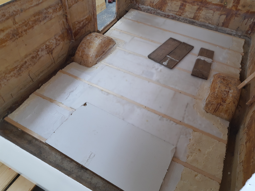 Jeśli dziś się uda, położę podłogę ze standardowej sklejki 9mm pomalowanej 2k epoksydowym lakierem jachtowym :)
