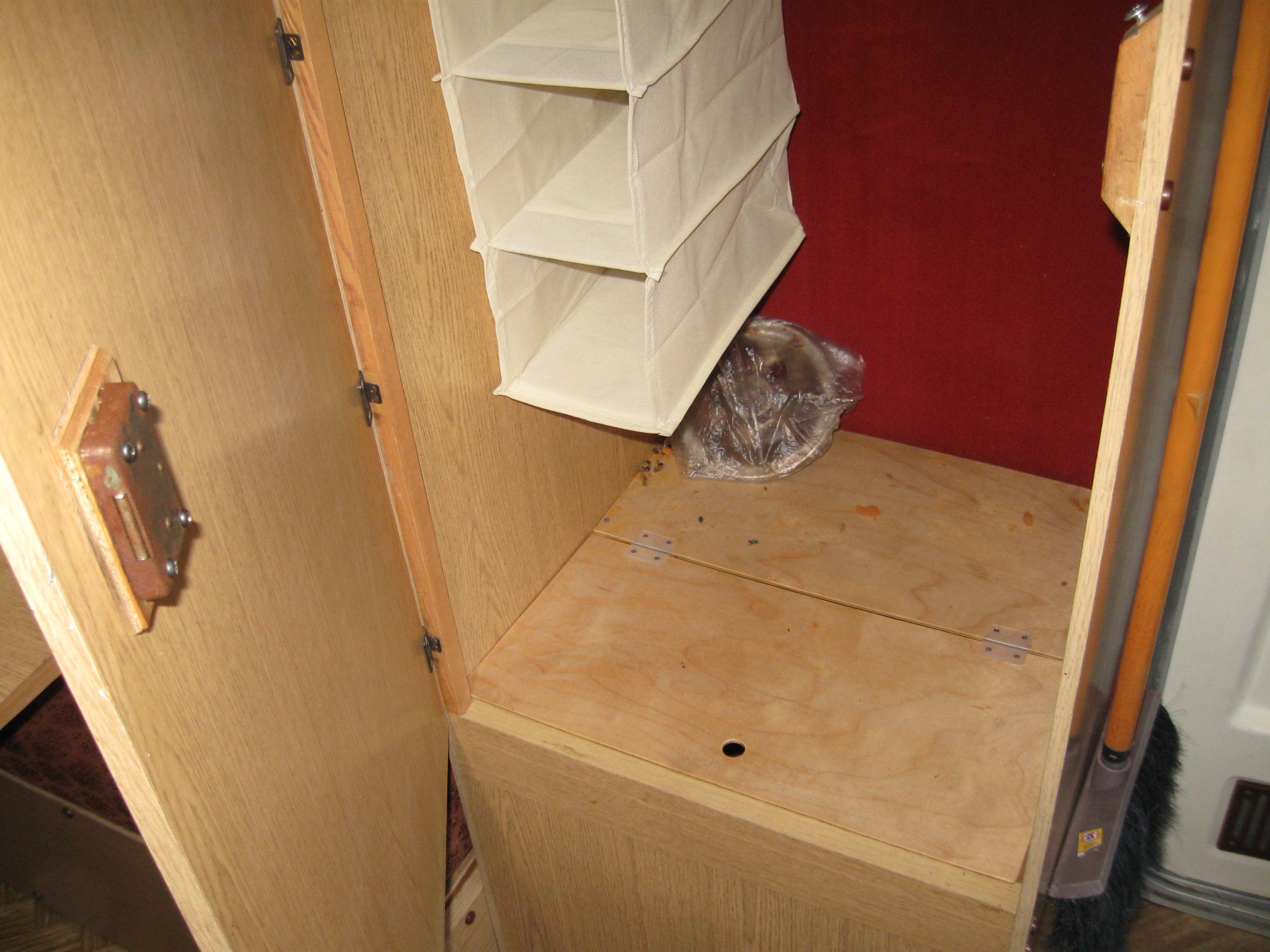 Ta rewizja ma sens tylko wtedy gdy nie ma dostępu do przestrzeni za trumą, a chce się ją wykorzystać jako bakistę. W mojej szafie jest dostęp od środka, dolna półka jest na zawiasach i się uchyla. Jeżeli nie masz dostępu do tej dolnej części szafy to może lepiej dorobić zawiasy w tej półce niż rąbać szafę z boku.
