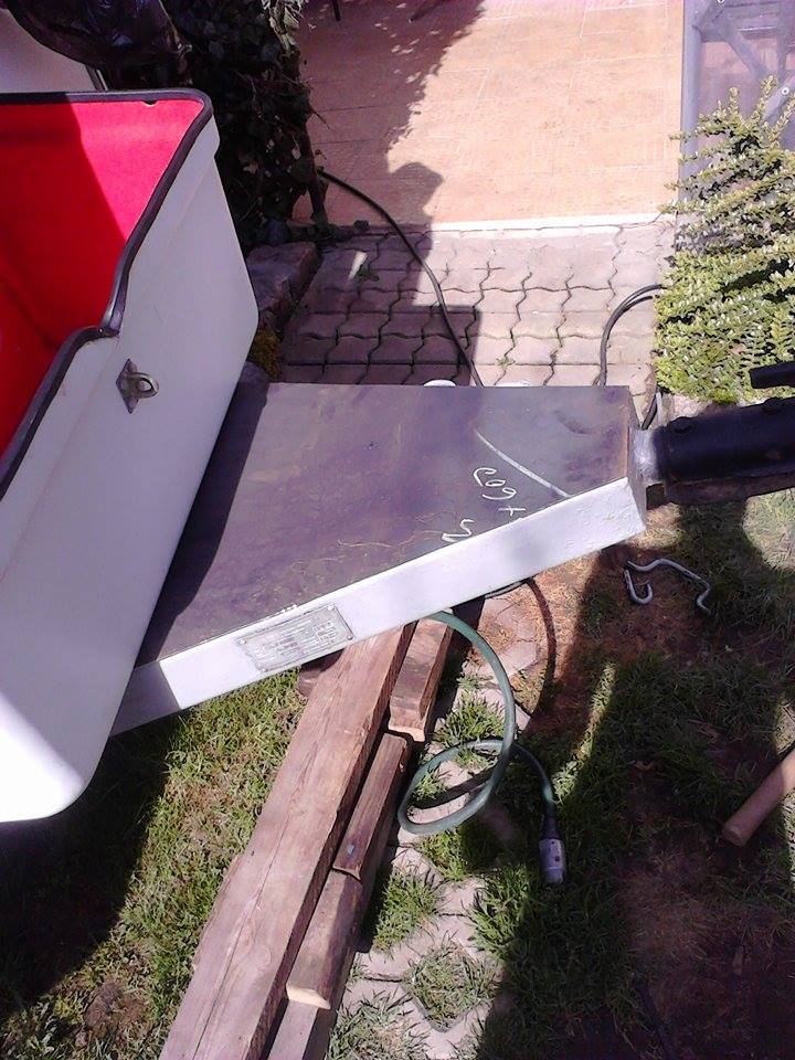 teraz zostanie tylko kwestia zakonserwować blachę i ramę przyczepy i przyspawać blachę i uchwyty z powrotem