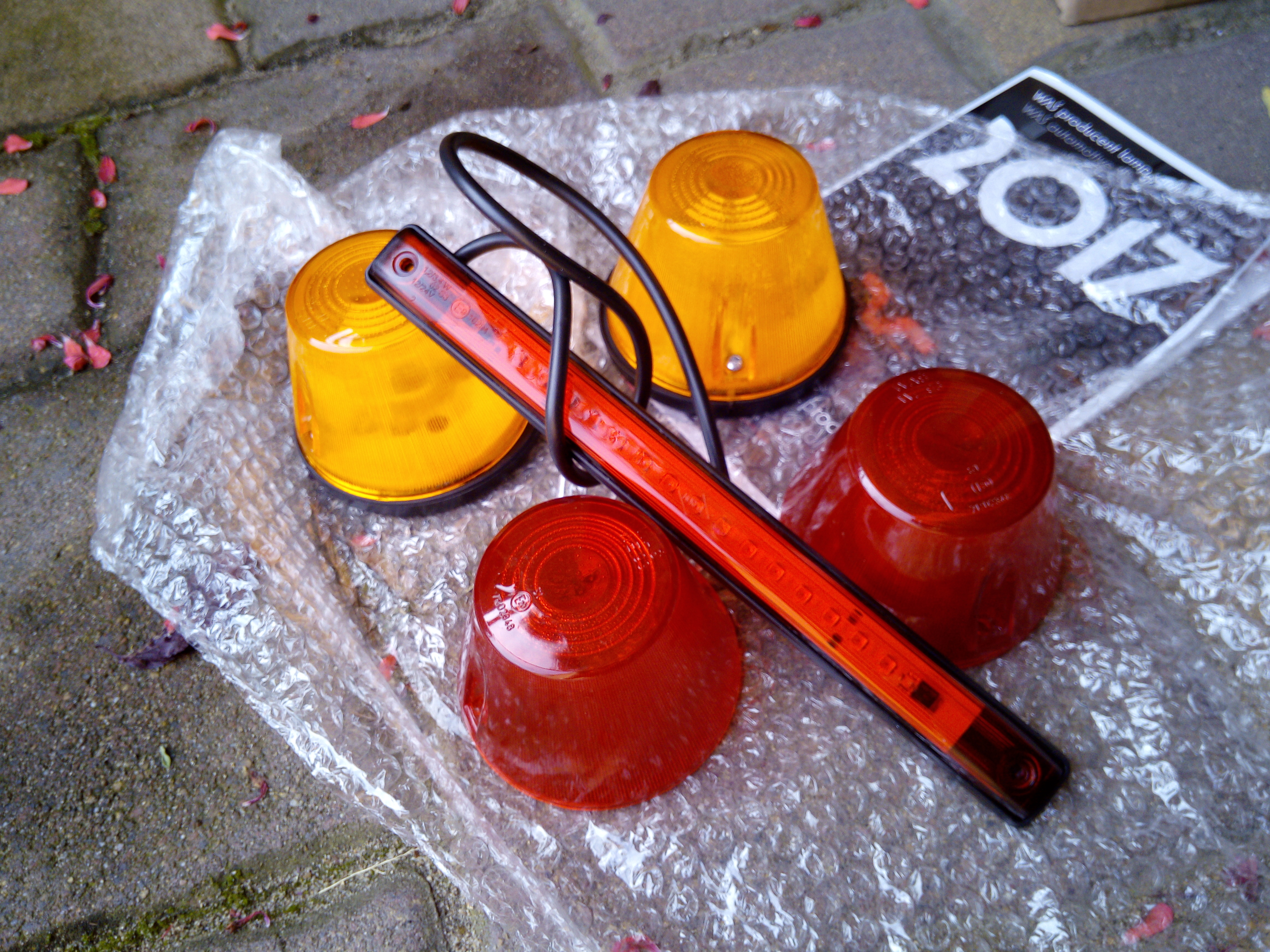 W ostatnim czasie zamontowaliśmy okna (z bocznymi pomimo użycia sznurka zeszło dłużej niż wpisane na forum 5 minut), przykleiliśmy tapicerkę do daszku, zamontowaliśmy oświetlenie z przodu i z tyłu (przednie pozycyjne podniesione pod listwę okienną - nie będą widoczne w lusterkach holownika), a dla bezpieczeństwa wrzuciliśmy trzeci stop nad rejestracją. Czekamy jeszcze na światło cofania (będzie 13-pinowe, niepełne gniazdko). Przyykleiliśmy wzmocnienia do laminatu na podłodze i ekran do podłogi (czeka w garażu na montaż). Do tego nasmarowane podpory (chodzą idealnie) i rozebrane bębny - pomimo pajęczyn jeszcze pojeżdżą.