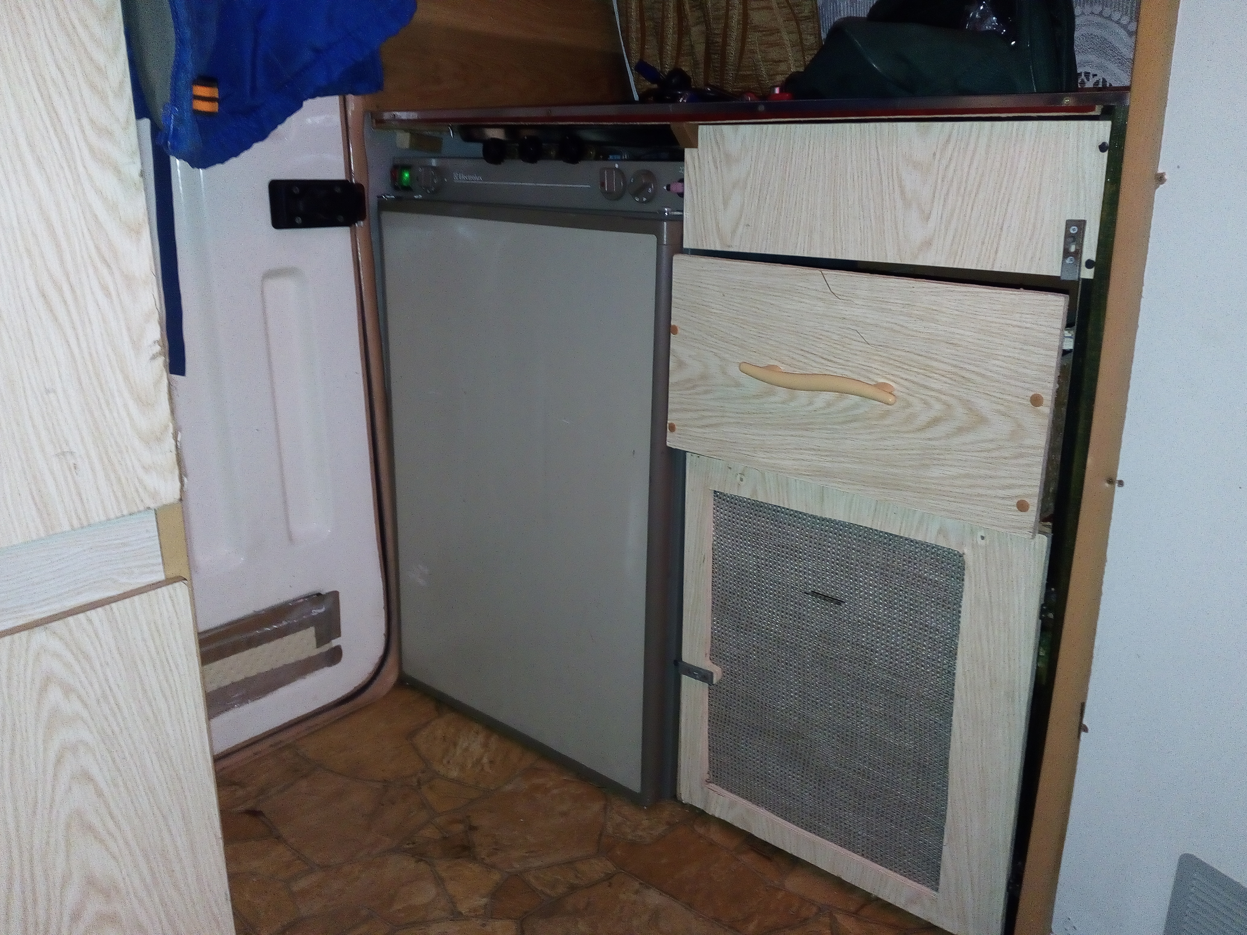 W związku ze zbliżającym się zlotem w Ciechocinku zainstalowałem g..ne ledy -żeby jaśniej było, TV żeby było, lodówkę żeby chłodziło, a Elunia jakiś stosowny strój założyła.