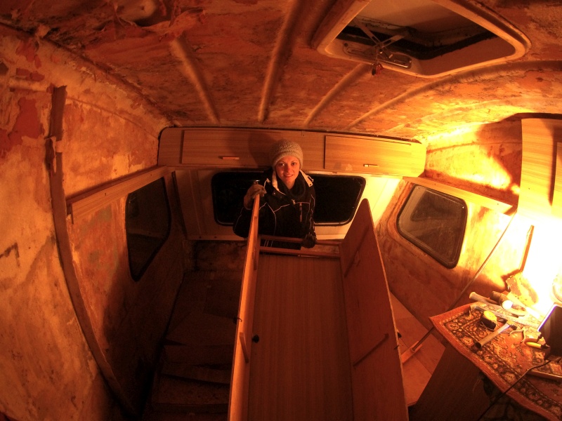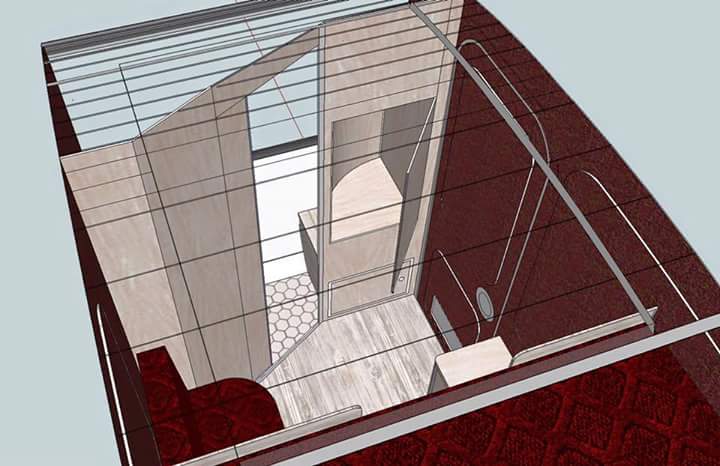 Na przeciwko wejścia będzie kabina z reaktorem i może prysznicem i obok niej (w stronę tyłu budki) szafka pomocnicza na wysokość identyczne ze stołem.