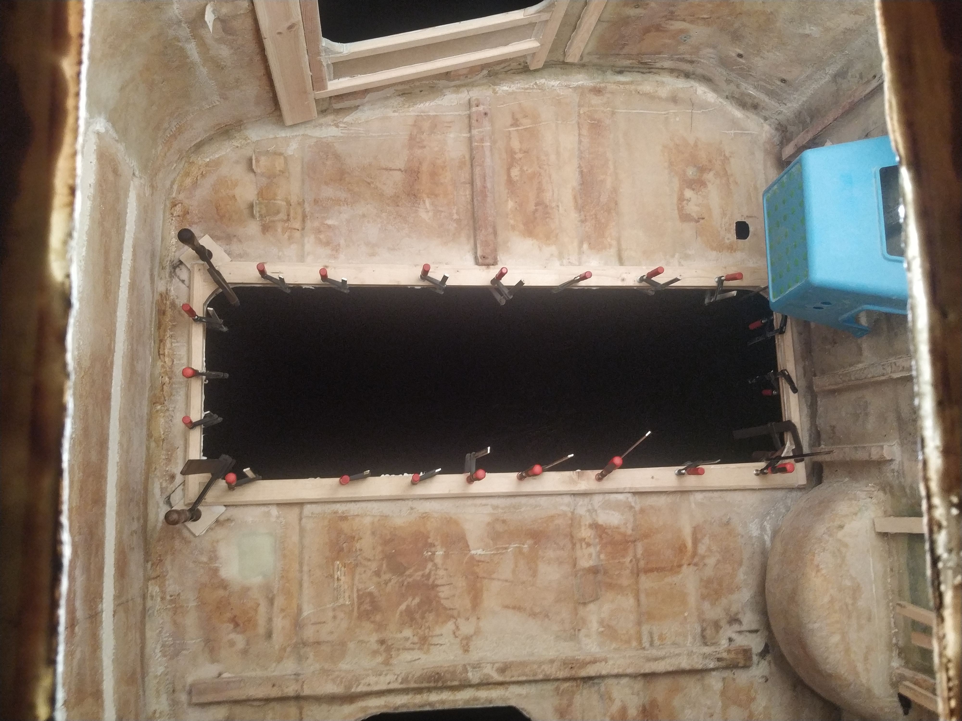 50x50 pod Fiamme w dachu już zalaminowane i dziś wypiankowane coby kształu nadać przed laminowaniem ostatecznym i szpachlowaniem. Czyli na to jeszcze pójdą 2-3 warstwy i finał.