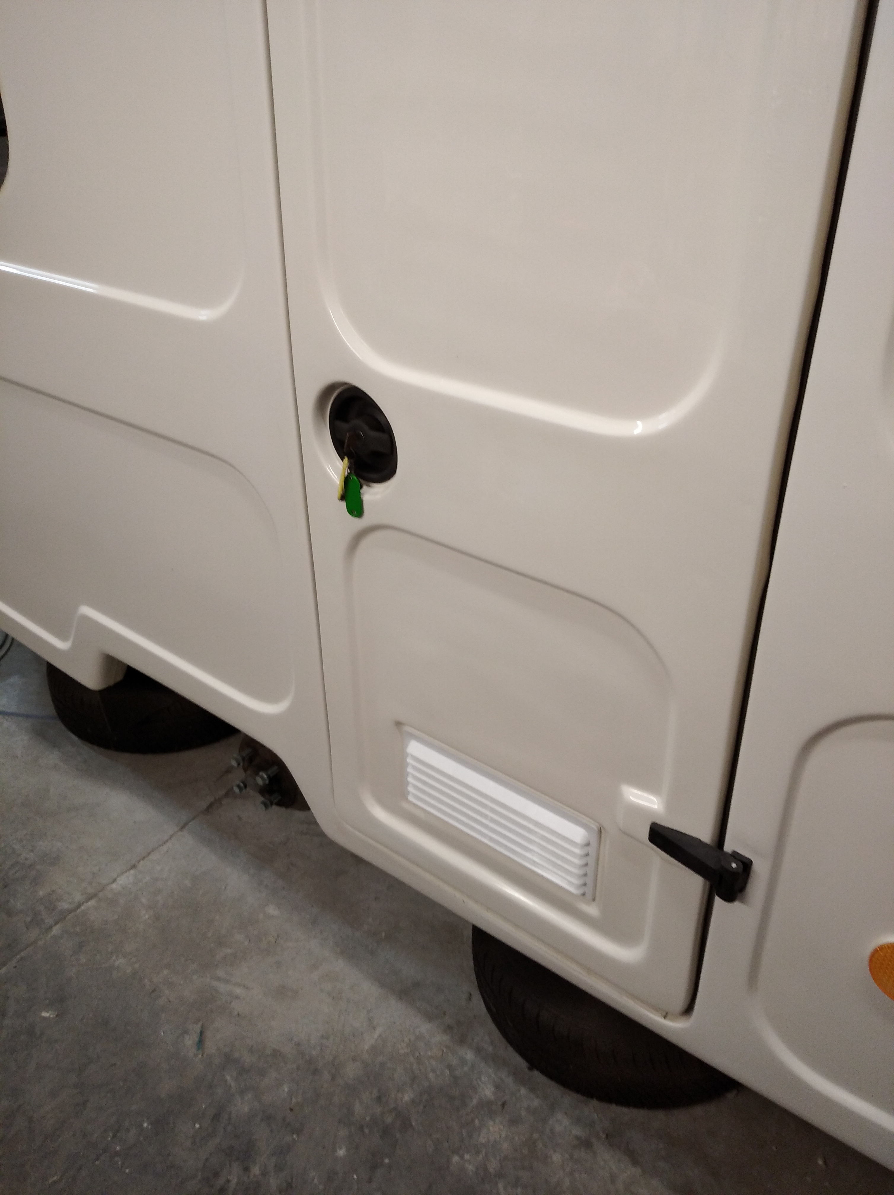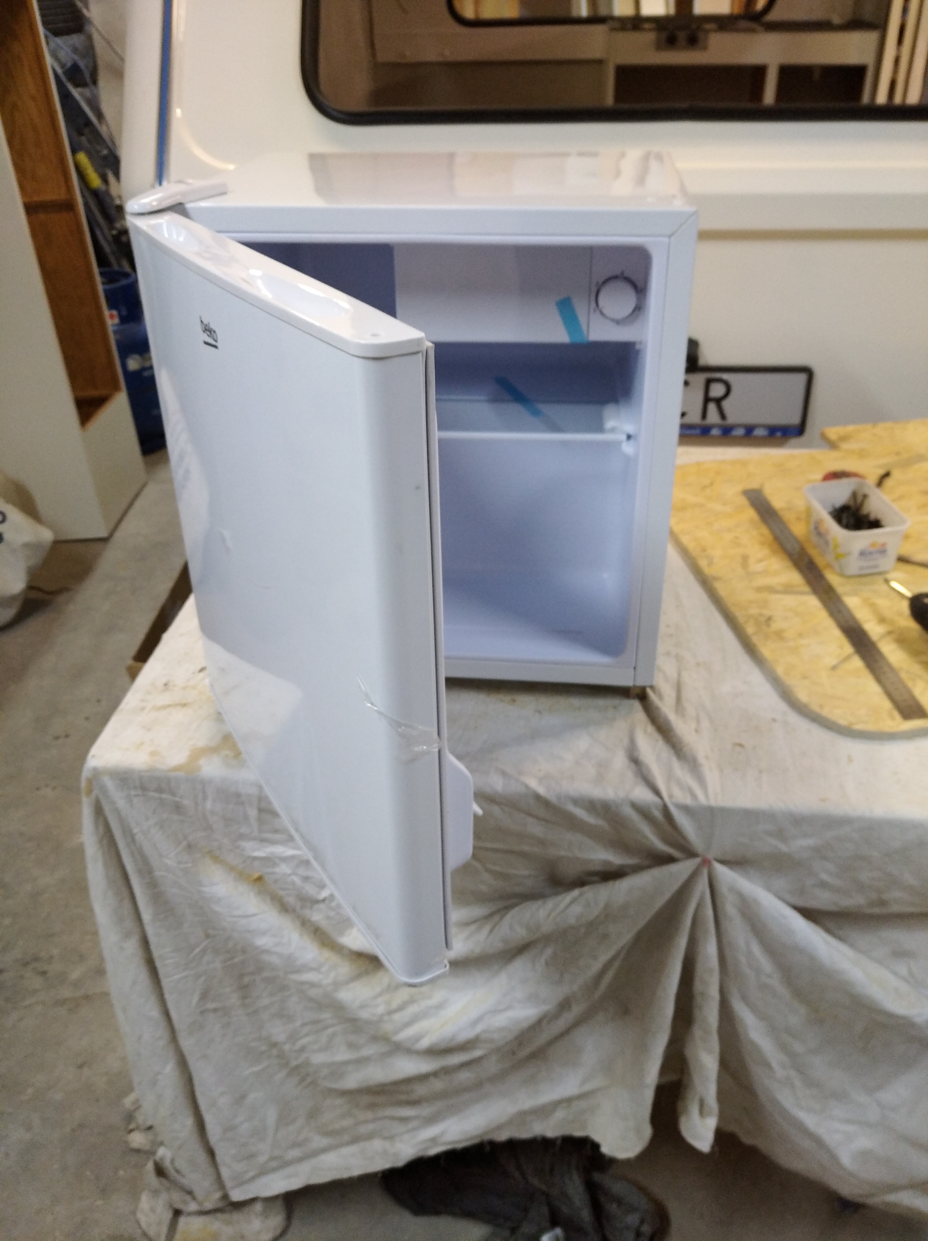 Drzwiczki przerzucone na lewą stronę aby swobodnie sięgać po chłodne napoje nie wchodząc do przyczepy.