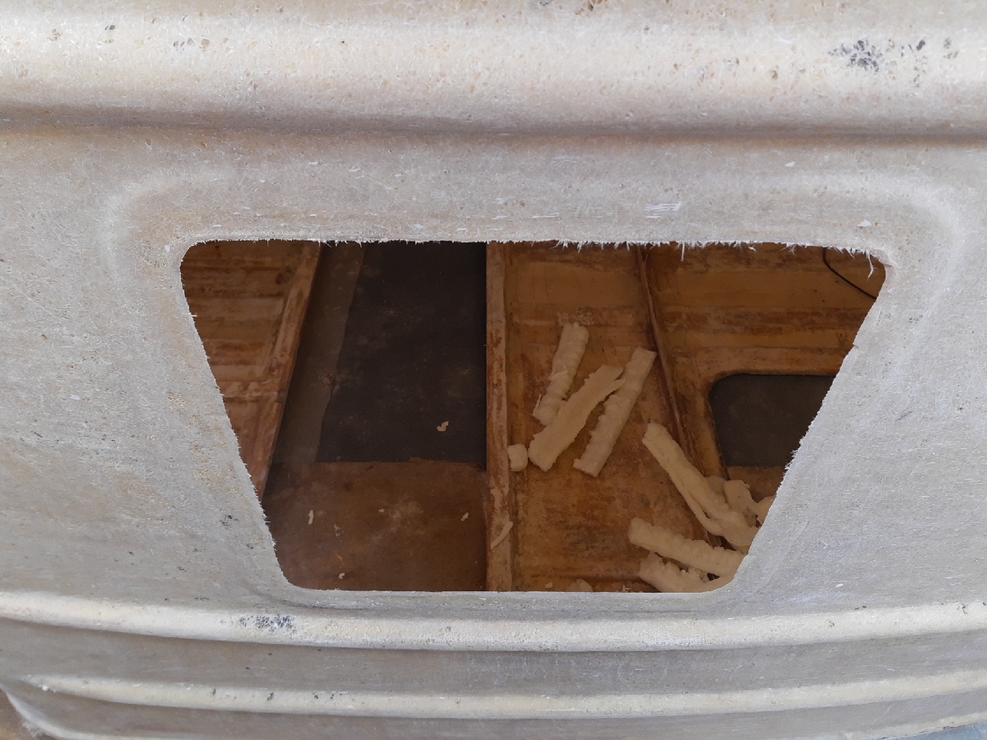 Wyciąłem i wyszlifowałem kołnierz na otworze szyberdachu, aby pasował do nowego okna.