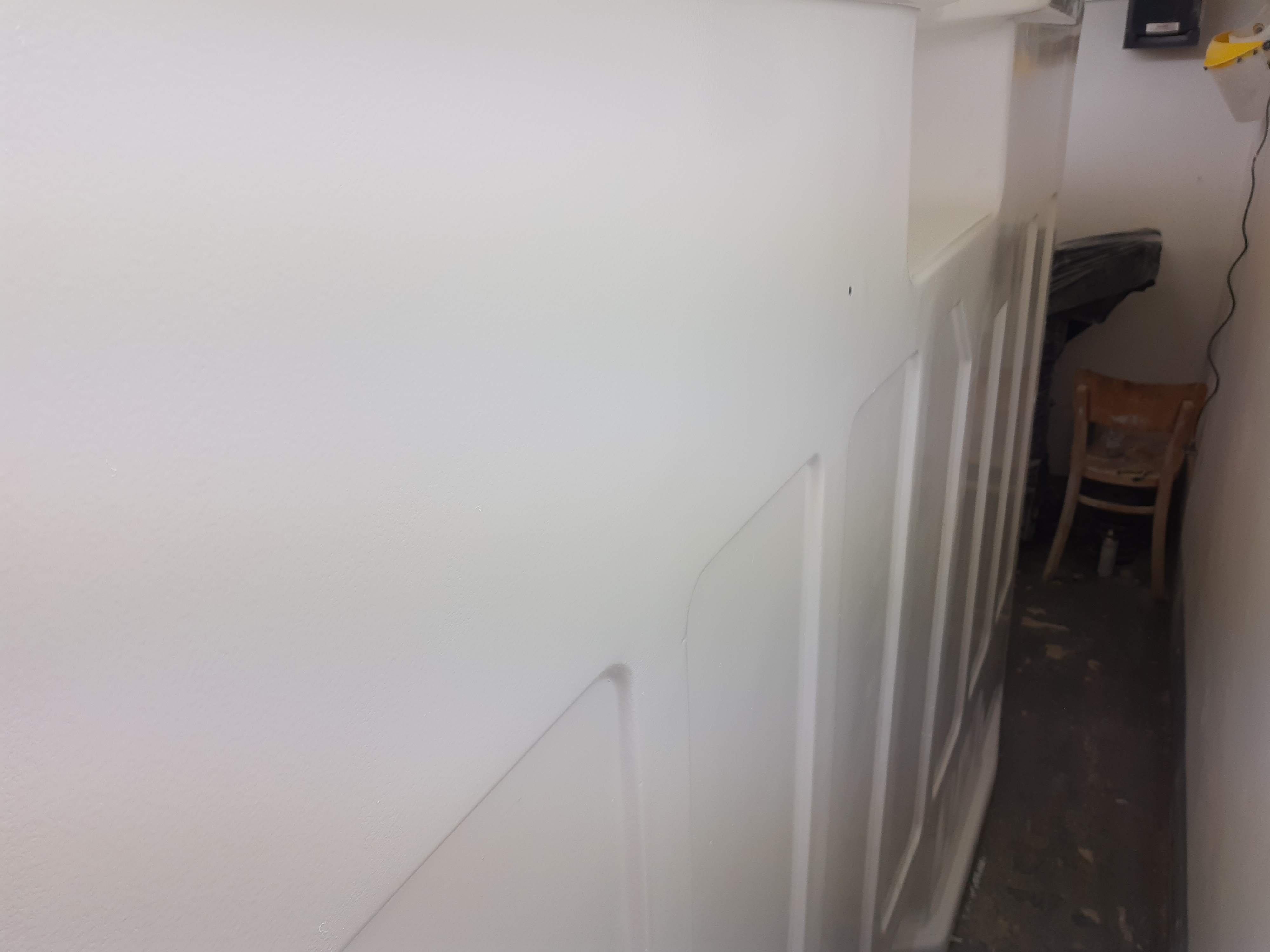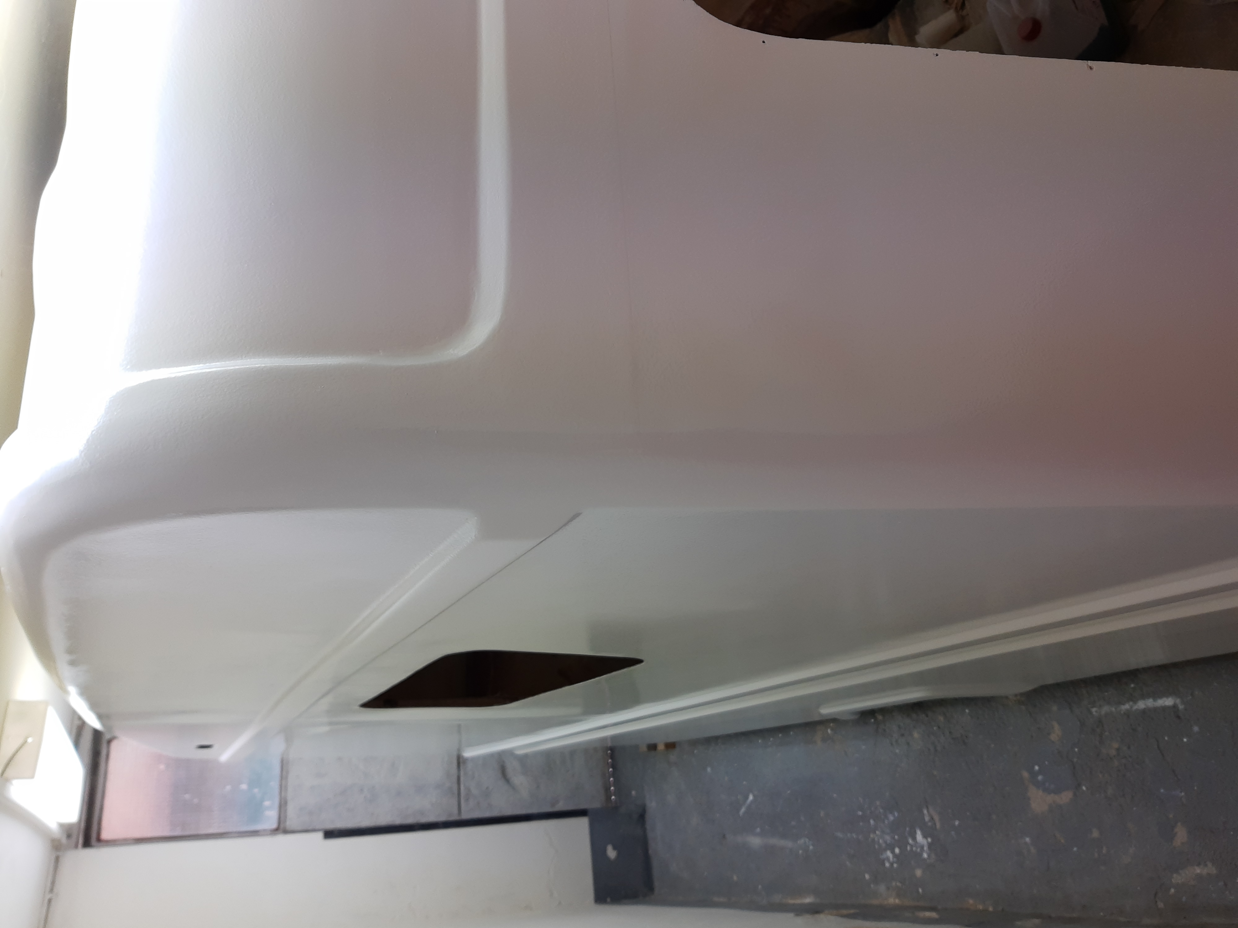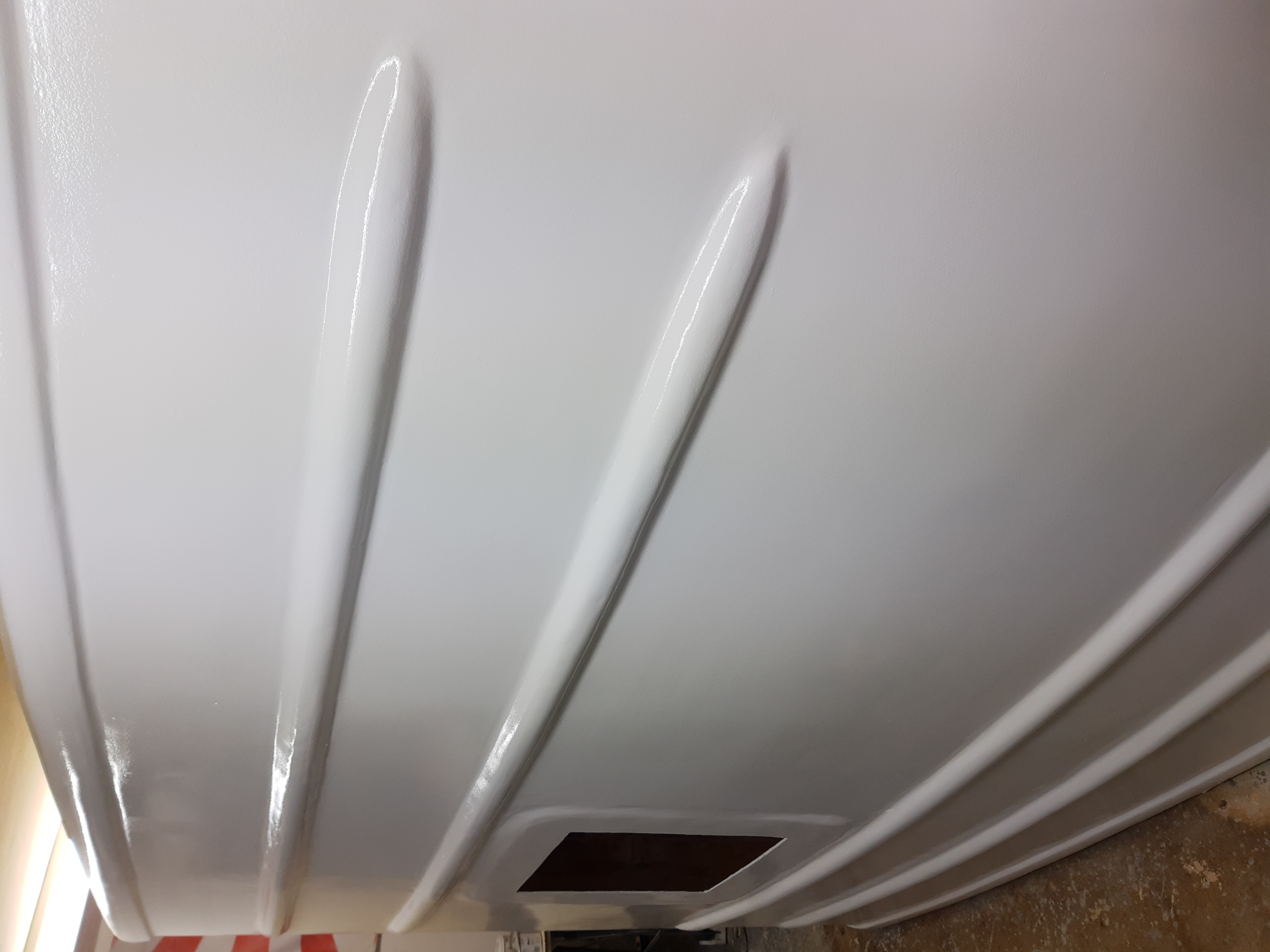 W końcu udało się pomalować skorupe. 3 warstwy farby Sigmadur w odcieniu RAL9003 malowane wałkiem. Jako bazę zastosowano wypełniacz 2K MIPA.