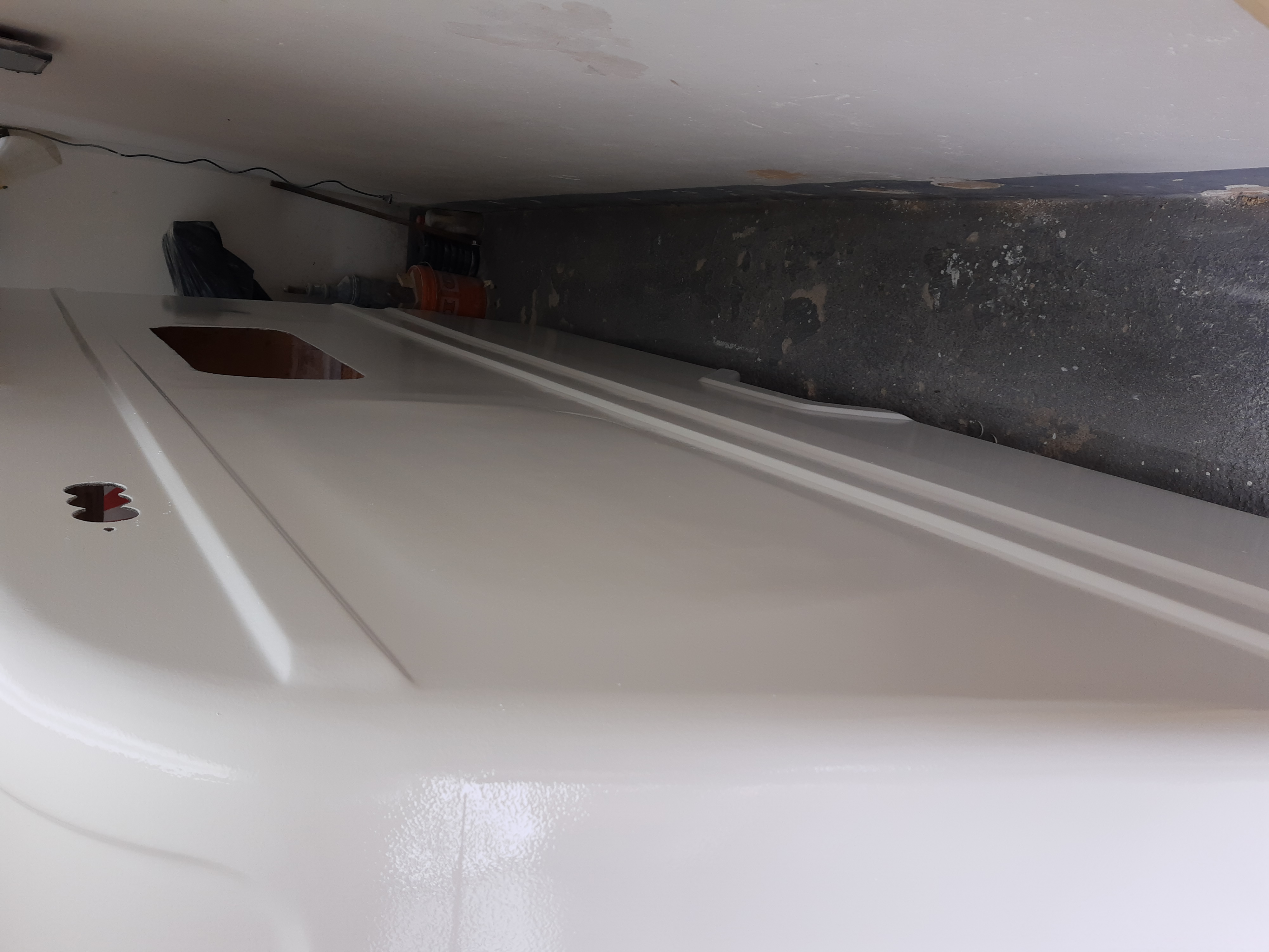 Oczywiście był to jeden z powodów, dla których w końcu wyszlifowałem cały dach. Uważam, że nowe warstwy laminatu z mocniejszą tkaniną wraz ze wzmocnieniami typu „foamcore” z pianki poliuretanowej zamkniętej kolejną warstwą laminatu wystarczająco wzmocnią dach.