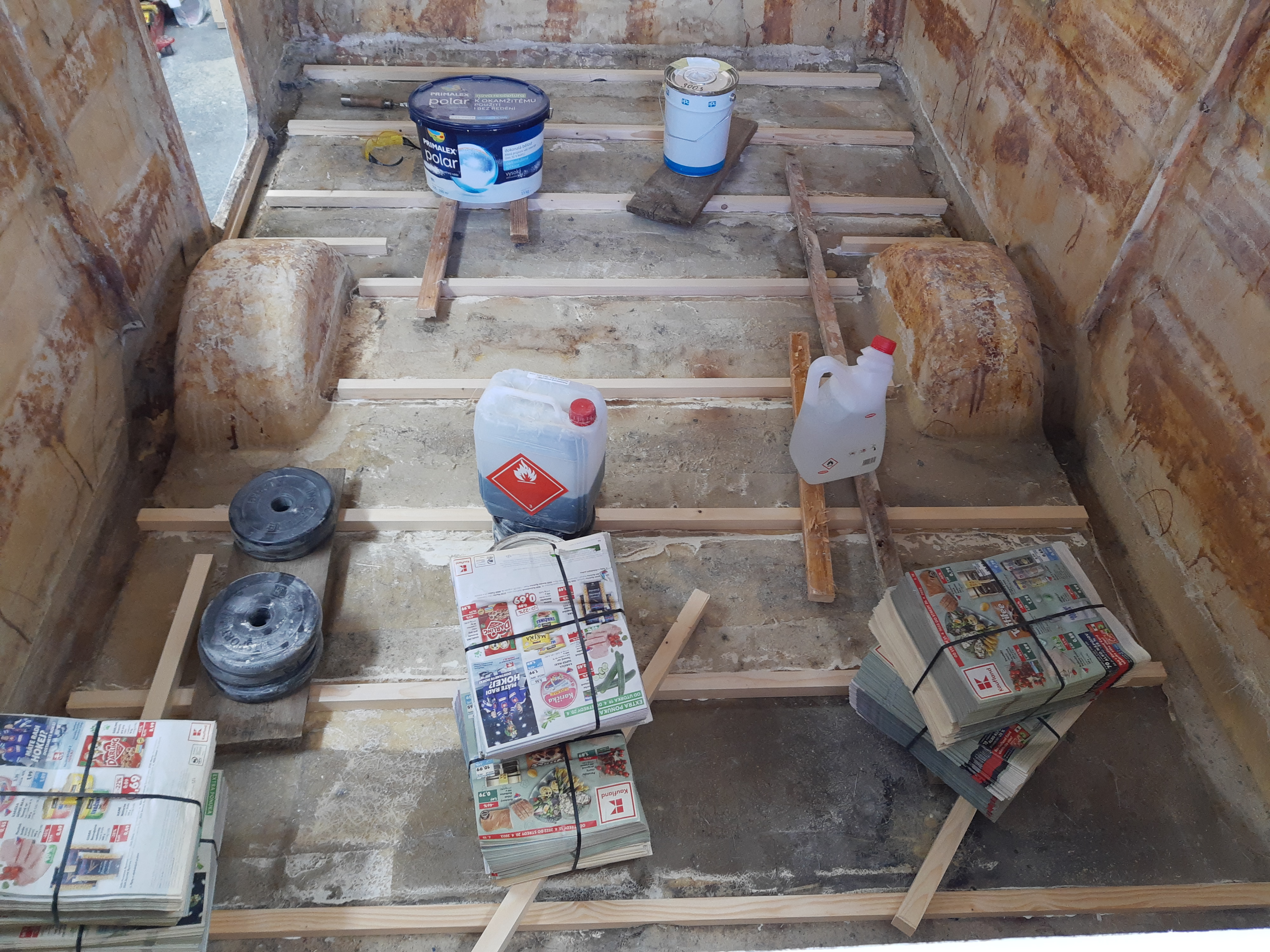 Jeśli dziś się uda, położę podłogę ze standardowej sklejki 9mm pomalowanej 2k epoksydowym lakierem jachtowym :)