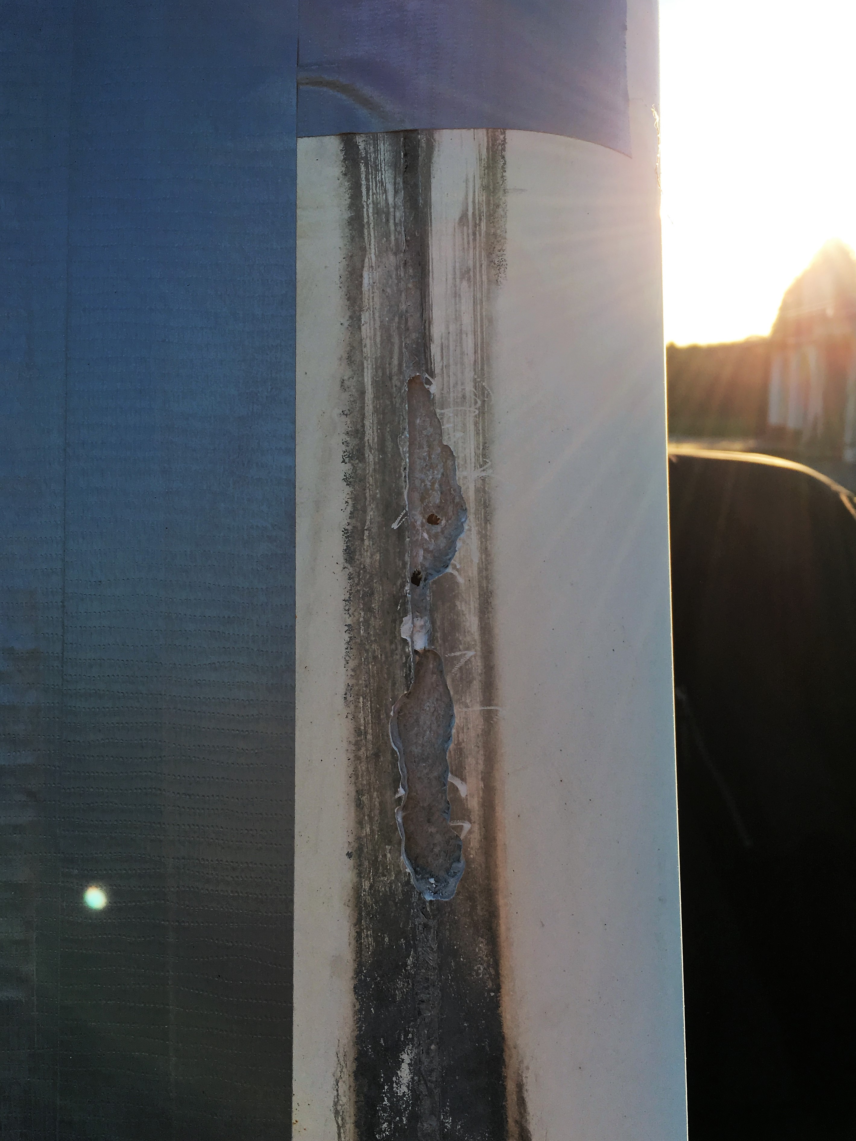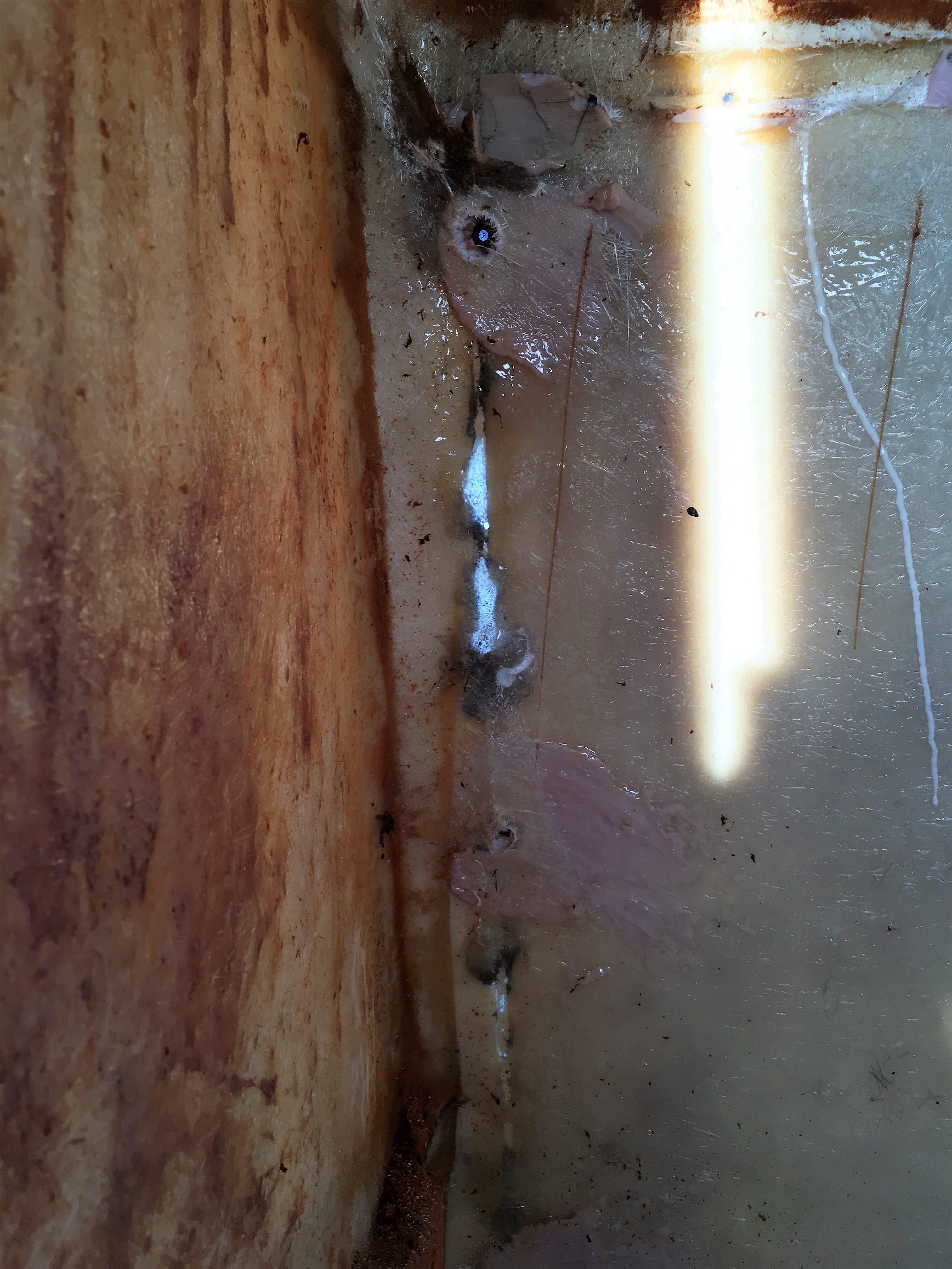 To czarne to osmoza ( gangrena) jak chcesz zrobić porządnie należy wydrzeć dokładnie aby nic nie zostało następnie zalaminować łatwiej to zrobić od wewnątrz.