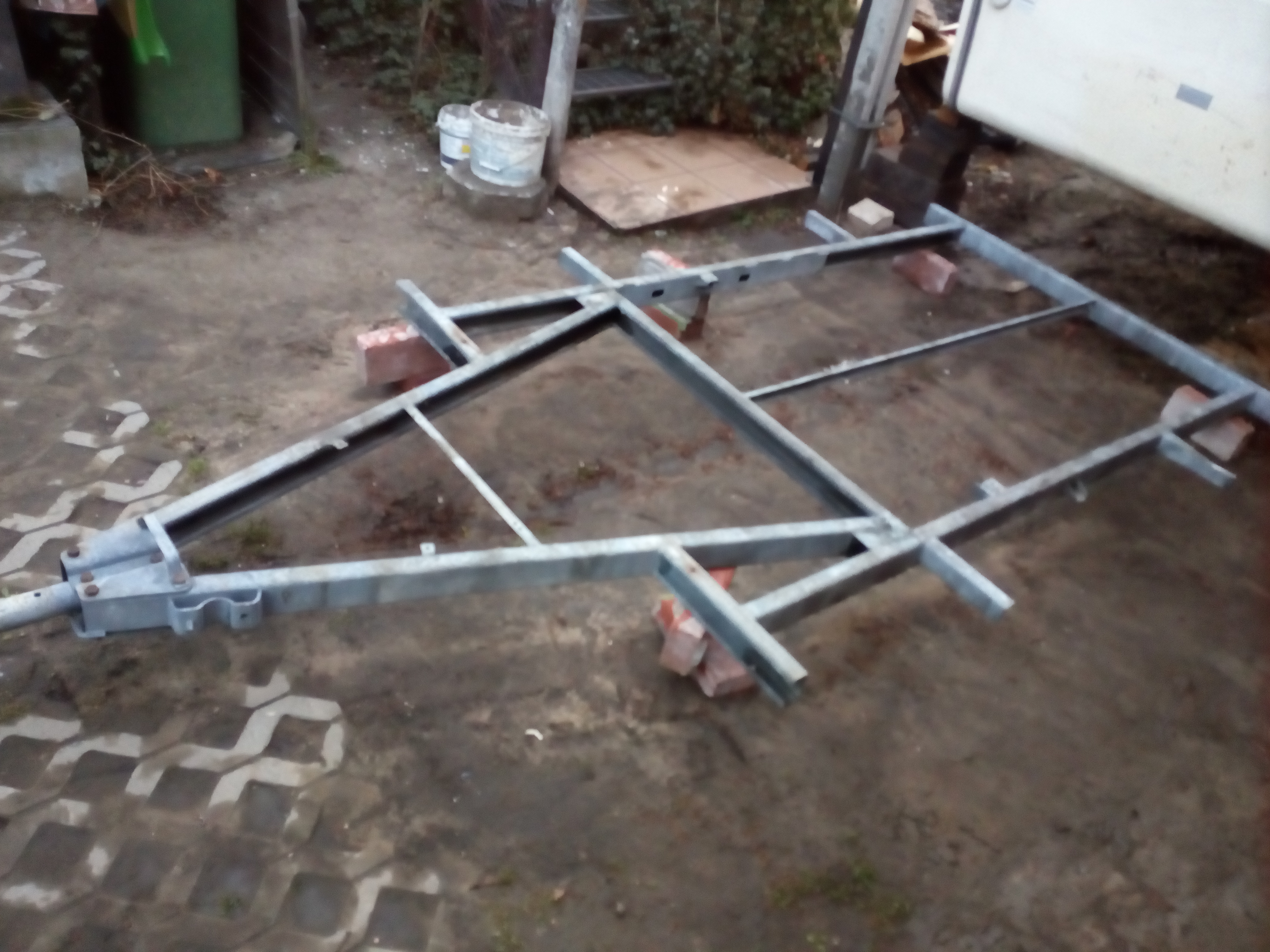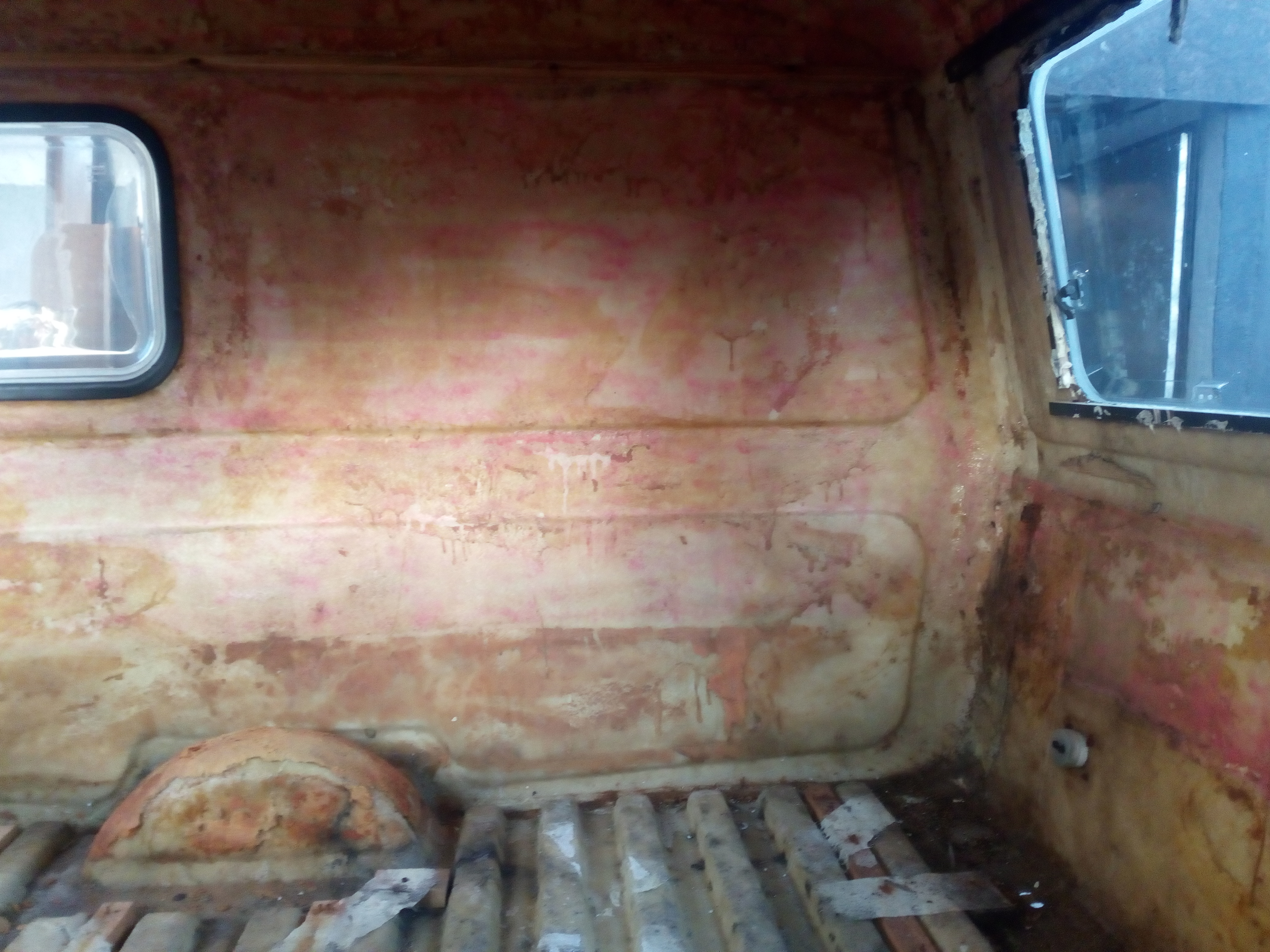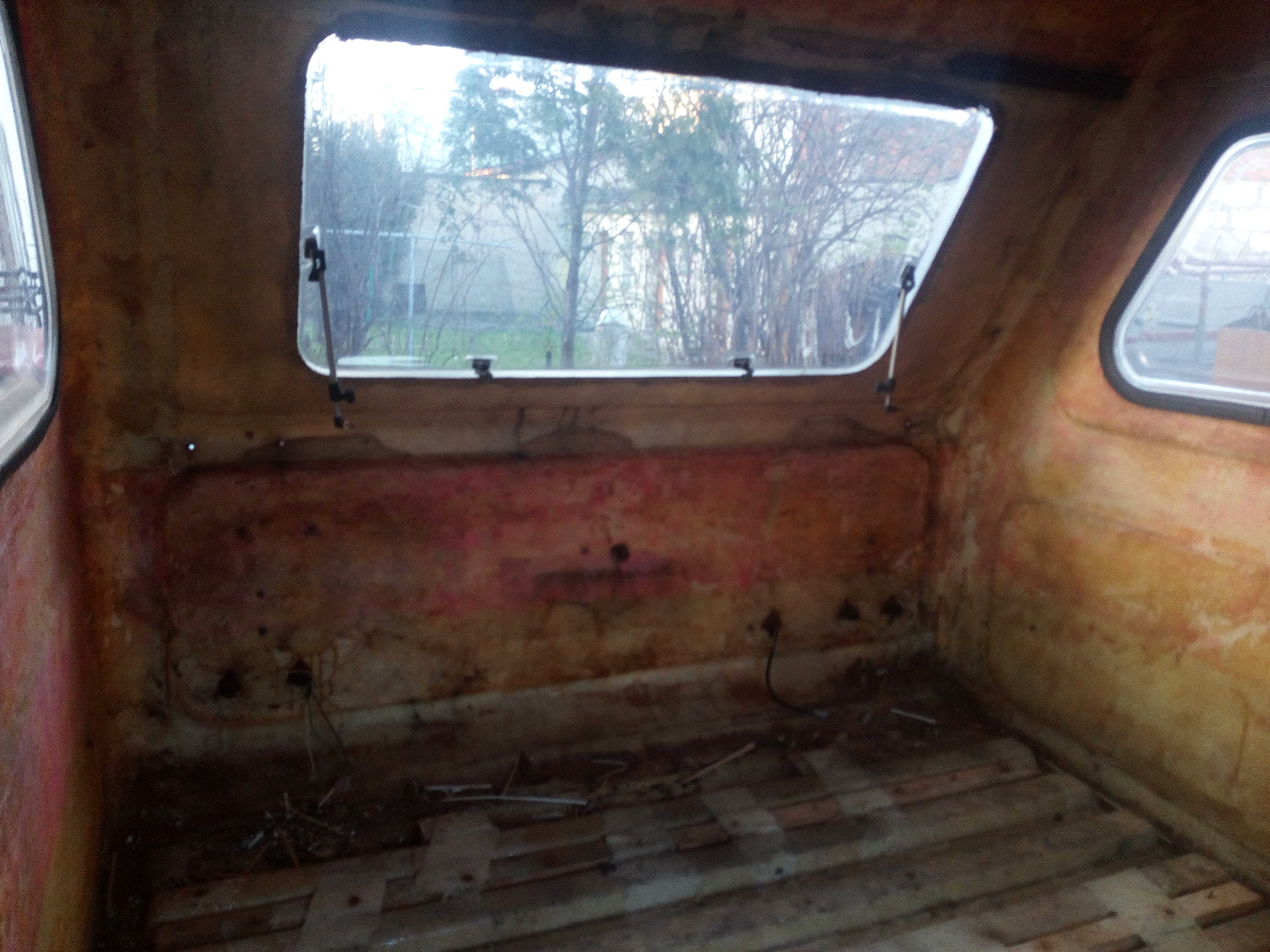 No to zaczynamy rama zdrowiusia, umyć cynk spray i gitara, podpory to samo + smar i ok, oś złom, koła jak widać odpicowane nowe oponki 3 sztuki baja, buda lewa strona ujowo naprawiona zapewne po urwanym kole, ale na miętowo do zrobienia w środku gitarka nawet gąbki nie muszę usuwać ktoś już to zrobił i nakleił sam materiał ramy okienne totalny szans, będą nowe, kantówki bdb, podłoga liczyłem na odzysk, ale wiadomo jak leciało jedno i drugie okno to podłoga szmelc...znalazłem pod nią tylko 50 gr hmmm lipa w poprzedniej było 1.50. Wszystkie okna nowe niestety pojedyncze. Najpierw się biorę za ramę i oś i tu nie wiem czy pierdzielić się znowu z resorami zamknę się wtedy w 300 zł i ze 3 dni pracy, albo jakiś Al-Ko, albo Knott wiadomo 500 w górę i 20 min roboty...