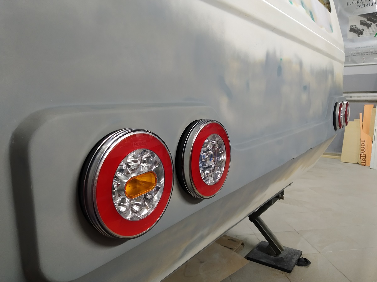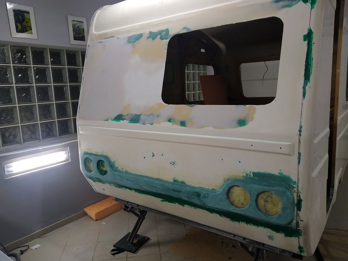 Na ostatnim zdjęciu sklejka pokryta jest grubą warstwą żelkotu. Uznałem, że spróbuję ją przepolerować i nie dokładać do budy całości (to jakieś 2-3 kg dodatkowo), a jedynie na niej wylaminować dokładkę pod światła. Mam nadzieję, że tym razem pójdzie lepiej.