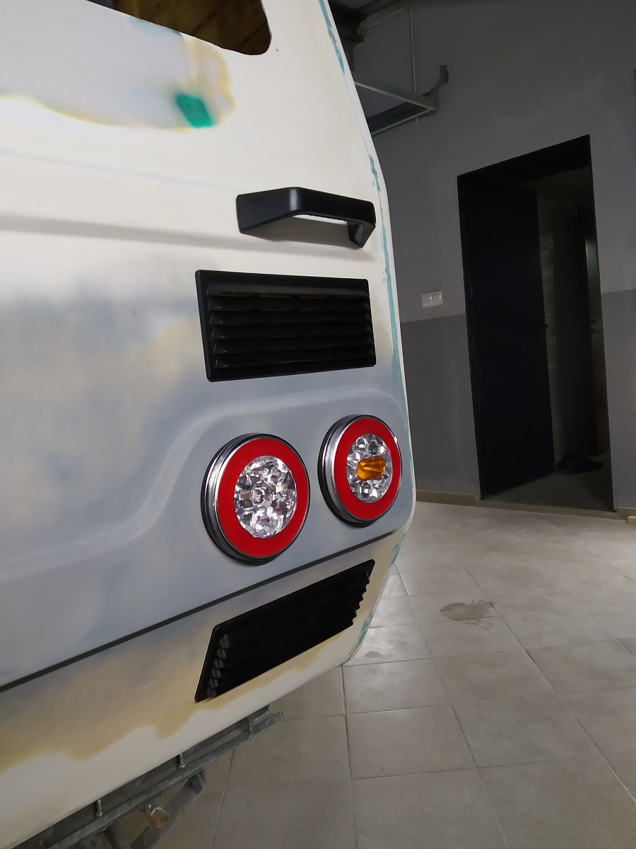 No to tył w zasadzie ogarnięty. Jest nowe, mniejsze okno, jest zerzak, są lampy i wycięte kratki wentylacyjne lodówki.