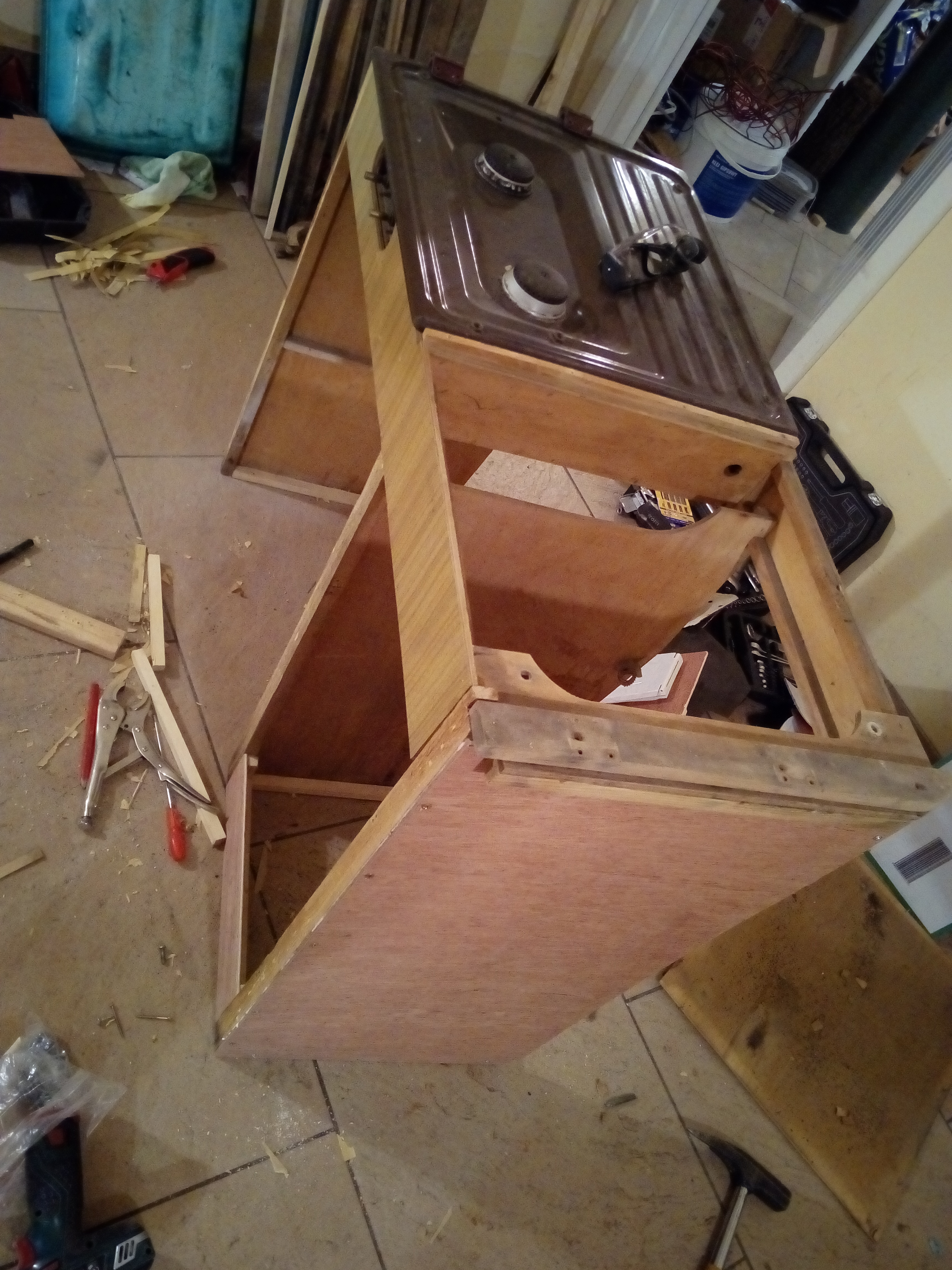 Prace idą do przodu - meble, kufer i te klimaty. Na robienie czegokolwiek w przyczepie stojącej na ulicy nie ma szans przy minusowej temperaturze...