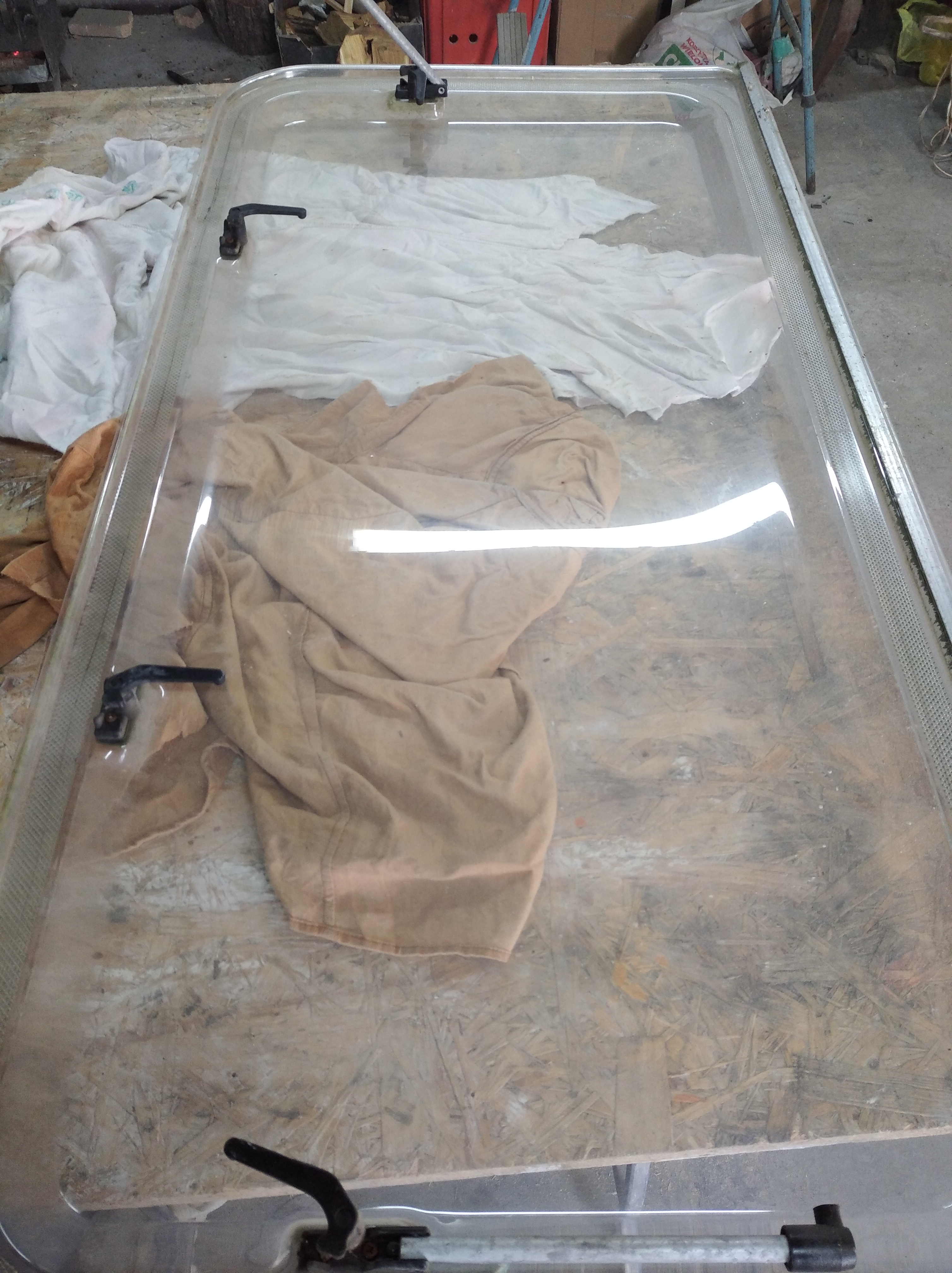 Szyby polerka mechaniczna najpierw na sucho potem na mokro, pasta G3, biały pad.